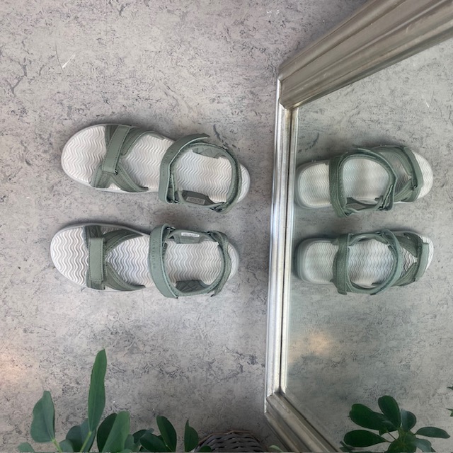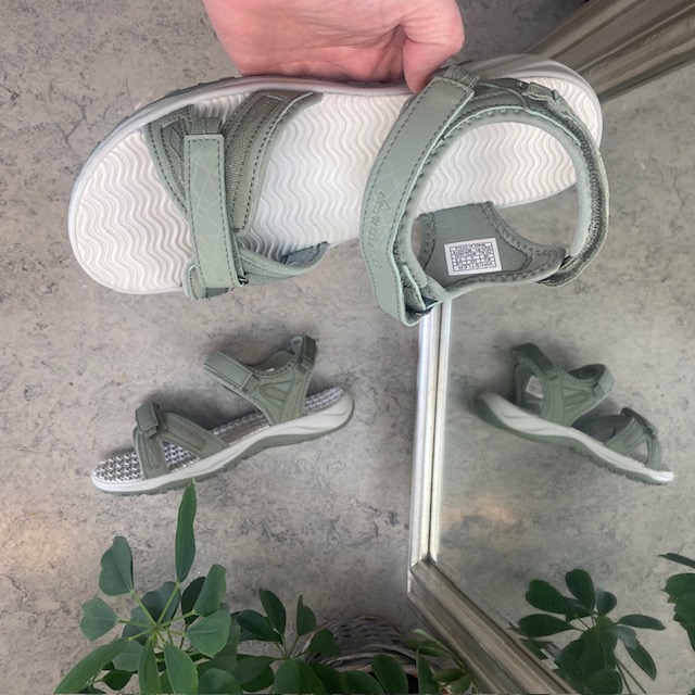 Sportssandal i olivengrønn farge med ekstra detaljer ved borrelåsremmene