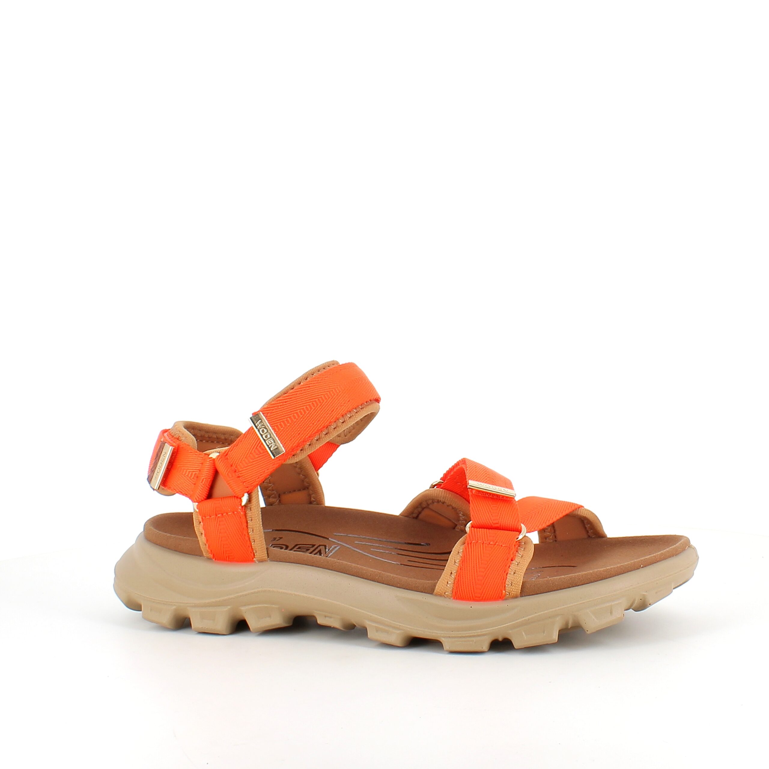 Sandalen er utstyrt med en spor-såle, tre justerbare borrelåsstropper for optimal passform, og er laget av slitesterke materialer,