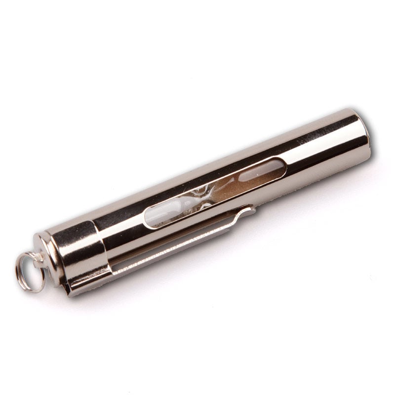 Pulsteller i lommestørrelse, som er bygget opp av en stålramme som holder et lite timeglass.
