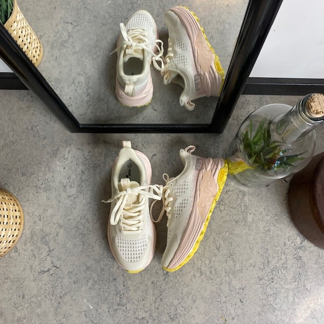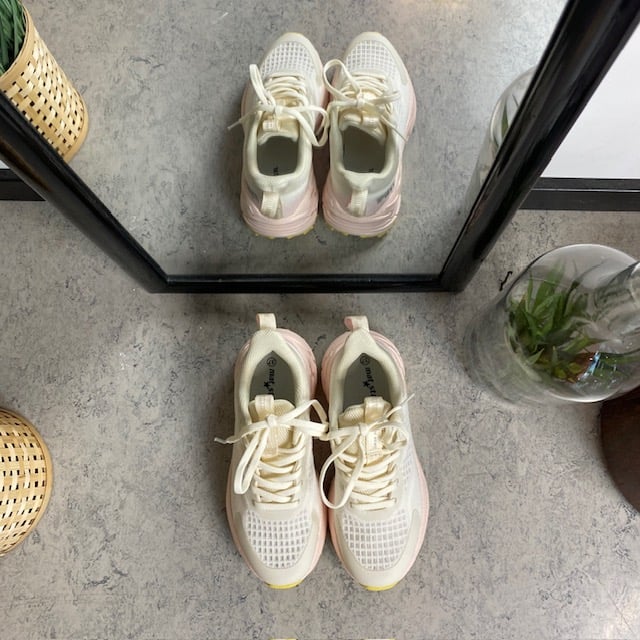 De flotte detaljene i en frisk fargekombinasjon av hvit og rosa gir skoene et moderne og stilfullt uttrykk.