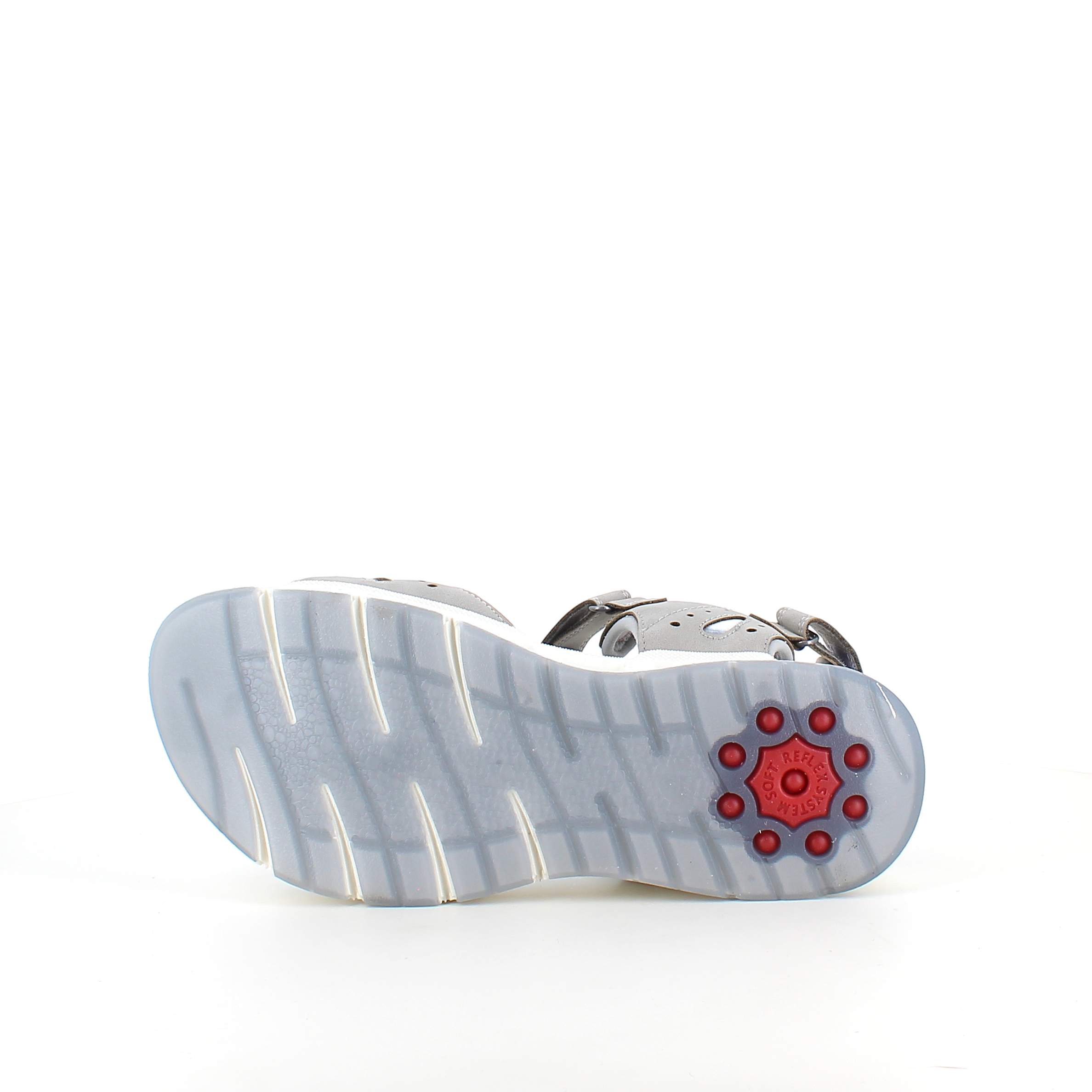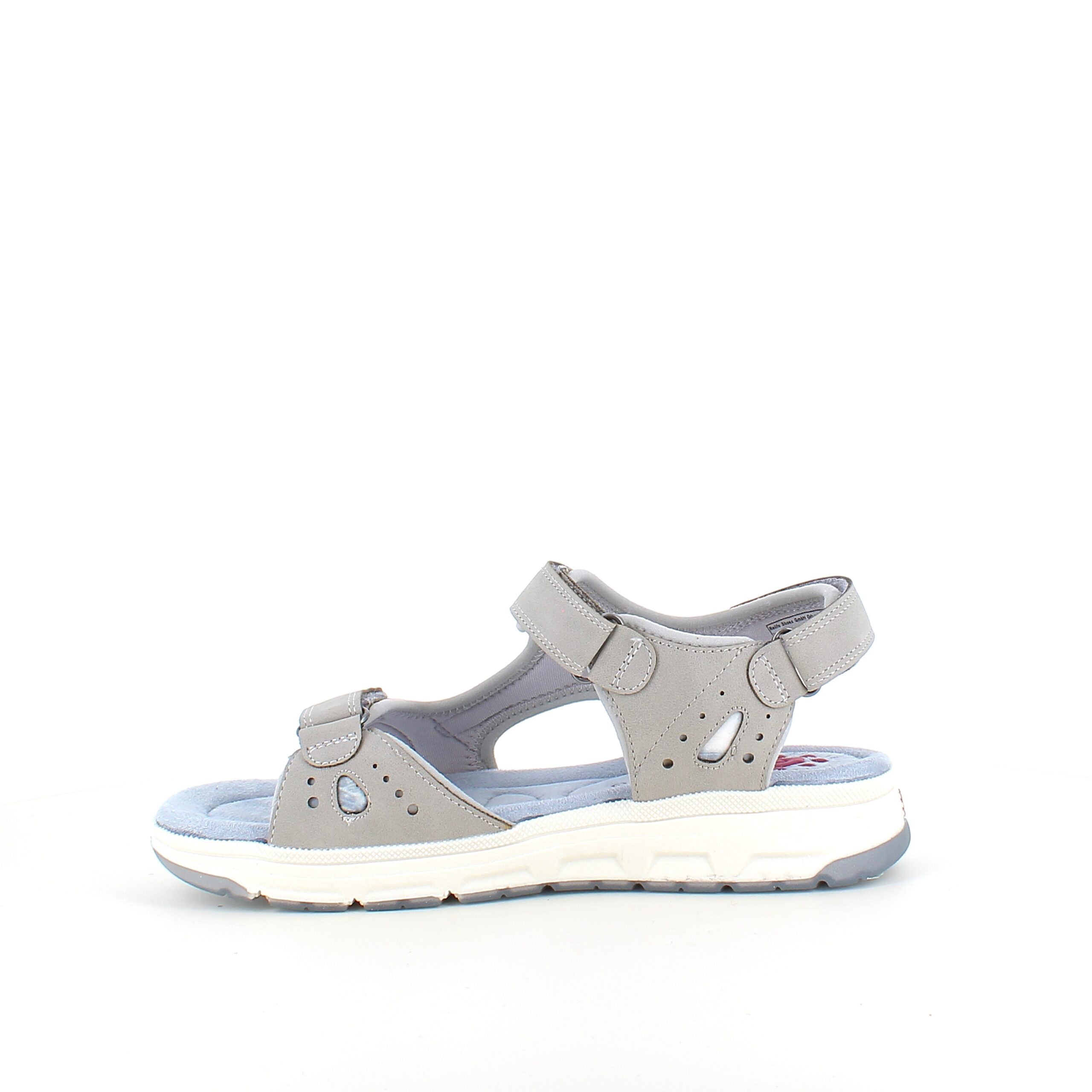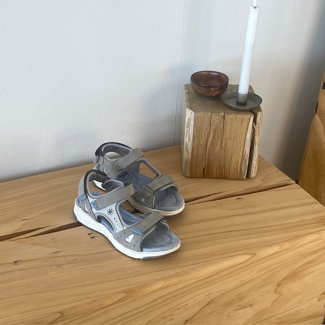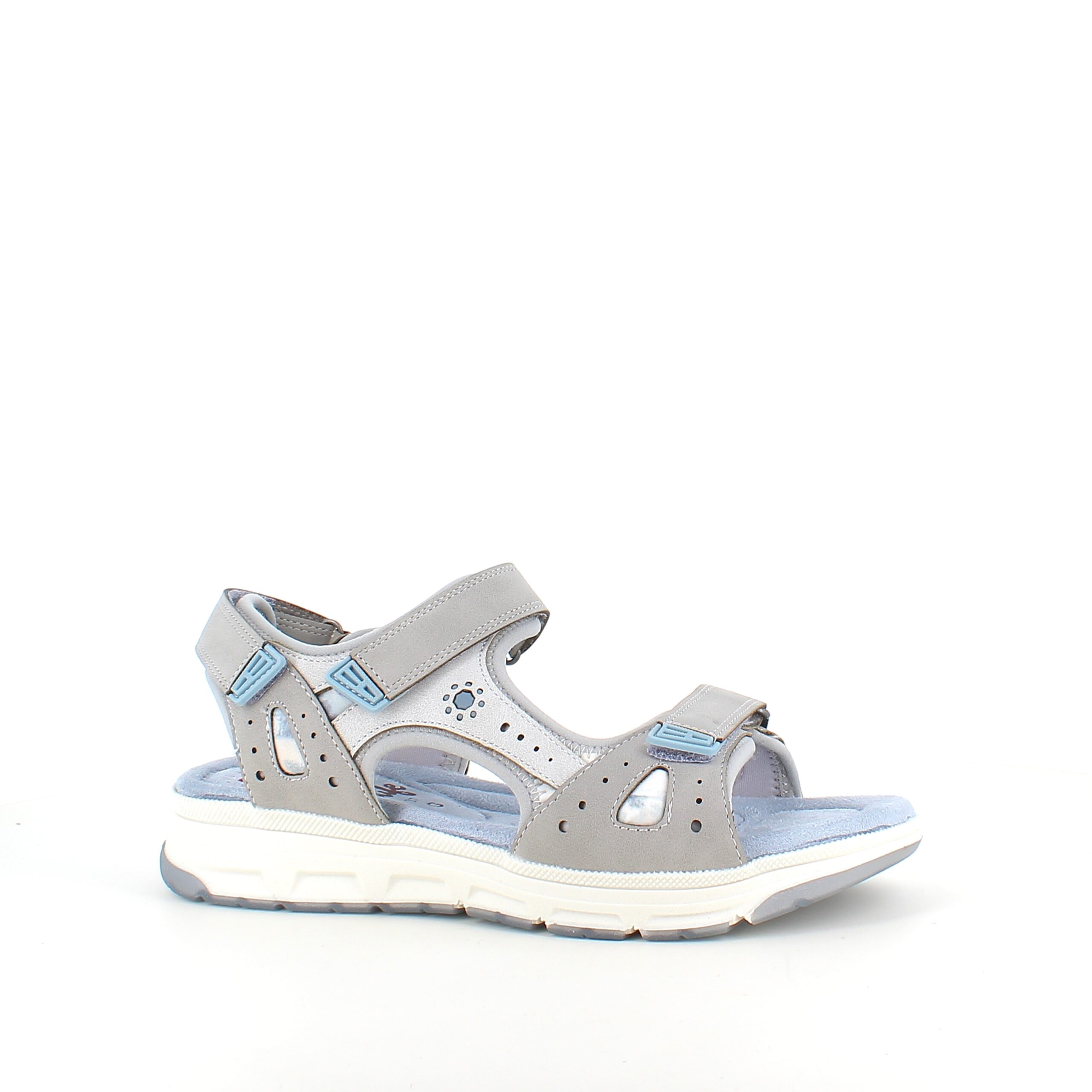 Relife damesandal med borrelås og massasjesåle – sølvgrå med blå detaljer