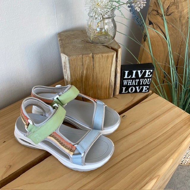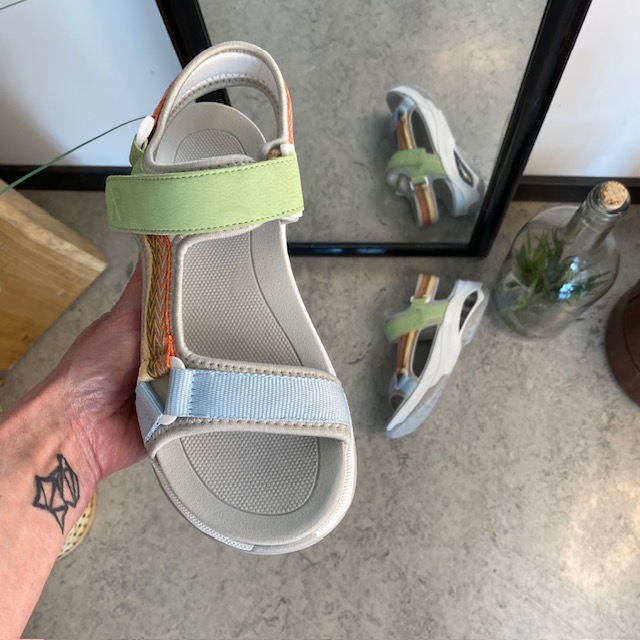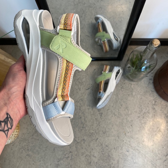 Opplev ultimat komfort på dine fotturer med denne multifargede Rieker tursandal.
