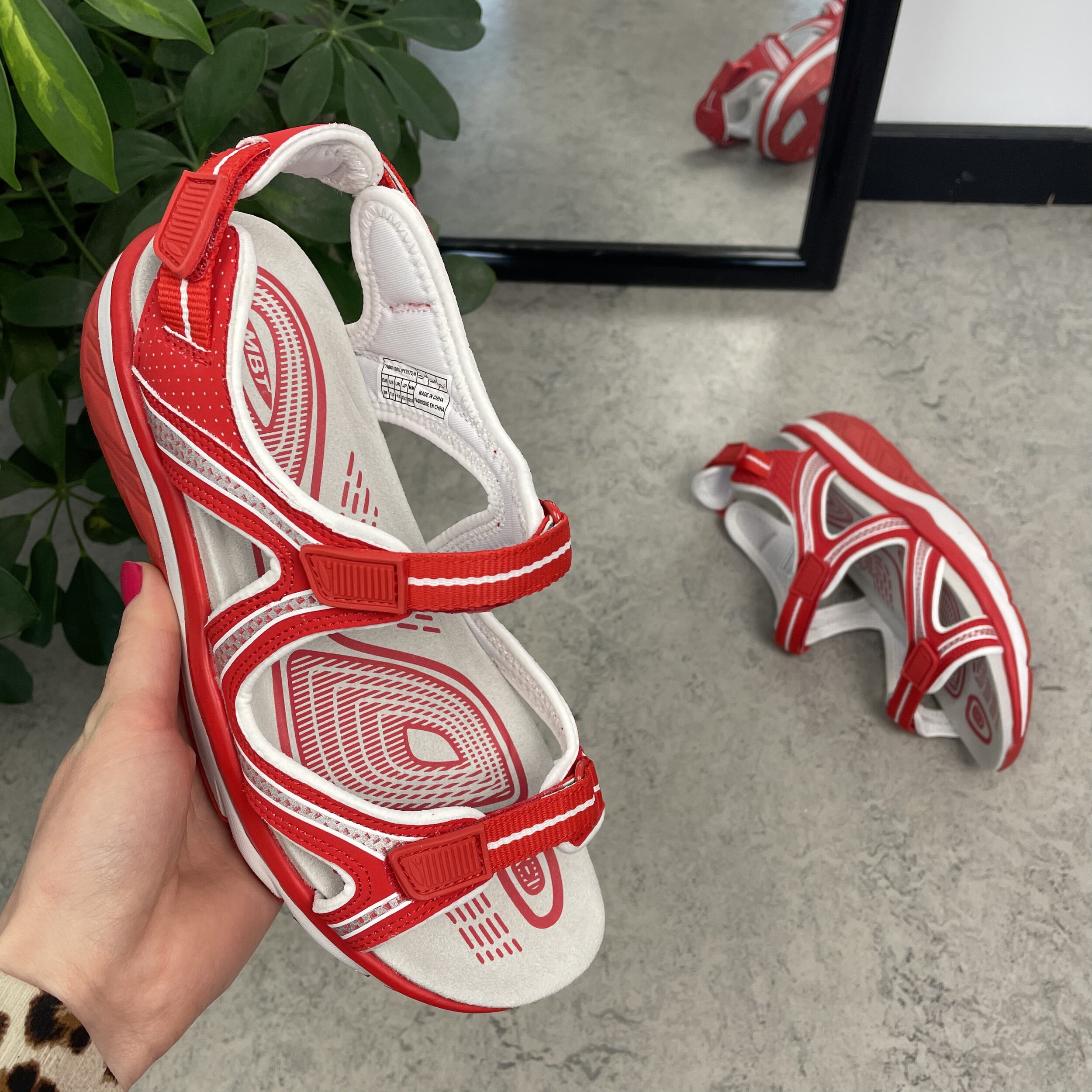 Rød MBT Lila sportssandal fra MBT. Dette er en sporty sandal laget i syntetisk nubuck og tekstil.