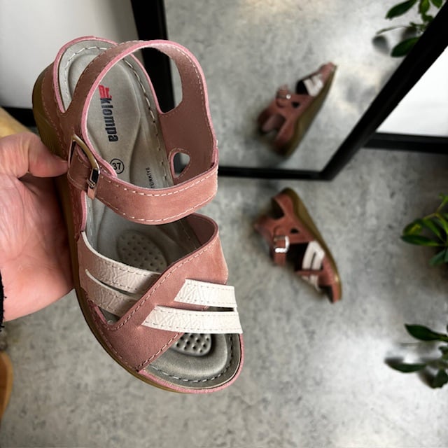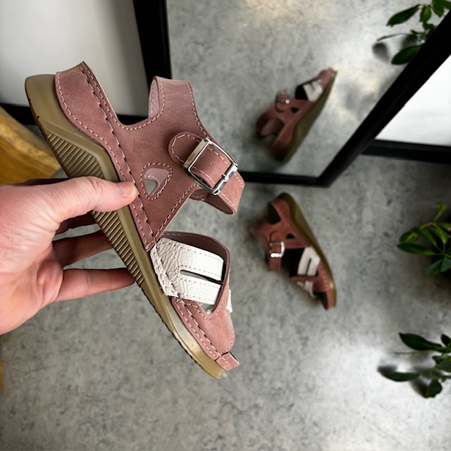 Rosa elegant sandal med fotbuestøtte – OBS 2. sortering
