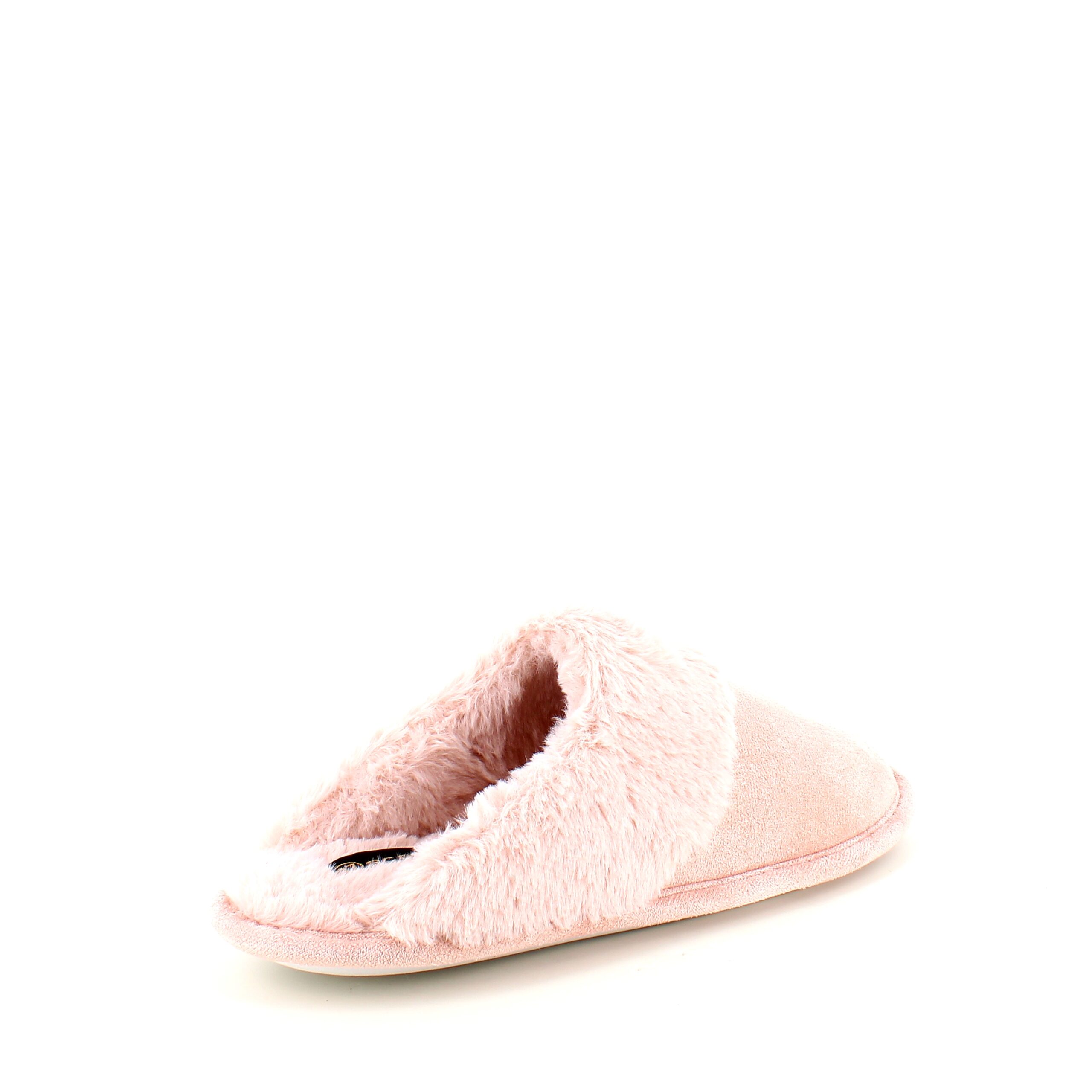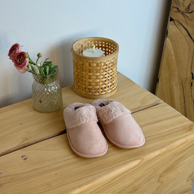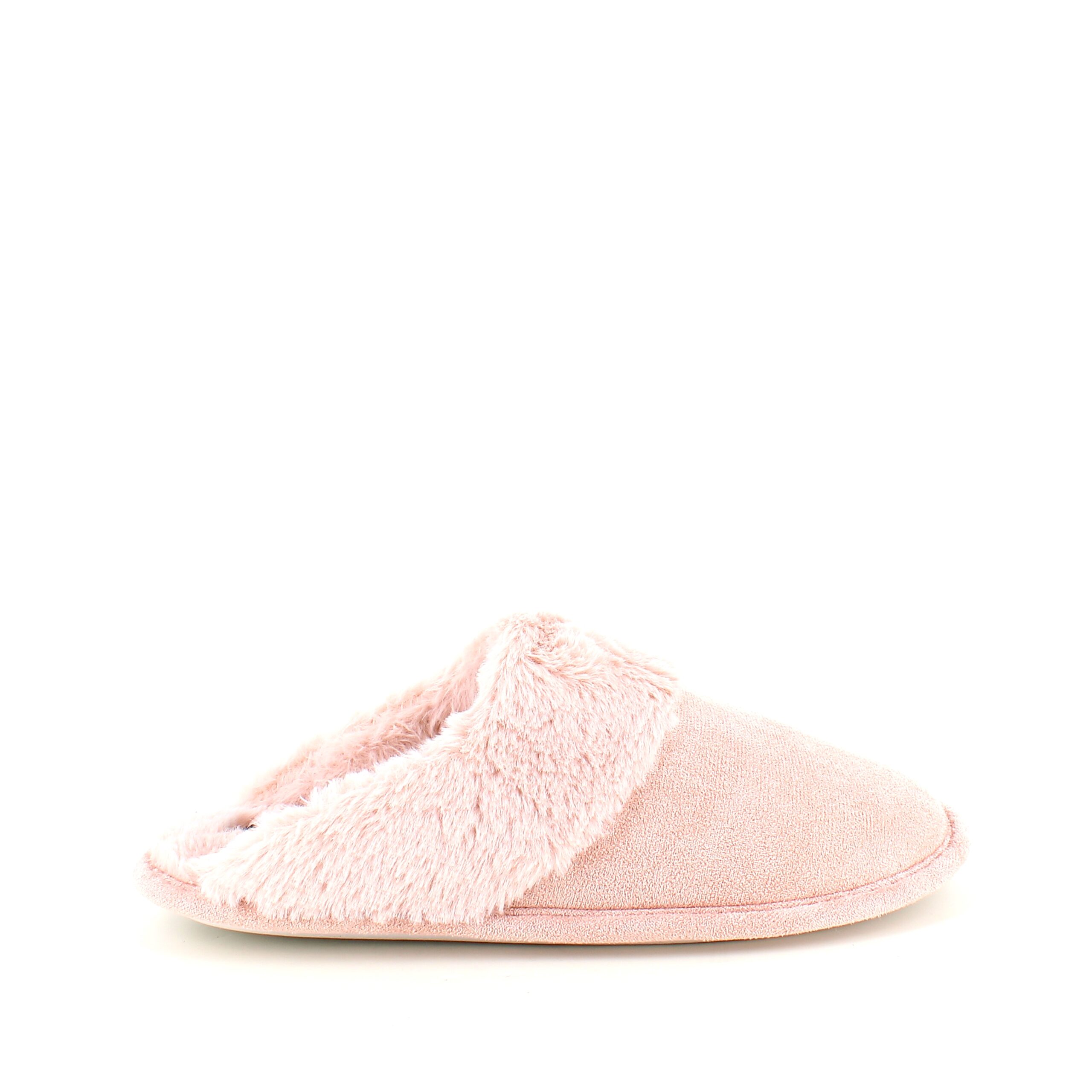 Rosa Slip In tøfler med mykt syntetisk pels.