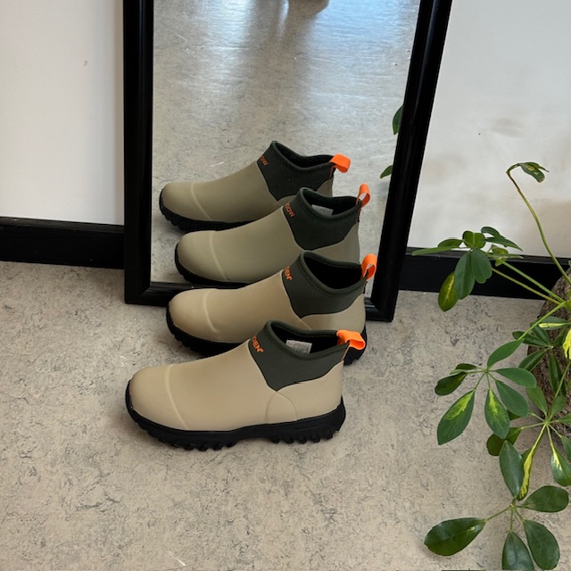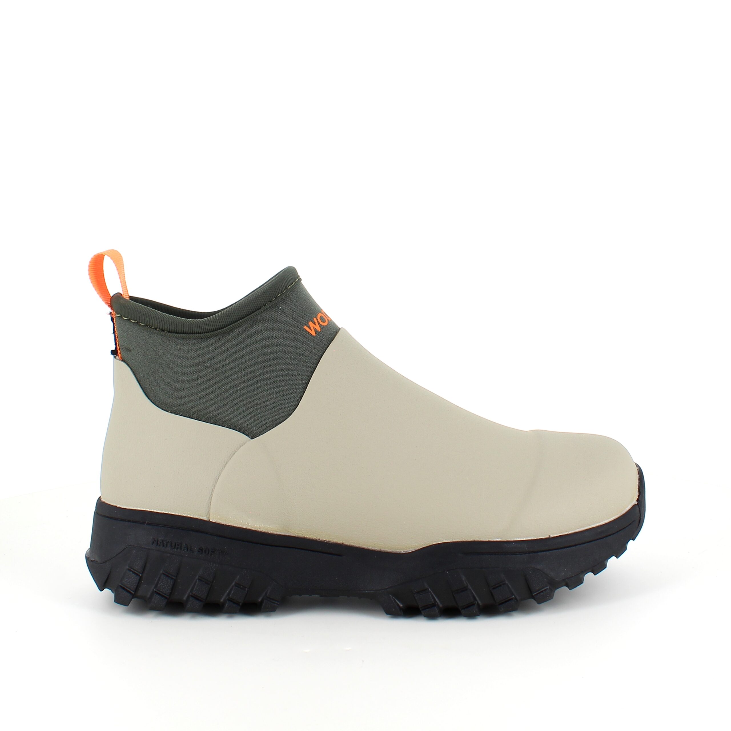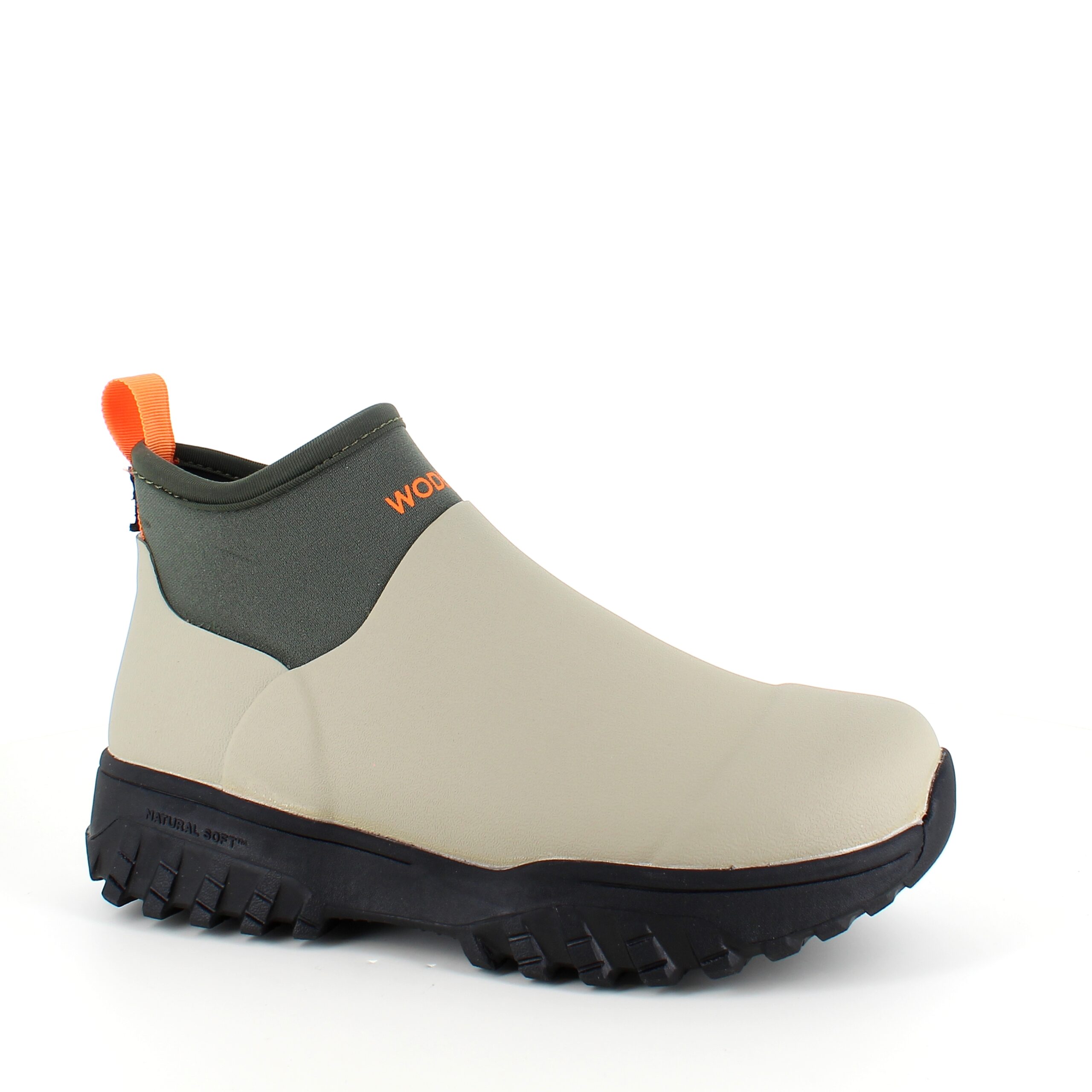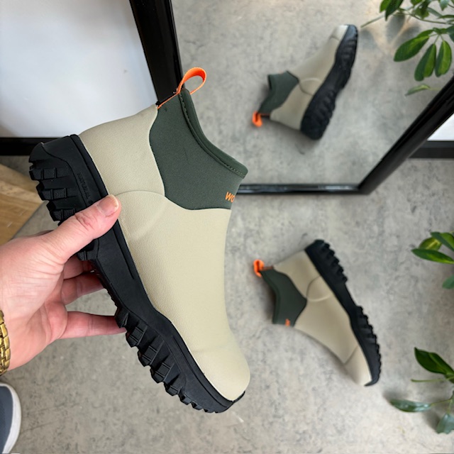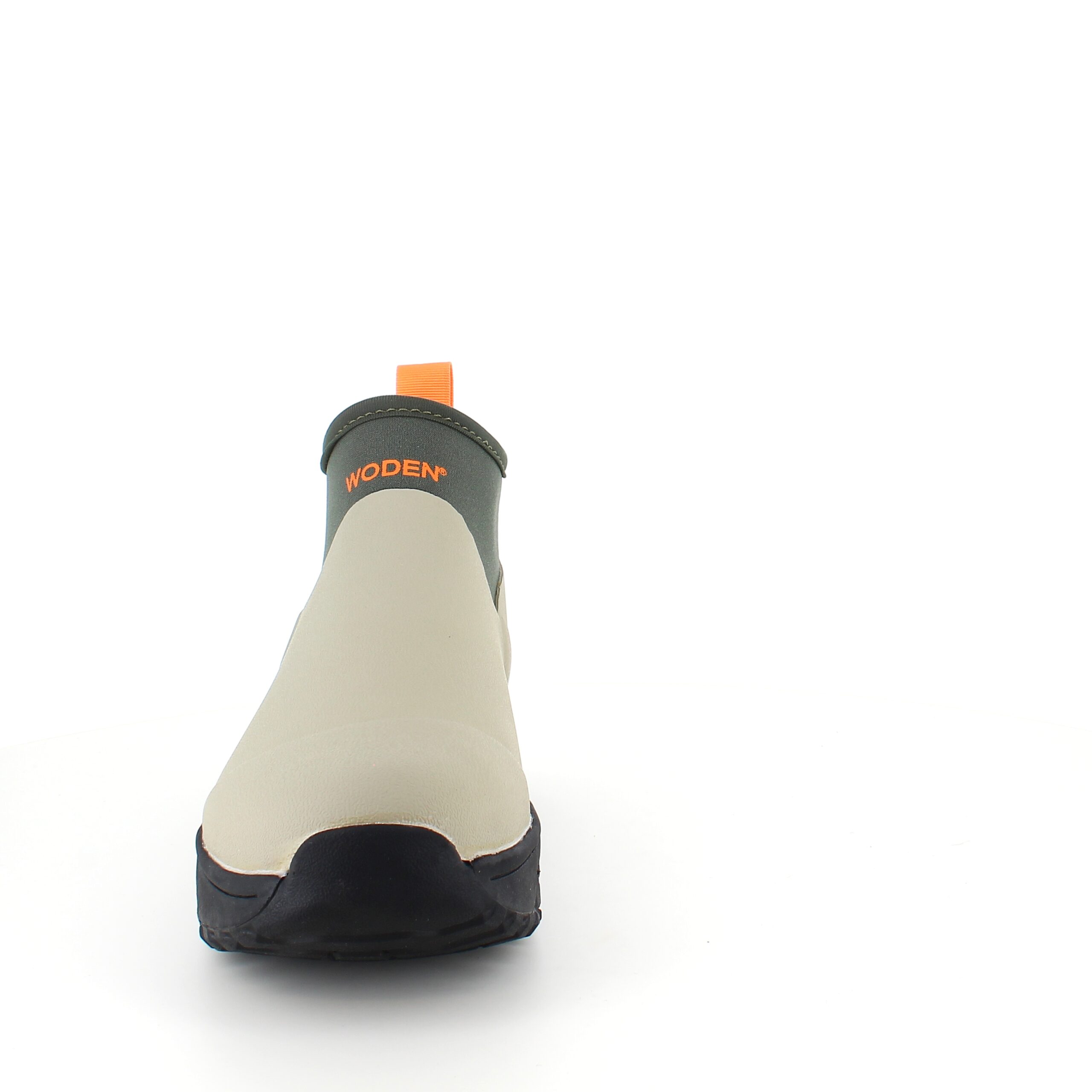 Sandfarget kort gummistøvel fra Woden med vriststøtte og god støtdemping.