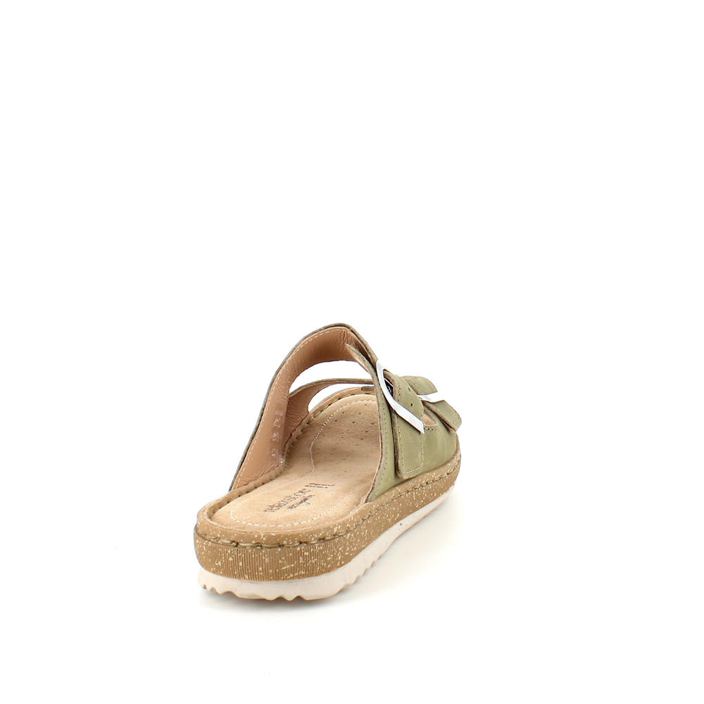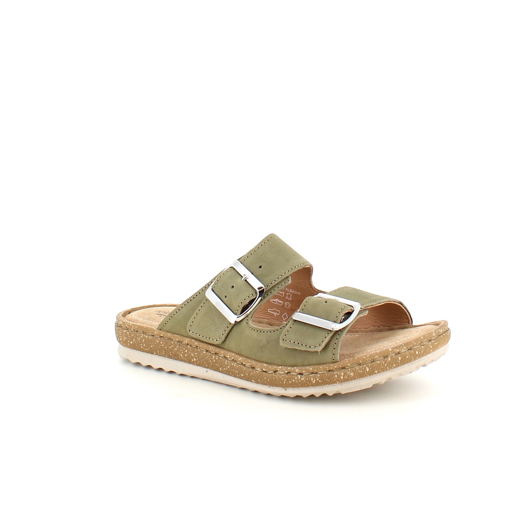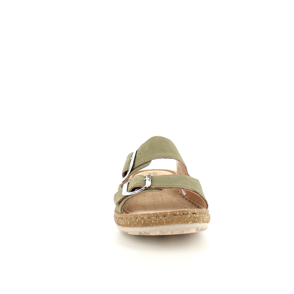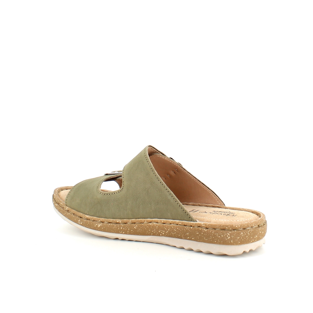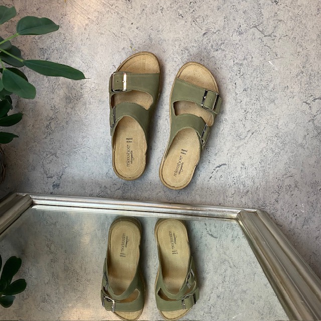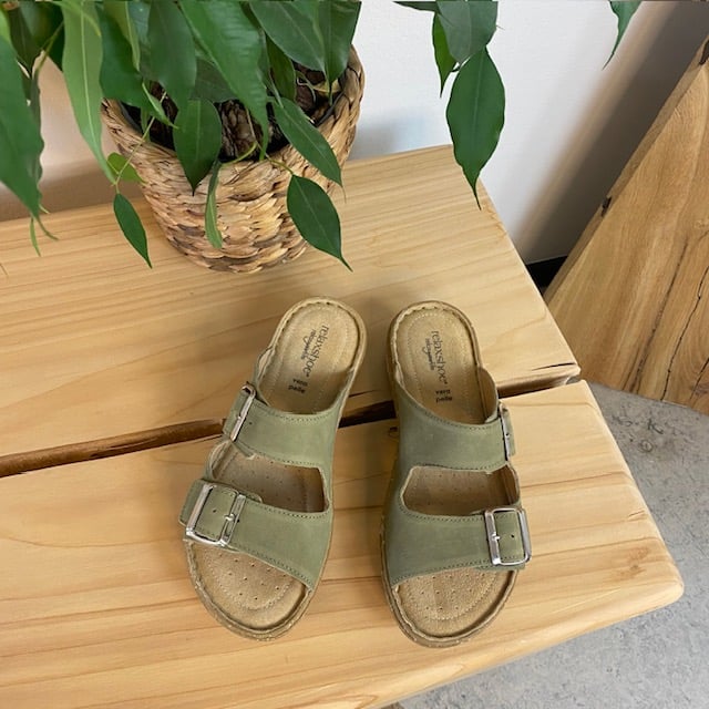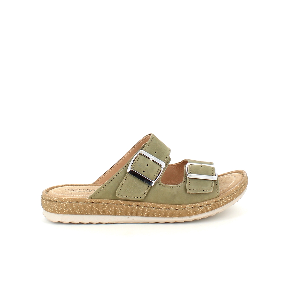 Slip-in sandal fra Relaxshoe i matt grønt skinn med to justerbare remmer