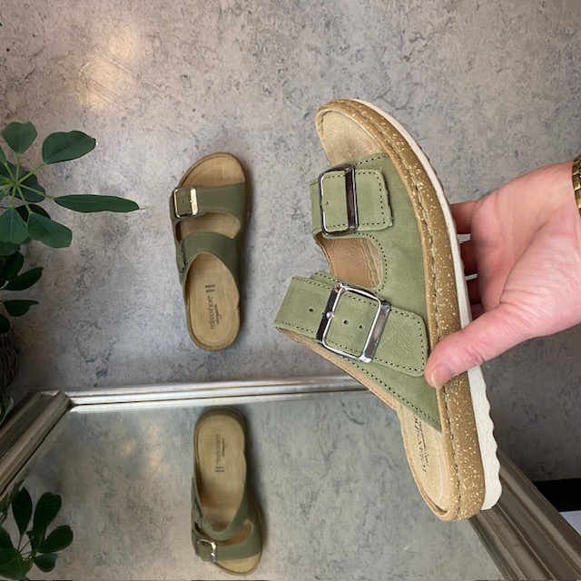 Slip-in sandal i matt grønn skinn fra Relaxshoe