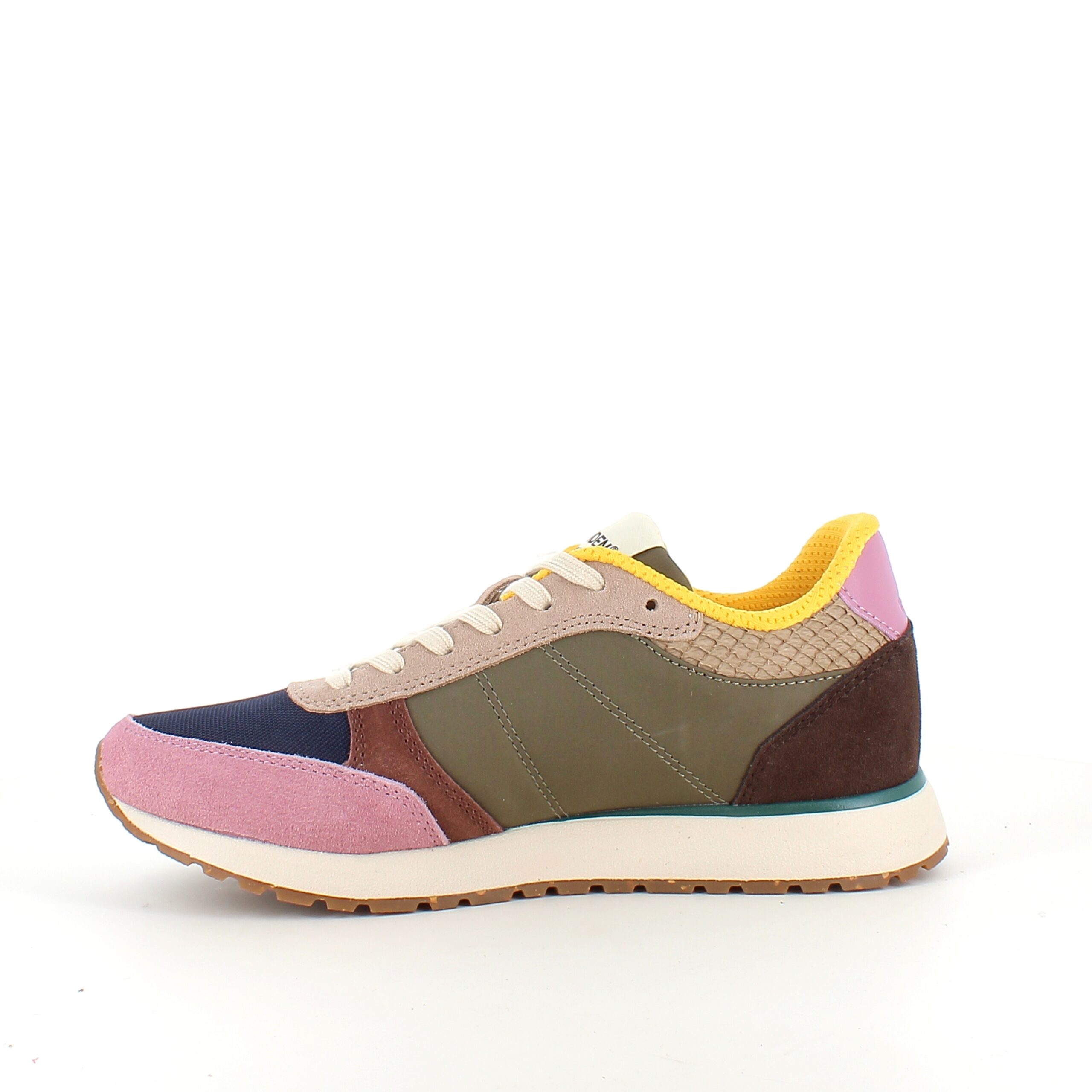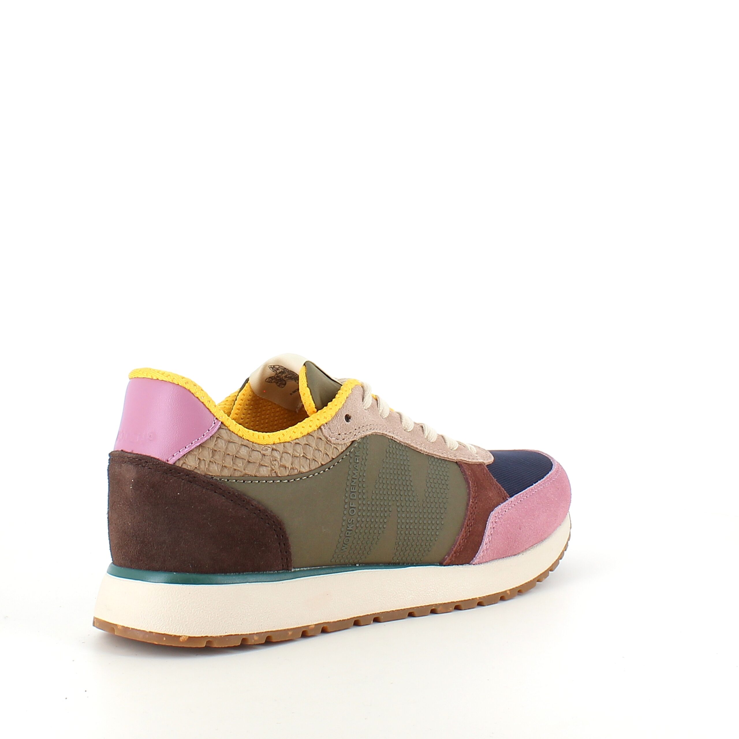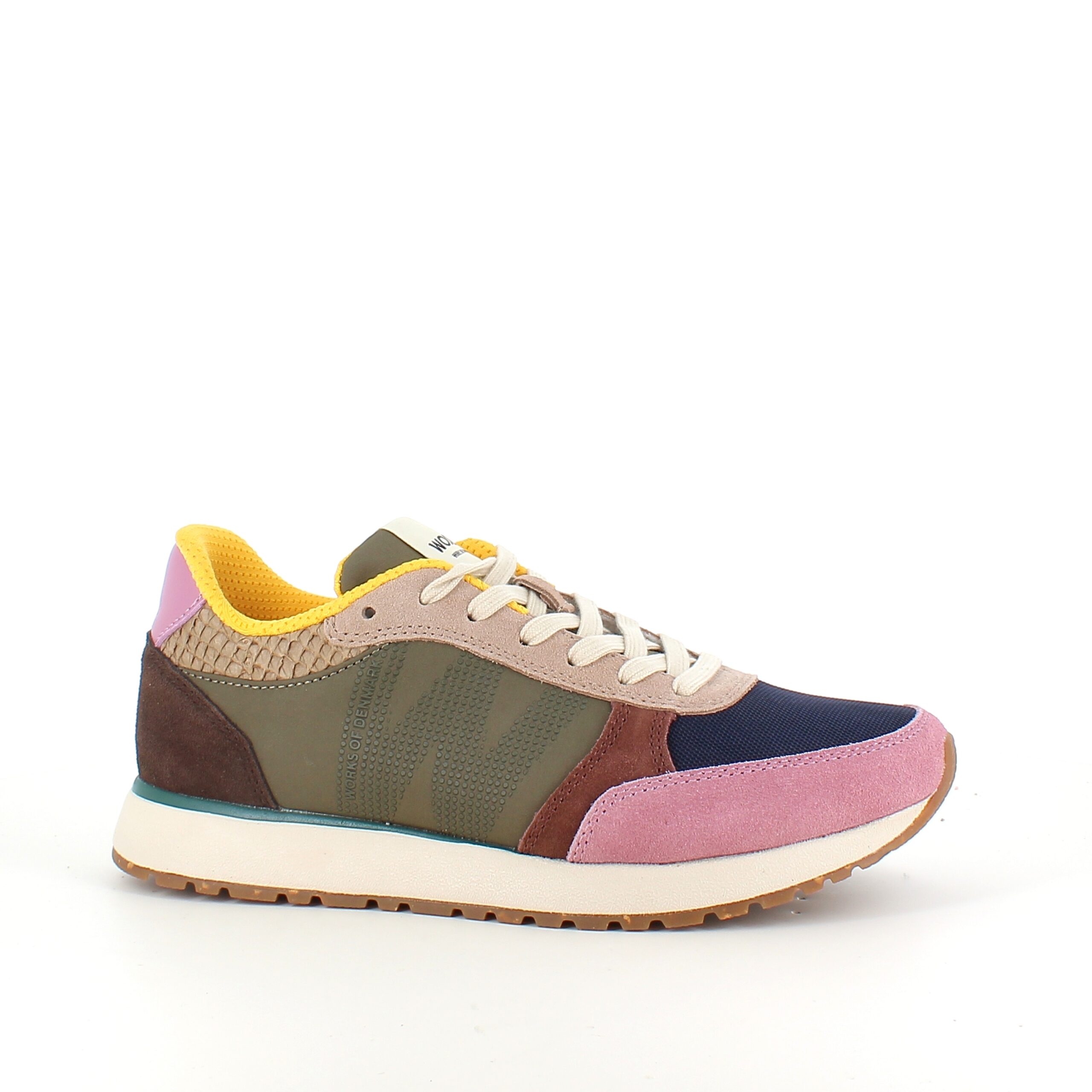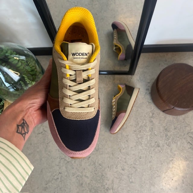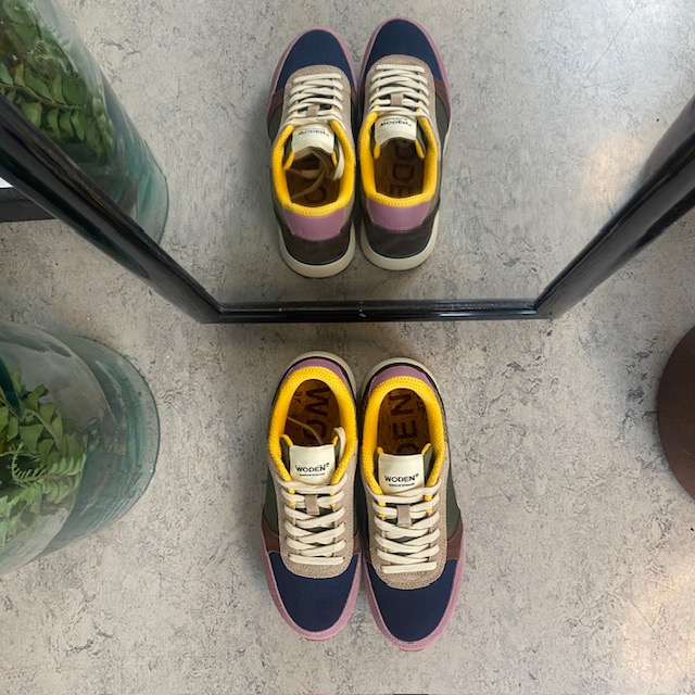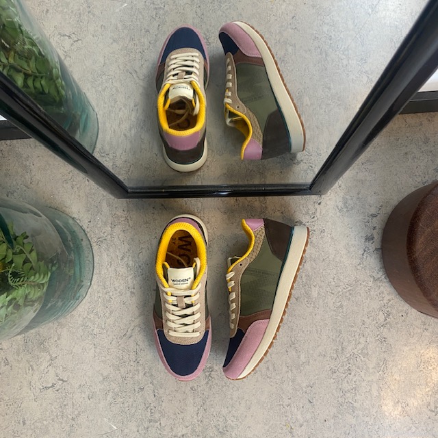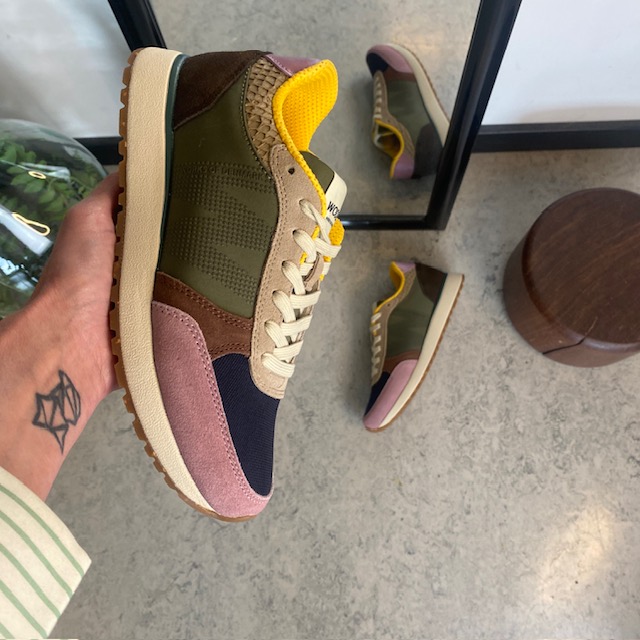 Skoen har en overdel ved tærne laget av pustende mesh. Resten av skoen er laget av en kombinasjon av skinn og semsket skinn.