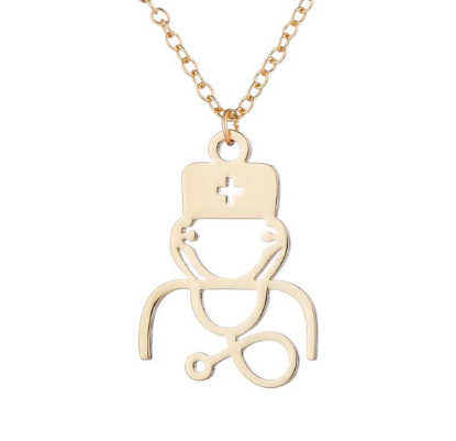 Kjede i guldtone med helsepersonellsymbol i anhenget.