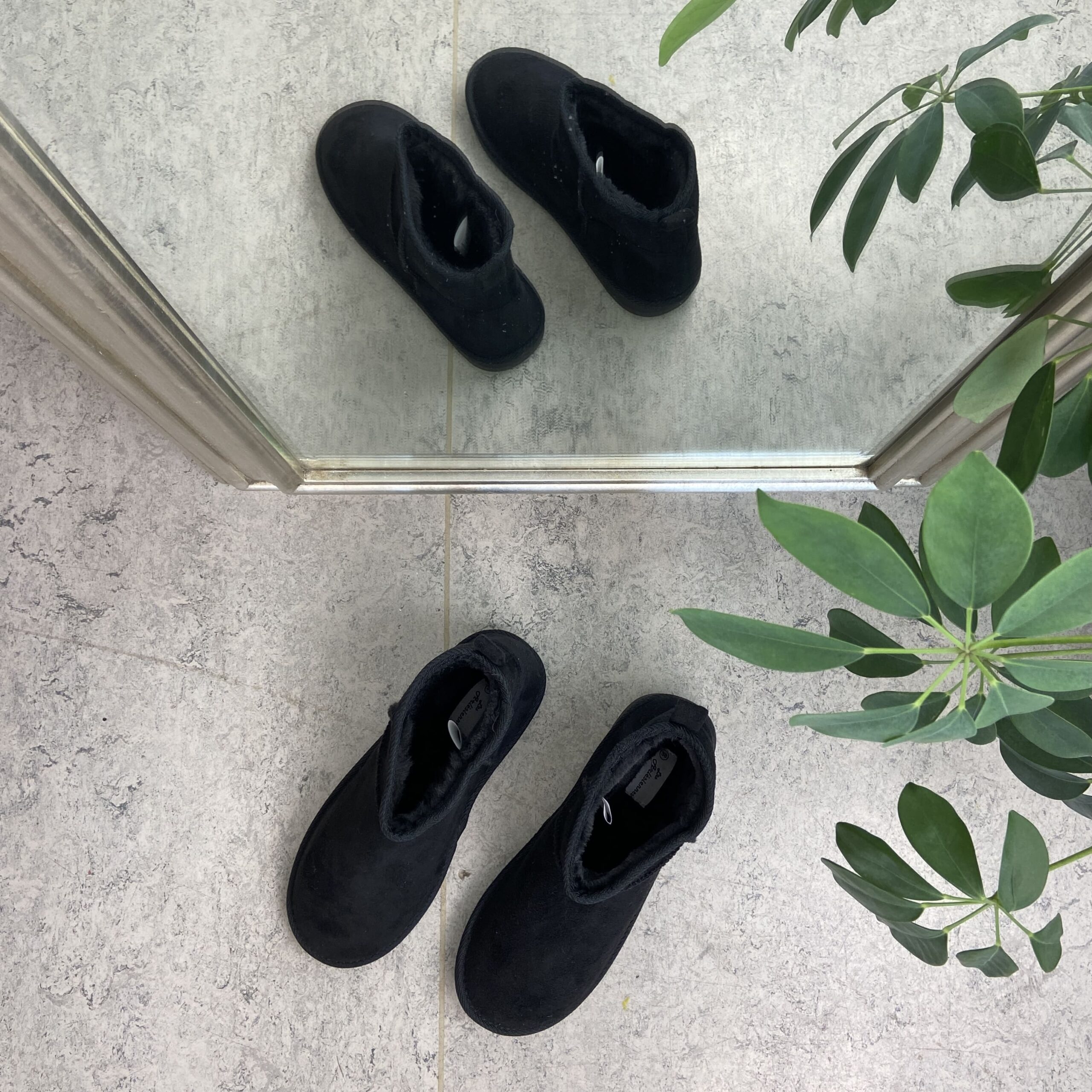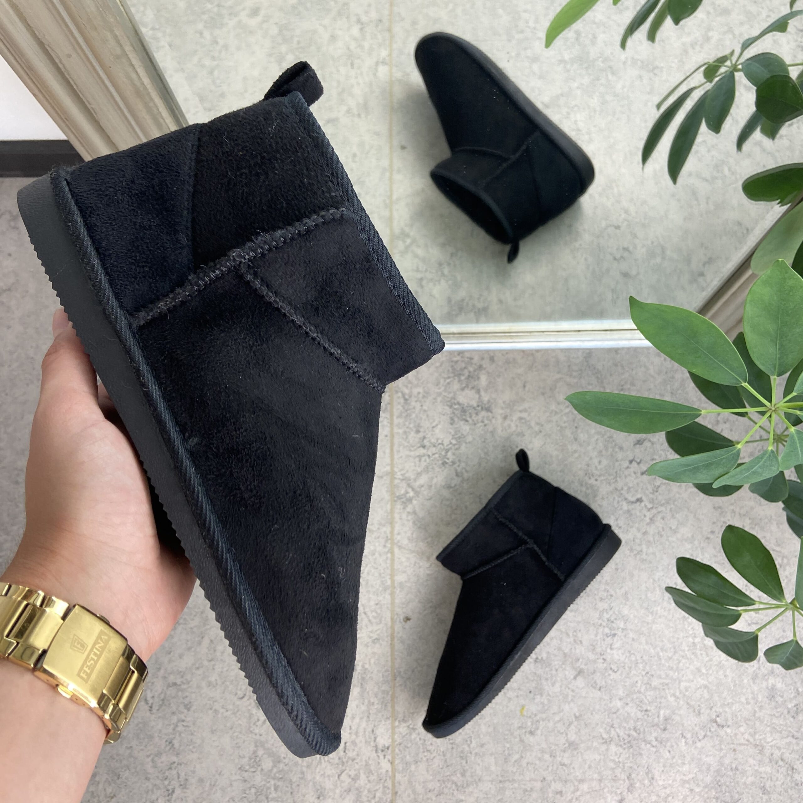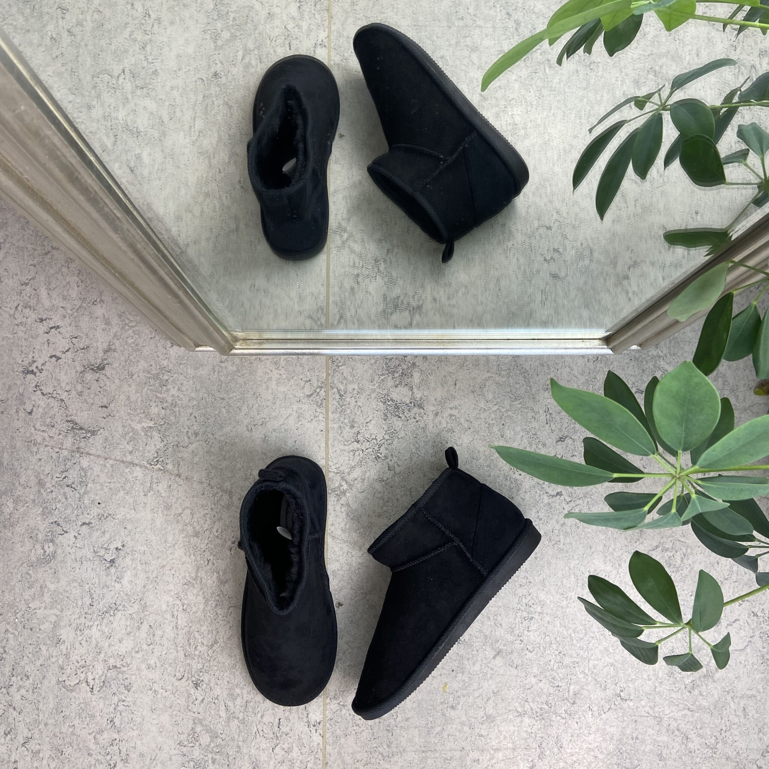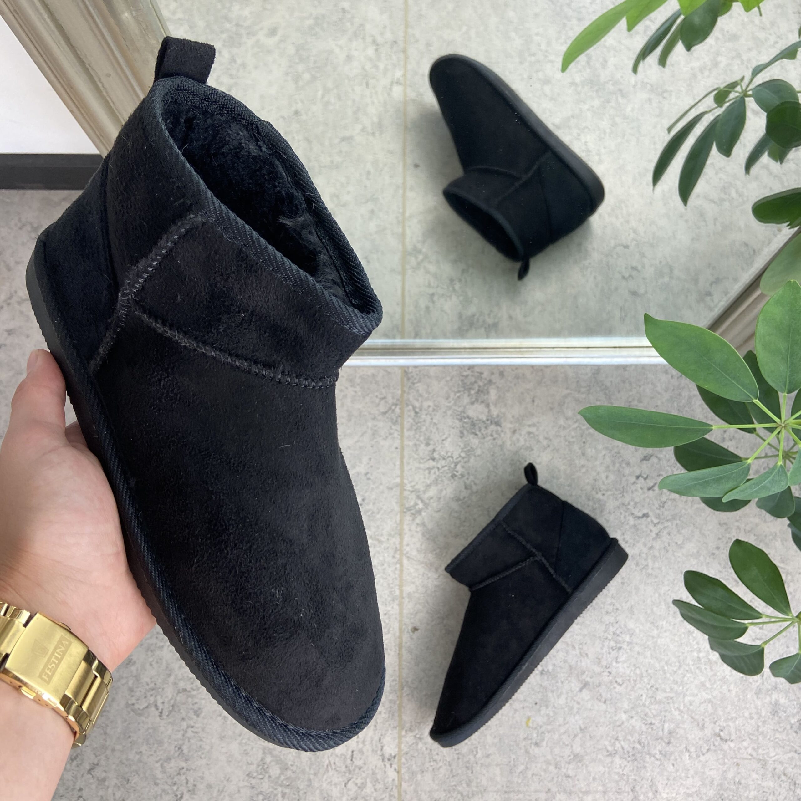 Svart bamsestøvel med mykt fôr og kort skaft