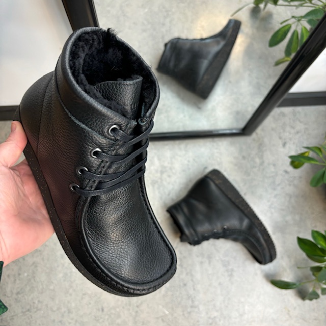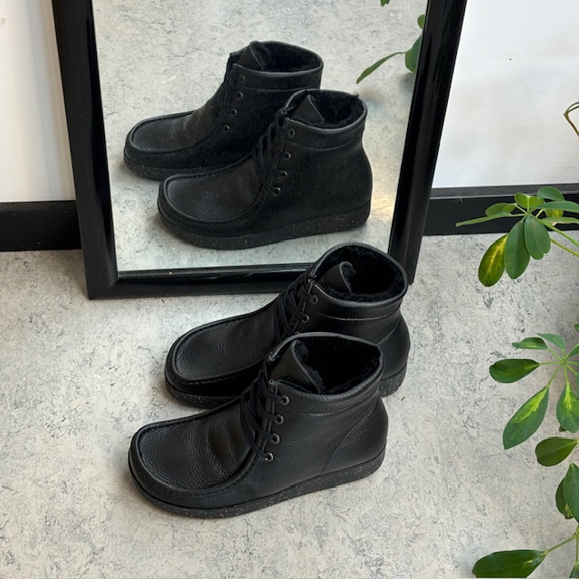 Sort lærstøvel fra Nature foret med ull er en lekker og komfortabel støvel, perfekt for kjøligere dager.