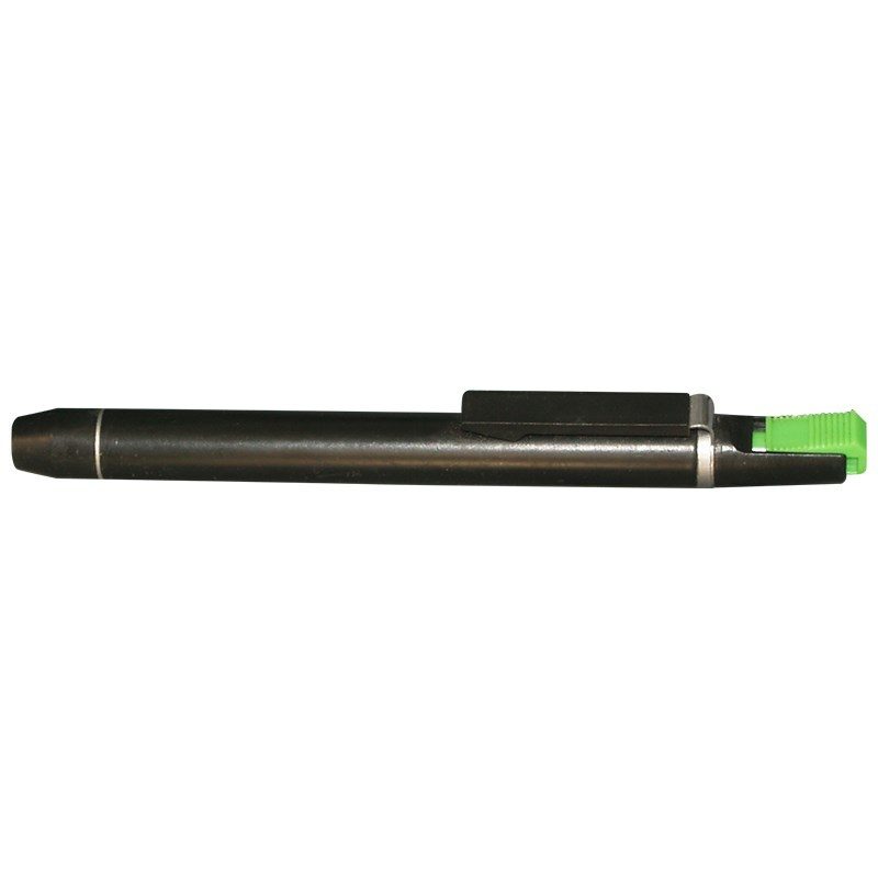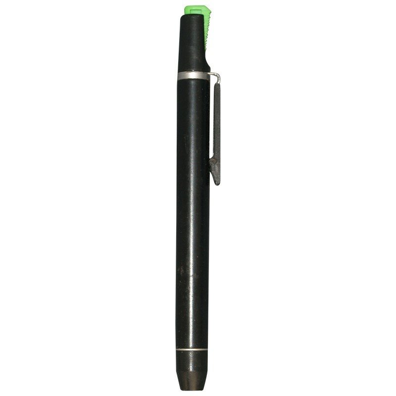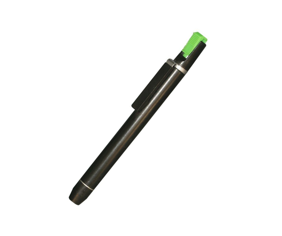 Penlykt i svart til bruk i sykepleien. Denne penlykten har en trykknapp, så man ikke trenger å holde knappen inne mens man lyser.