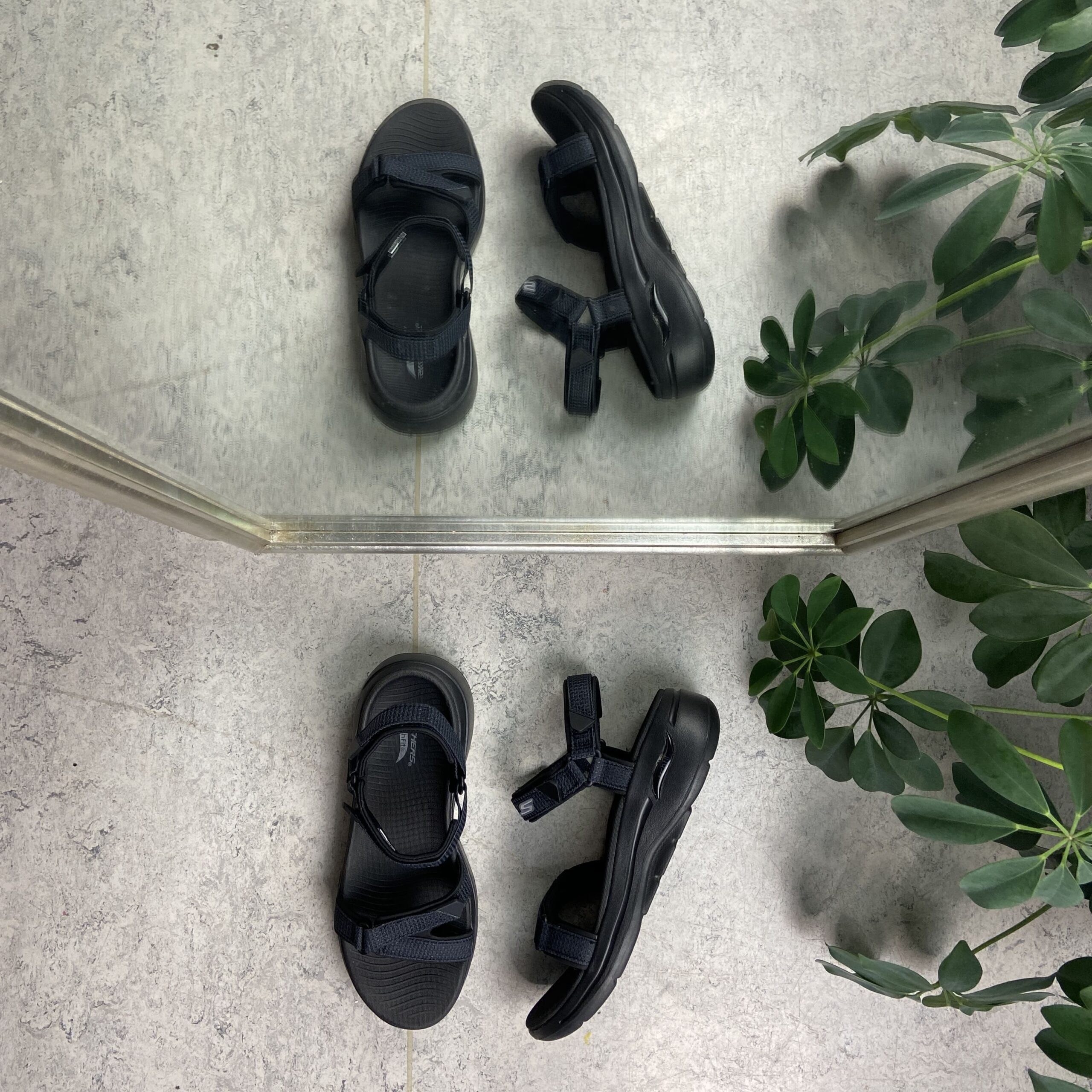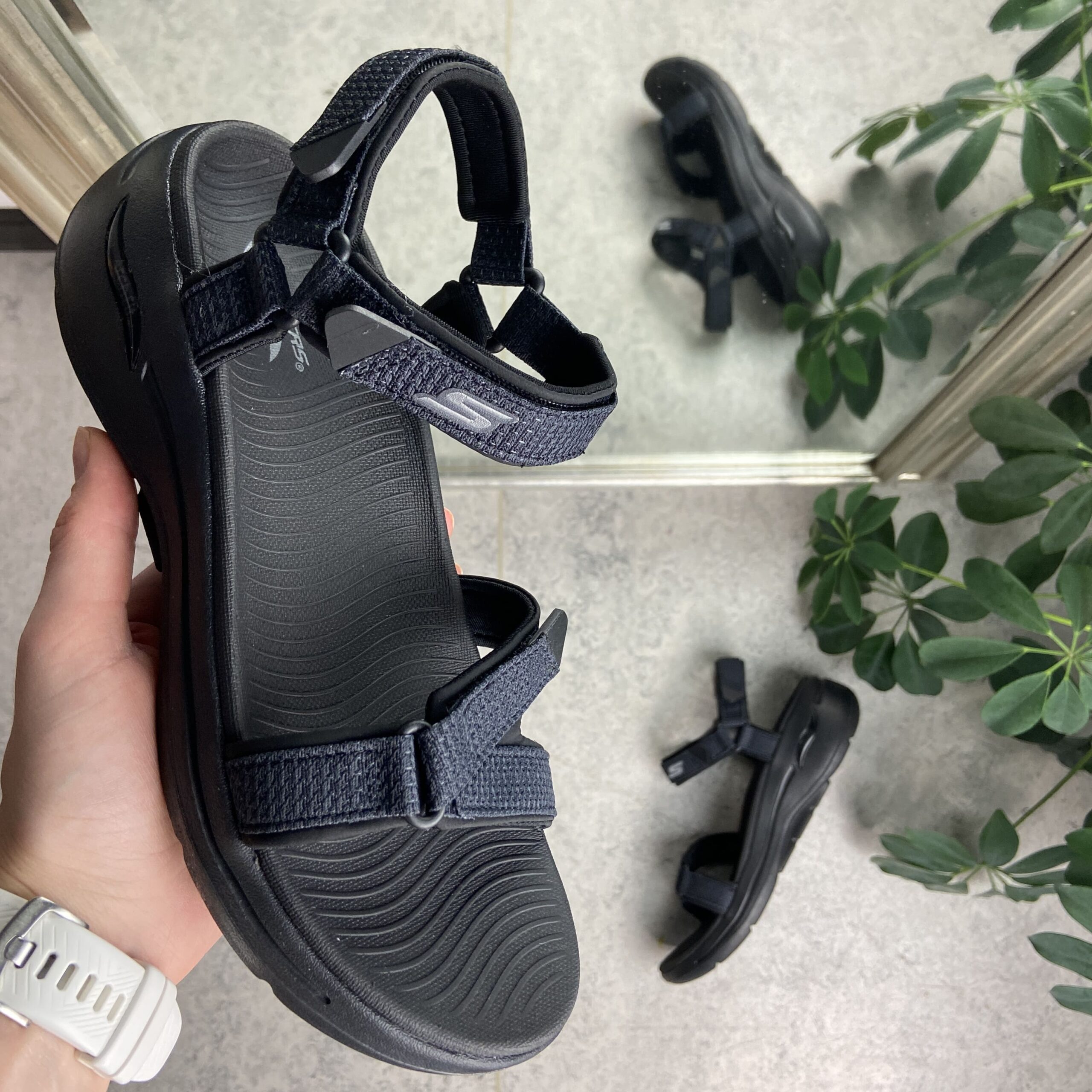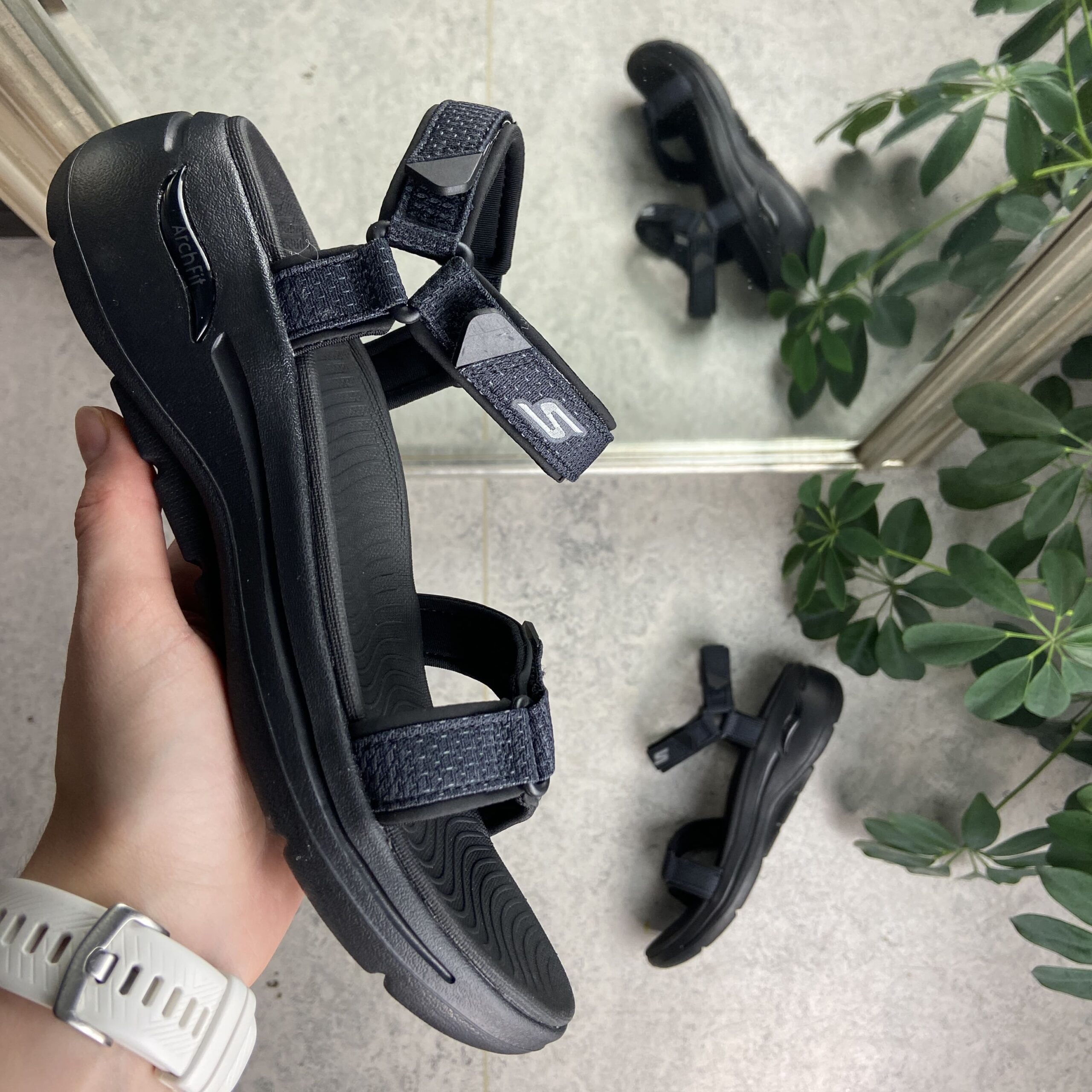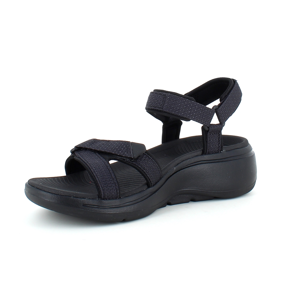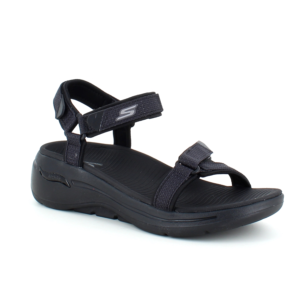 Svart sandal fra Skechers med fotbuestøtte