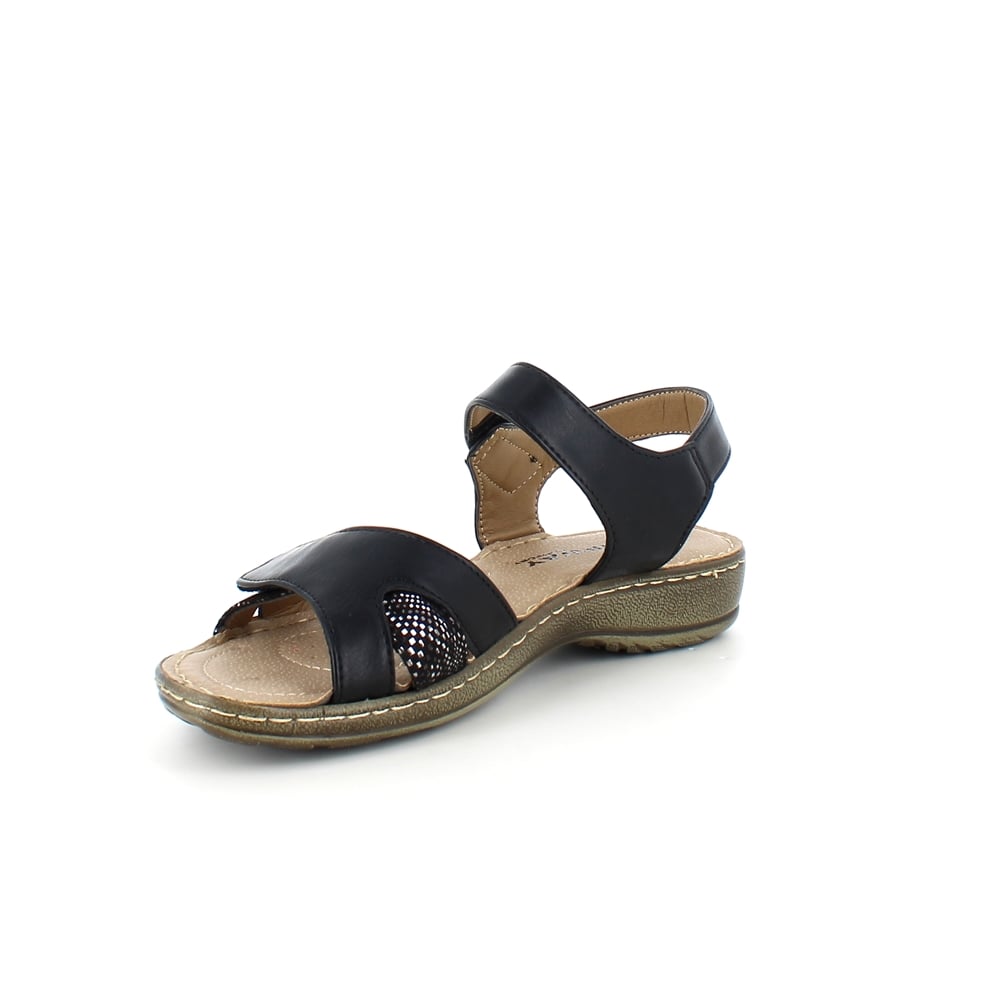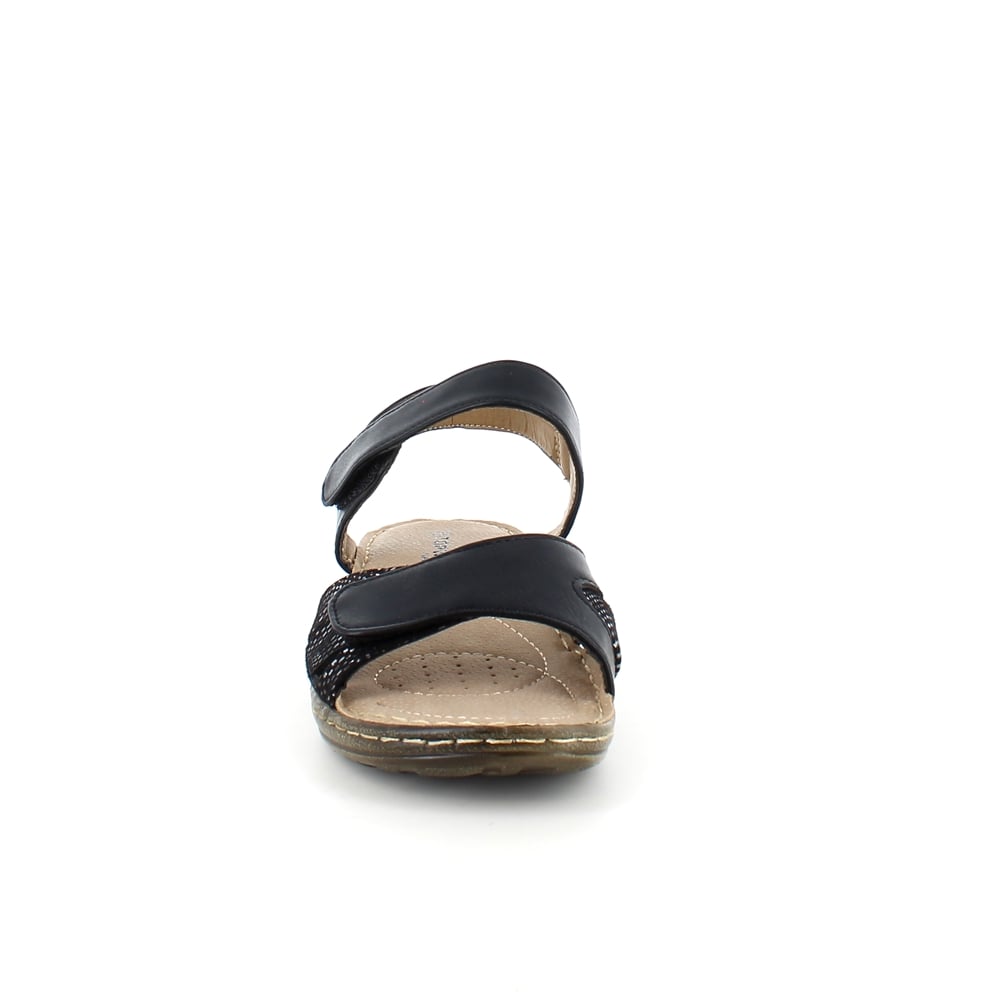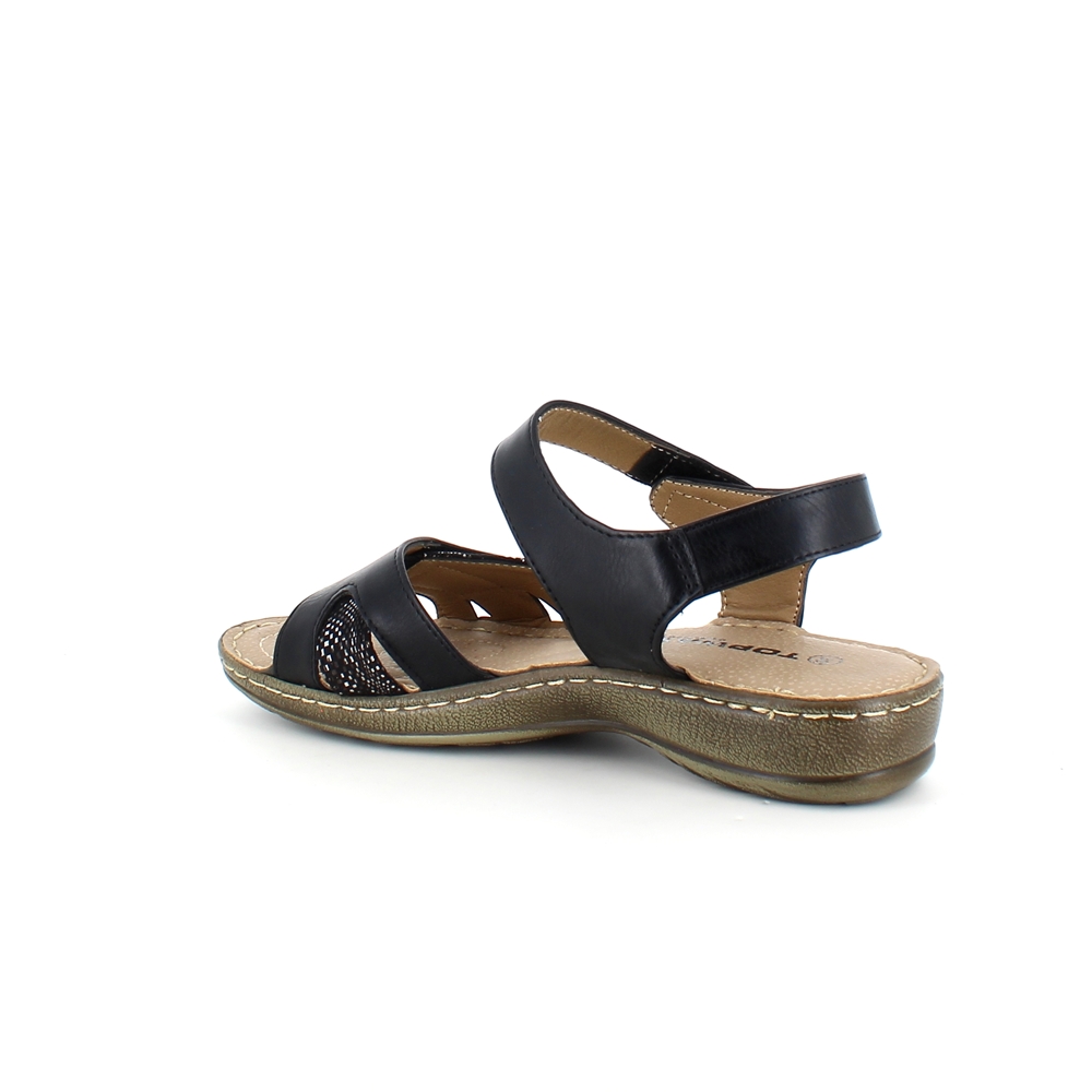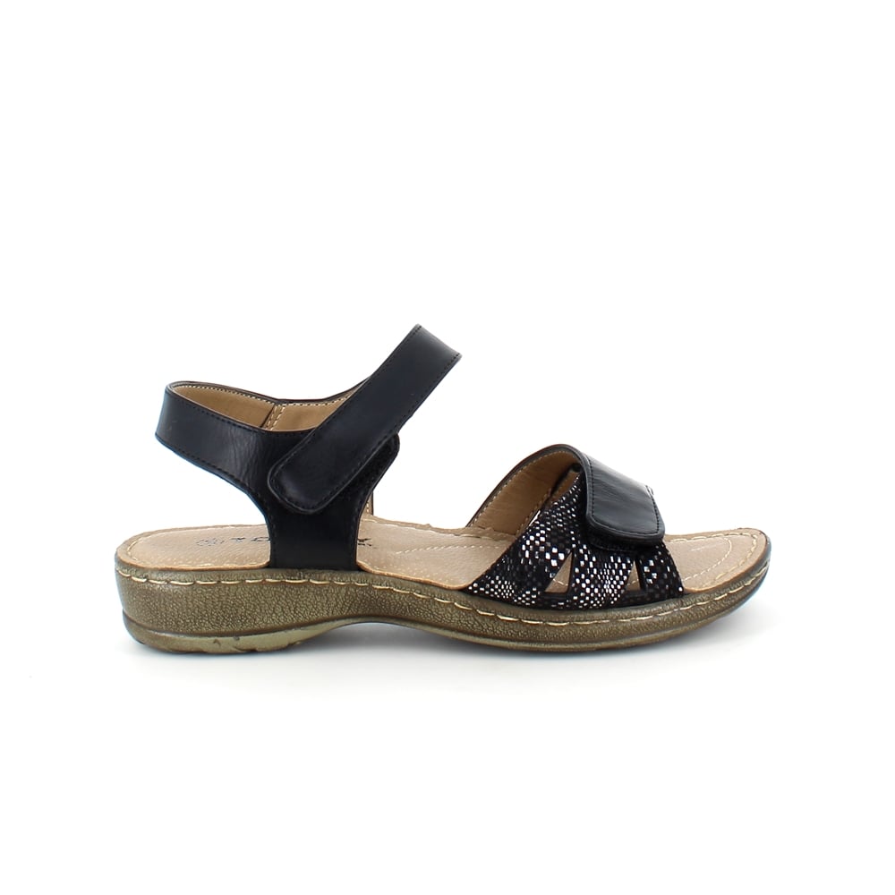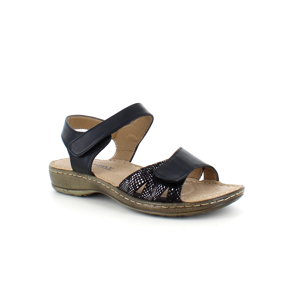 Svart sandal til en bred fot