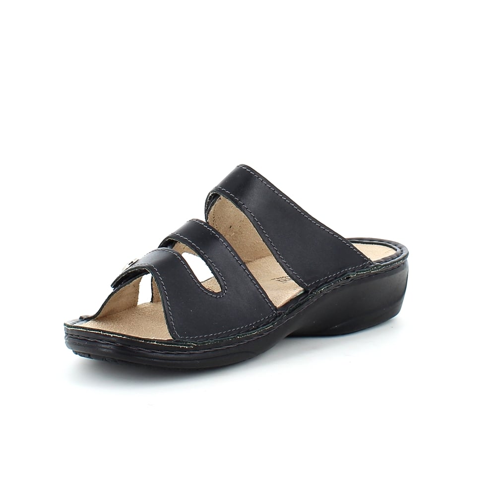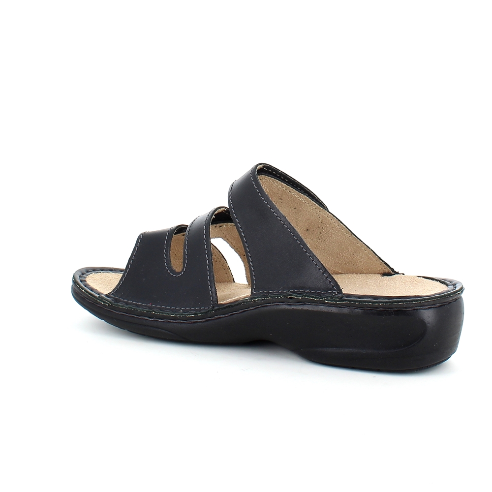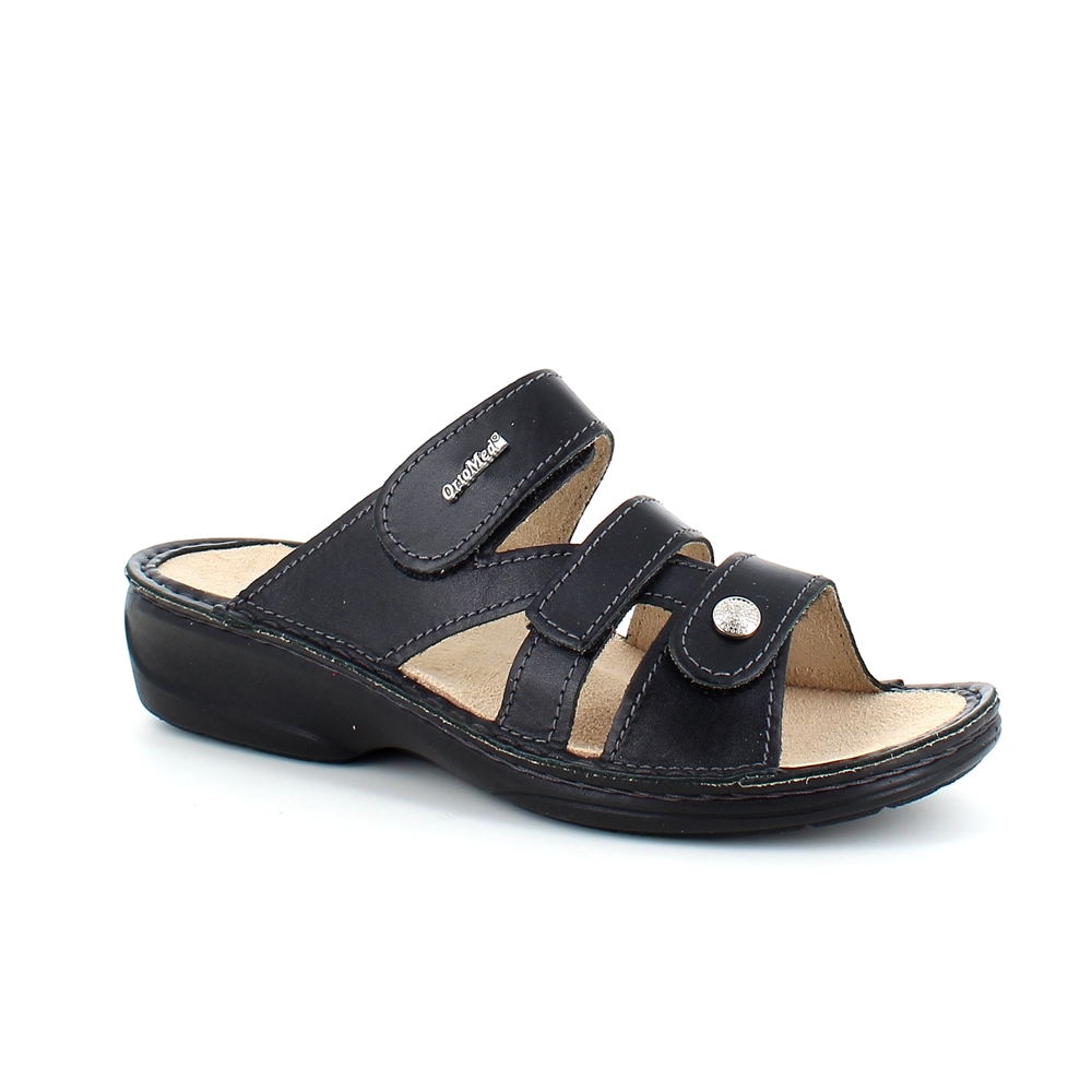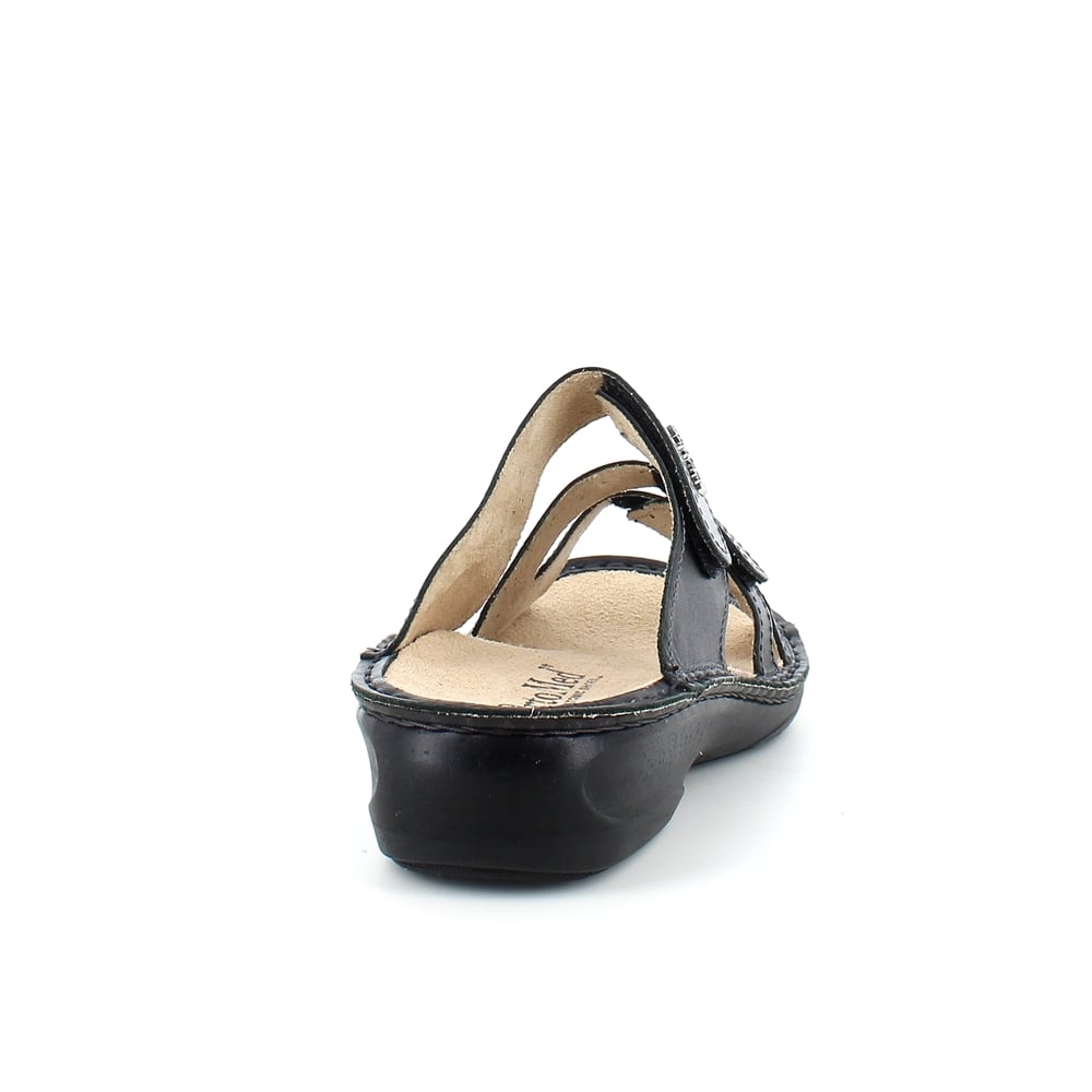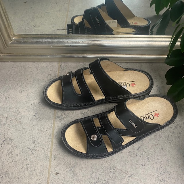 Bred ortopedisk sandal i svart med borrelås på forfoten