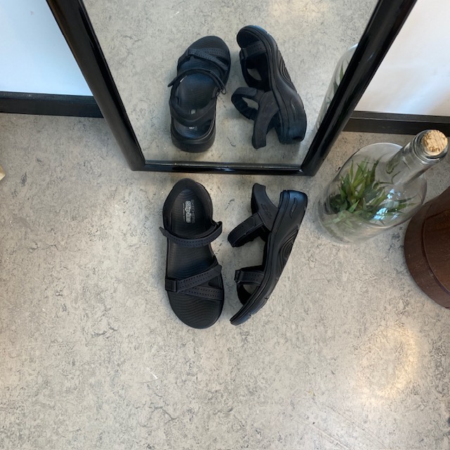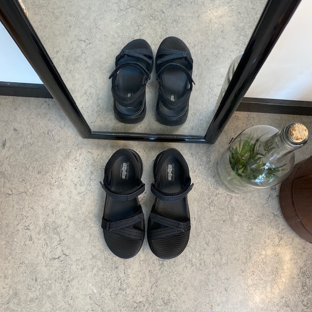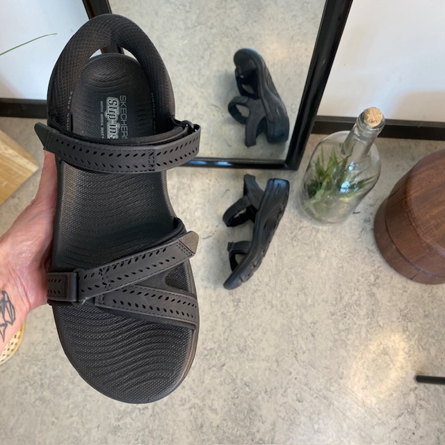 Sort Slip-Ins sandal fra Skechers med god svangstøtte