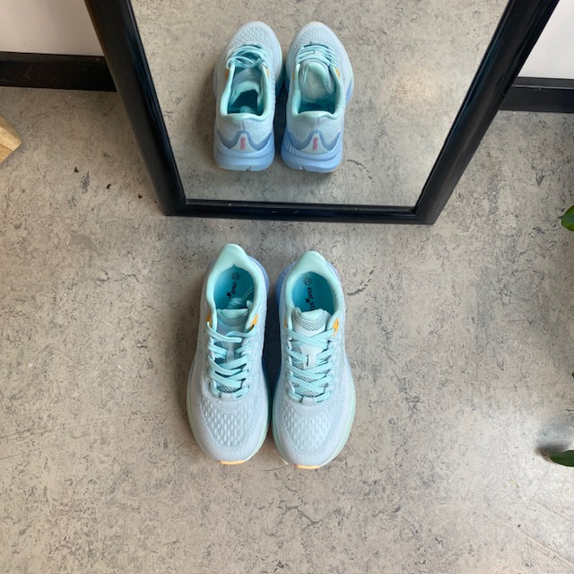 Skoen finnes i størrelsene 36 – 41 og finnes i en grå/lilla fargekombinasjon.