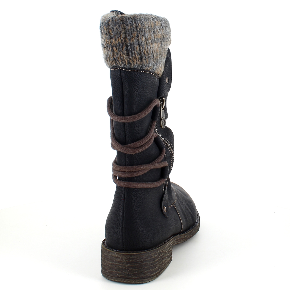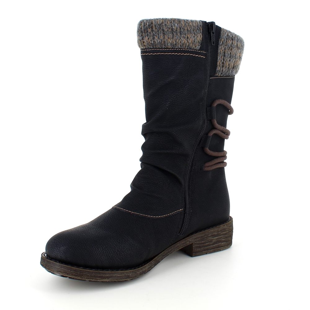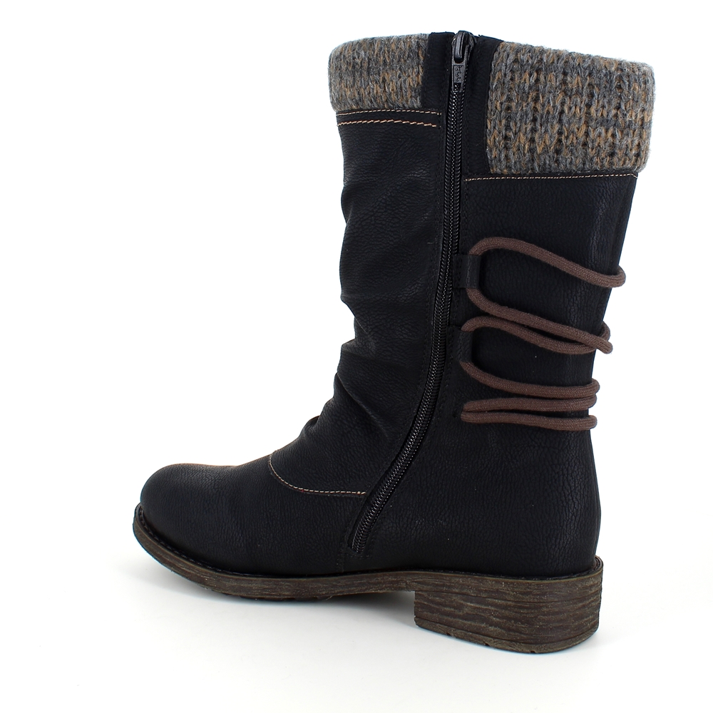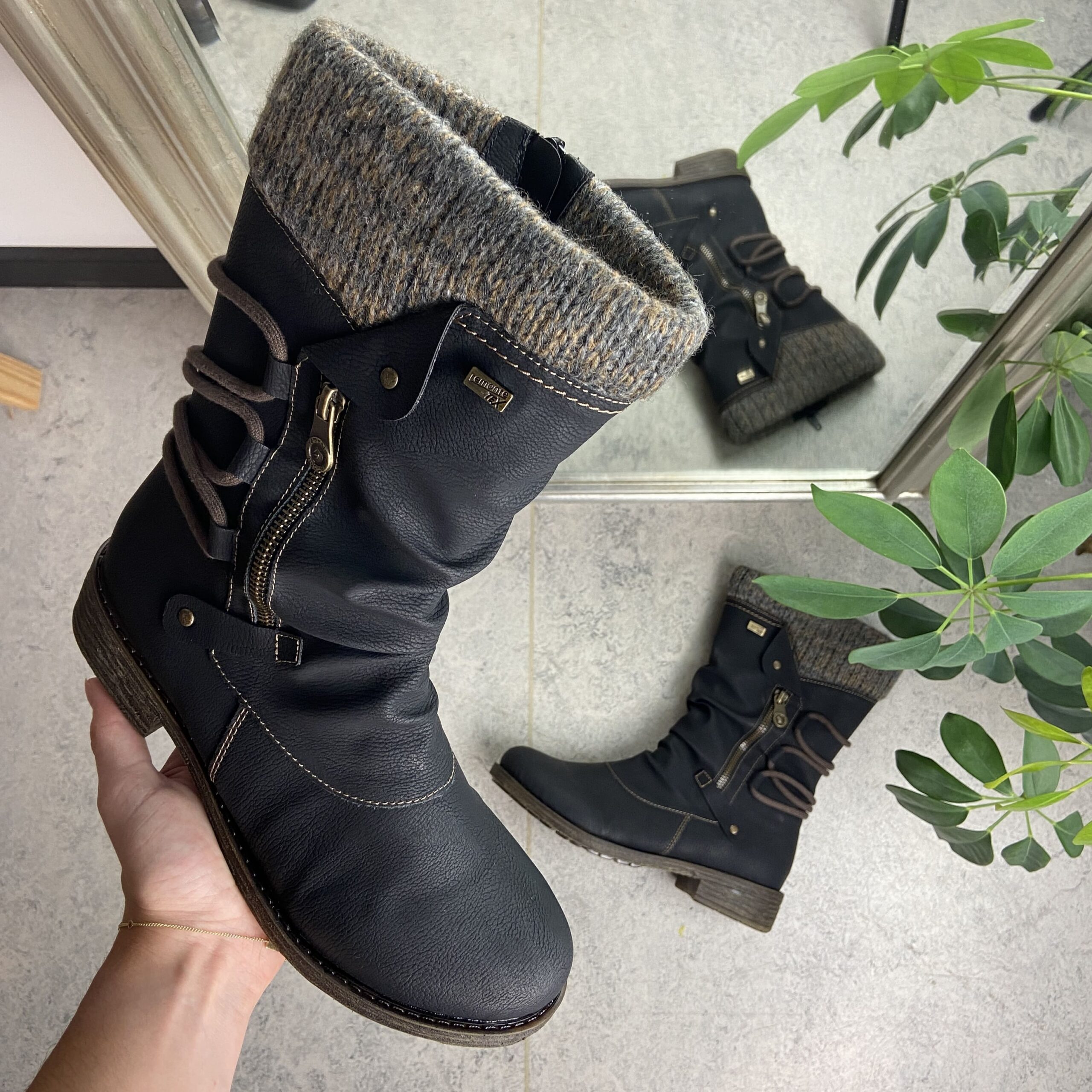 Sort vinterstøvel fra Remonte med mange smarte detaljer med glidelås på siden og snøring bak.
