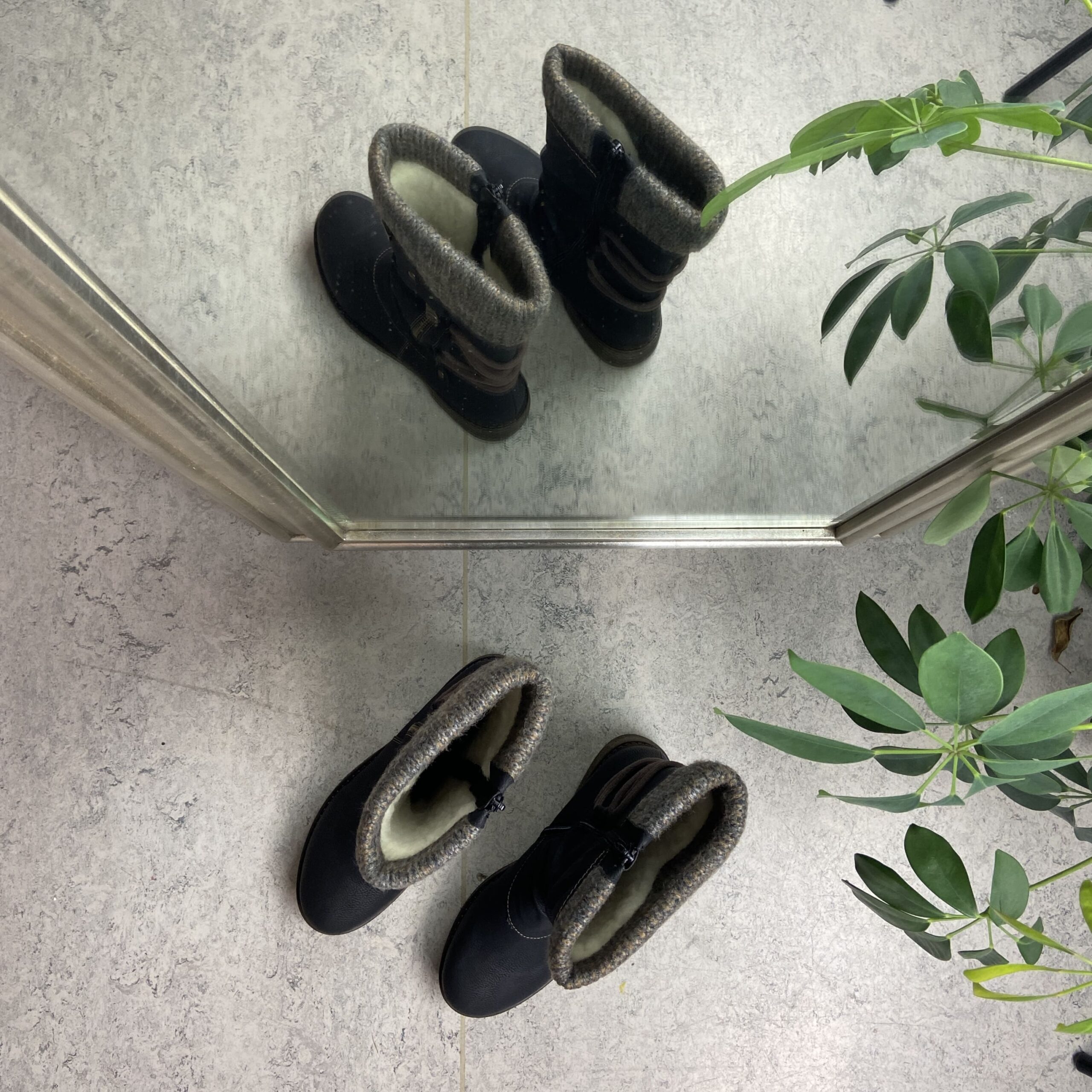 Støvelen har et 24 cm høyt skaft med strikket kant øverst på skaftet.