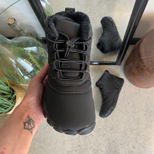 Lett og fleksibel barfotsko i sort med minimalistisk design og høy komfort.