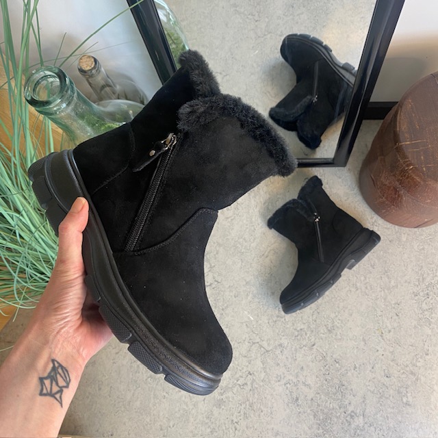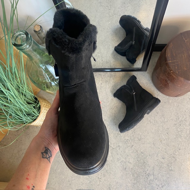 Praktiske detaljer som elastikk i sidene og stropper foran og bak gjør det enkelt og raskt å ta støvelen av og på.