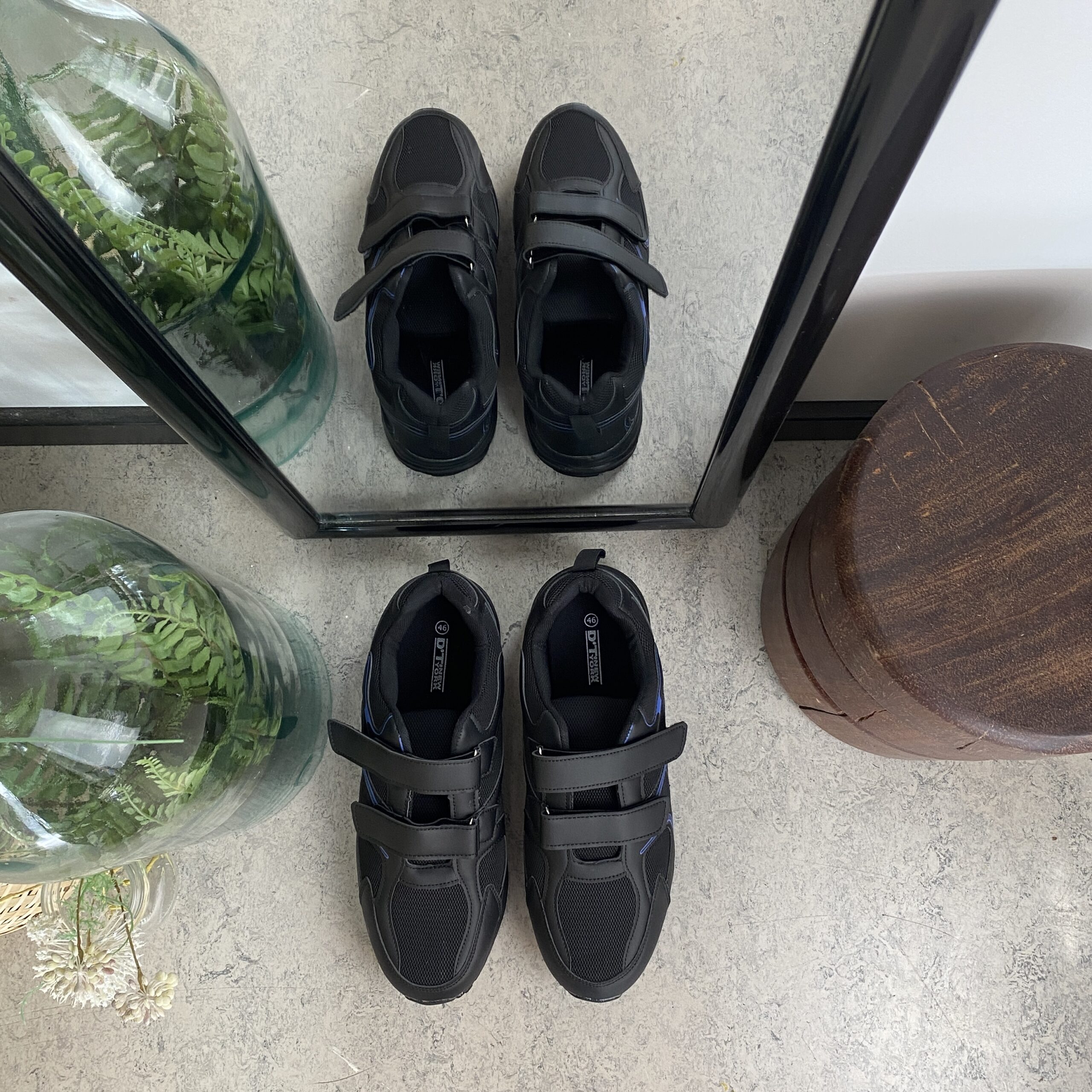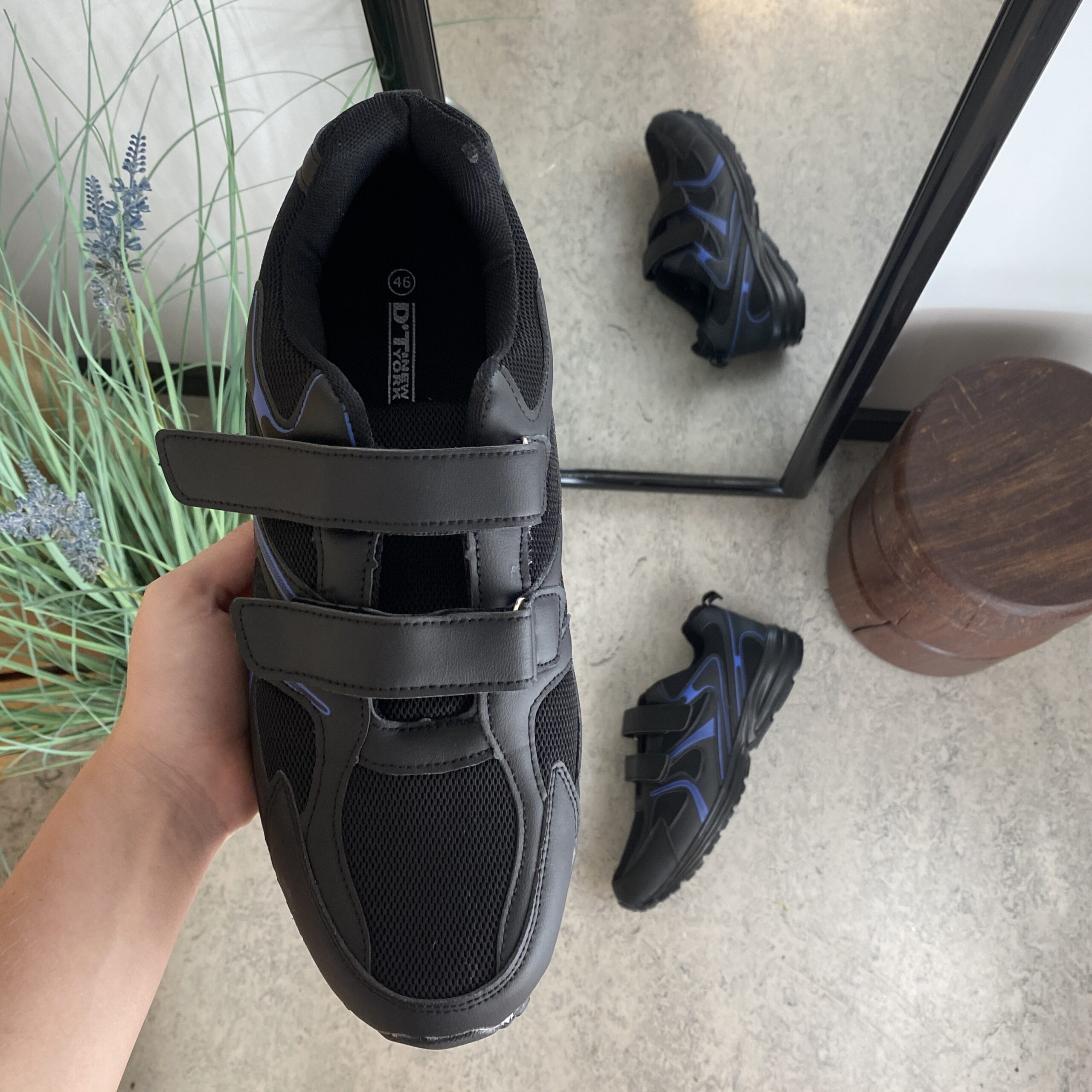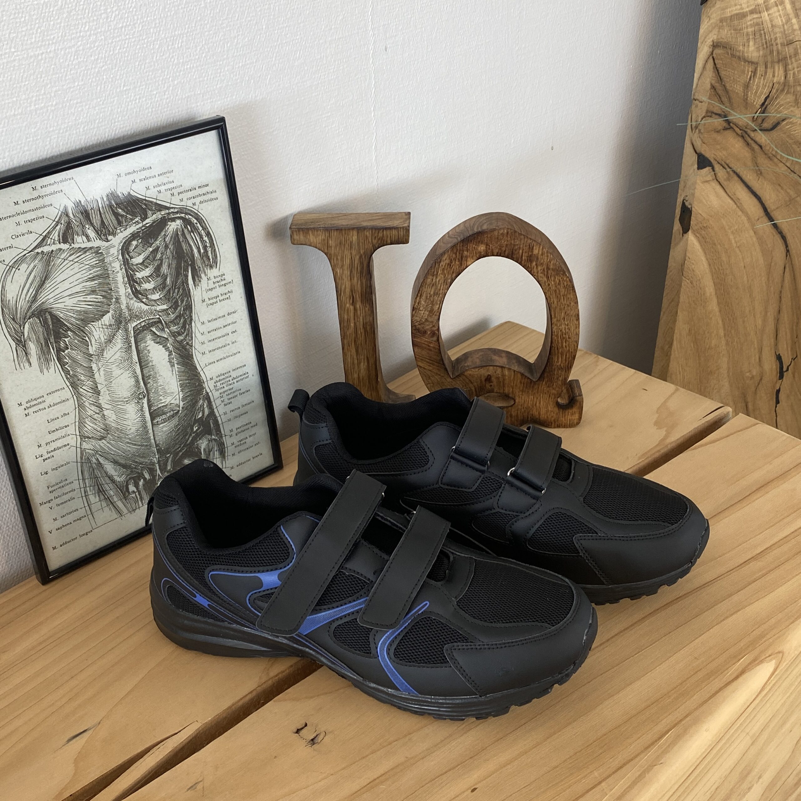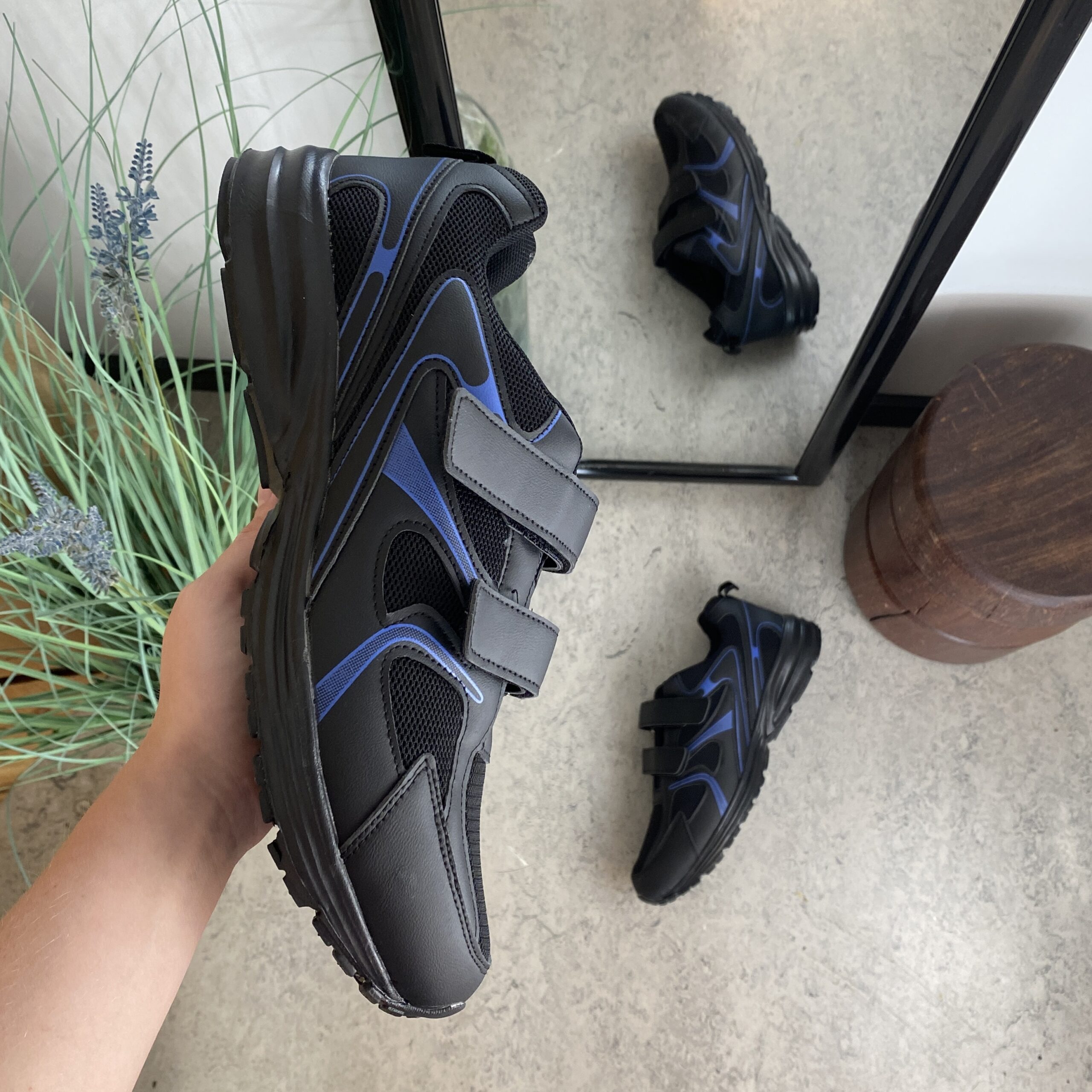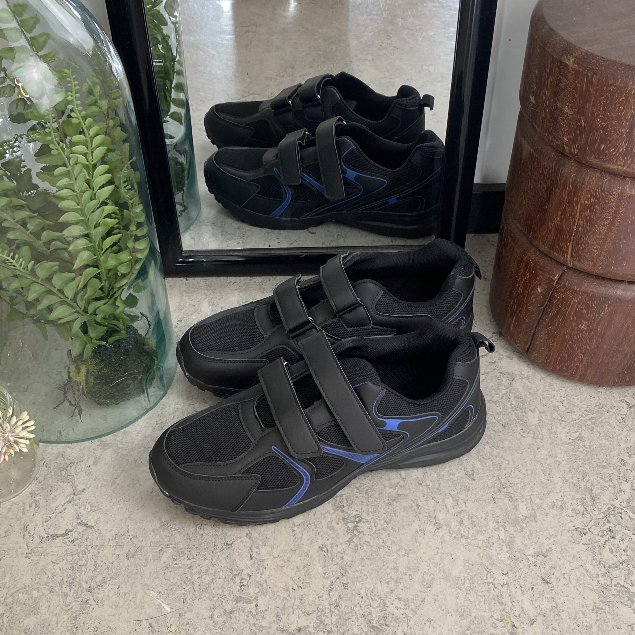 Svart lettvektssko med borrelåsstropper og støtdempende såle