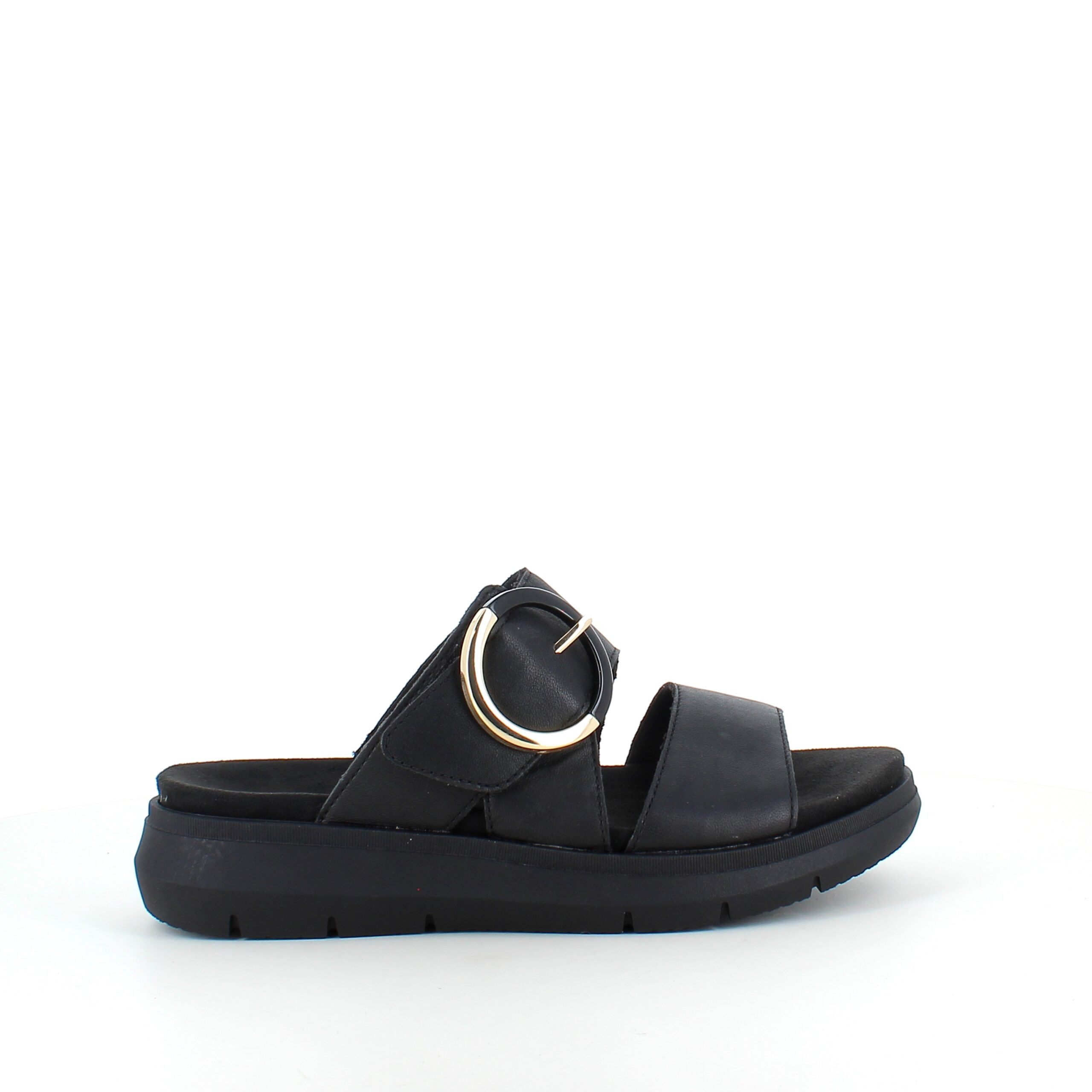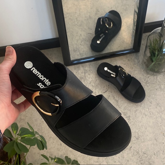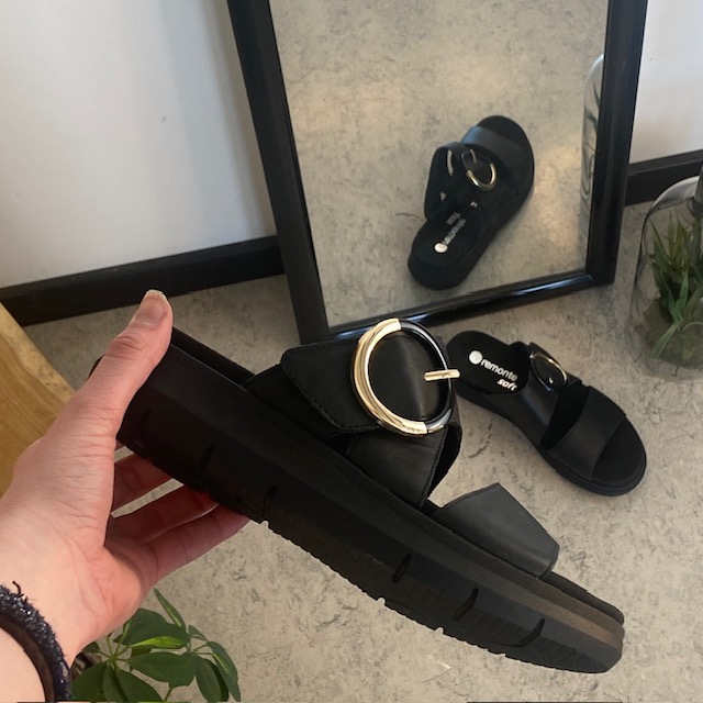 Svart Remonte slip-on skinnsandal med uttakbar såle
