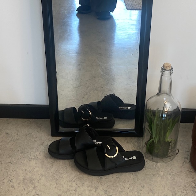 Den har en praktisk borrelåslukking som gjør den enkel å ta på, og en diskret hæl på 3,8 cm som gir en liten løft.