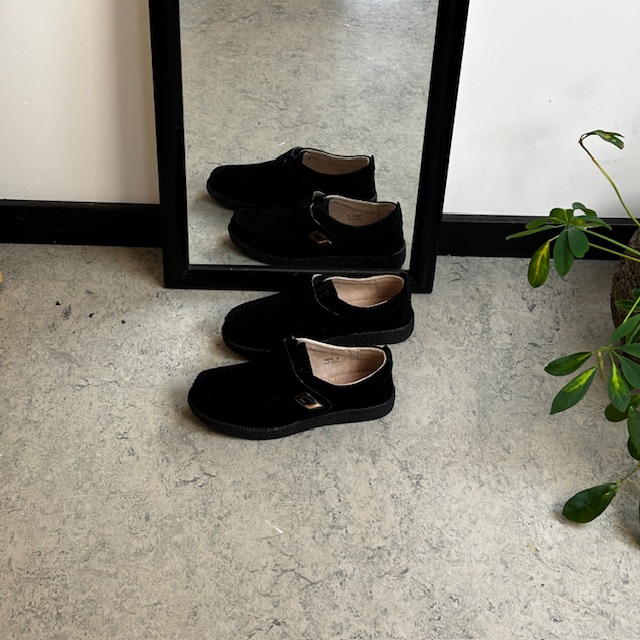 Svart semsket sko med borrelåslukning og gummisåle