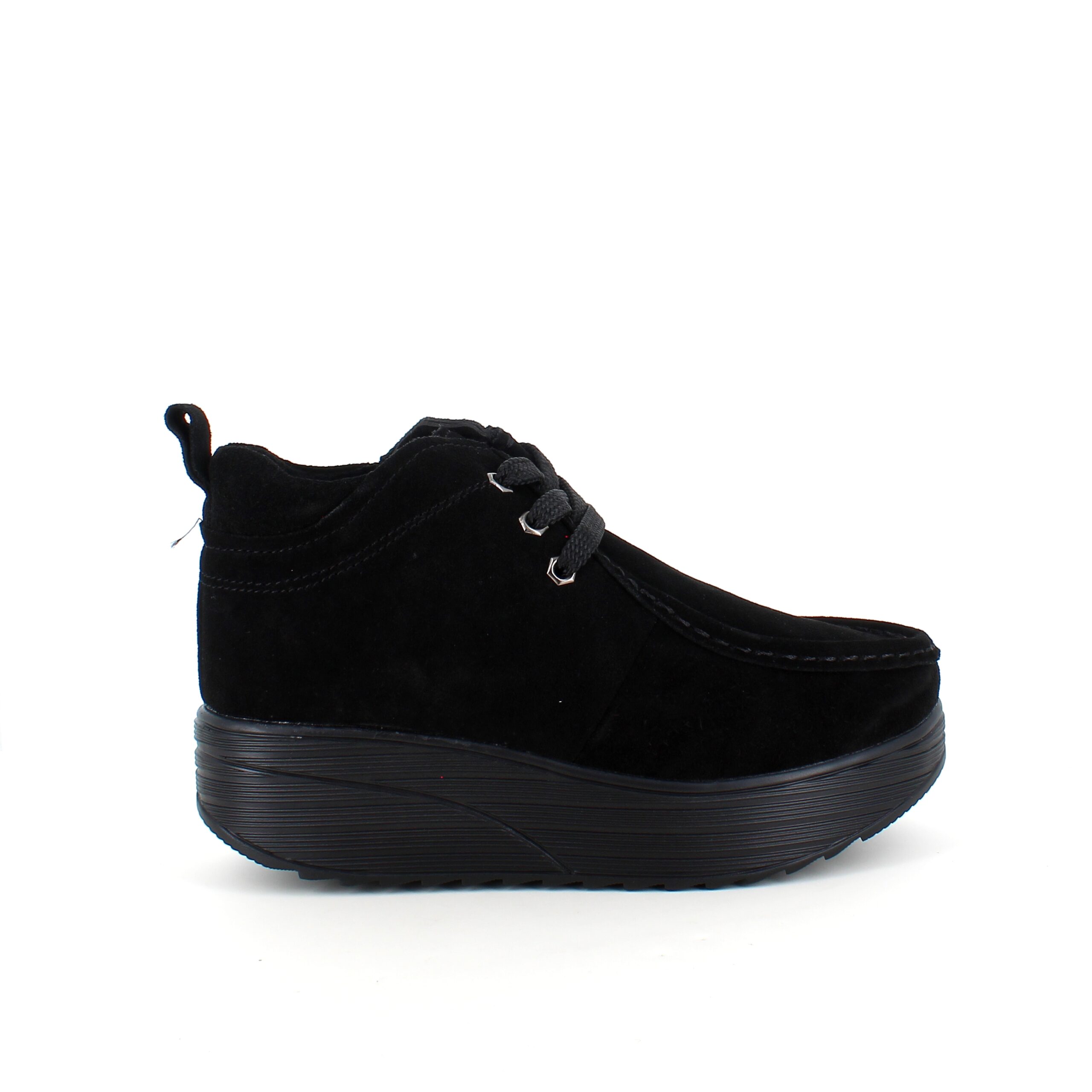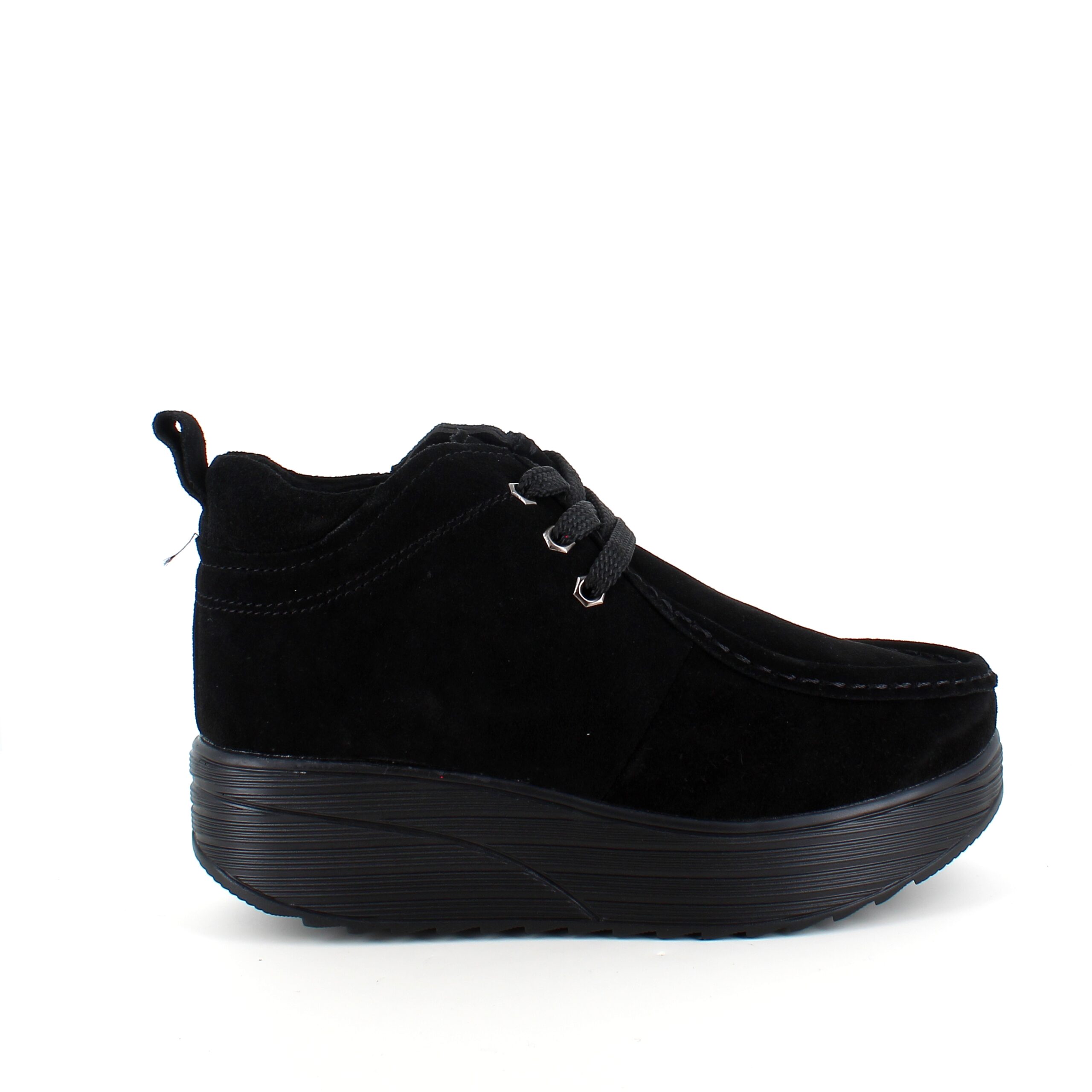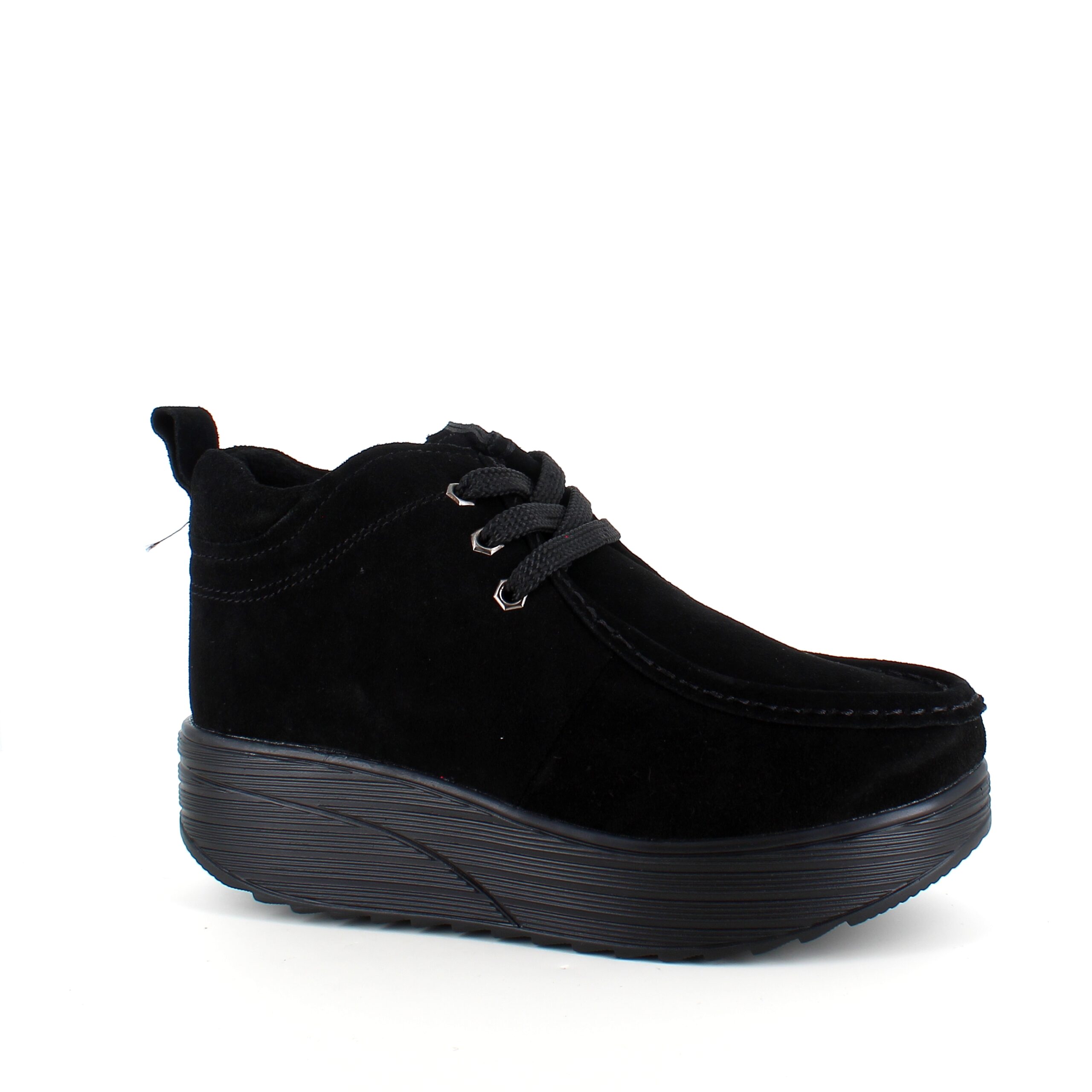 Skoene har snørelukking og en synlig søm på fronten, og de måler 7 cm fra sålen til åpningen ved hælen.