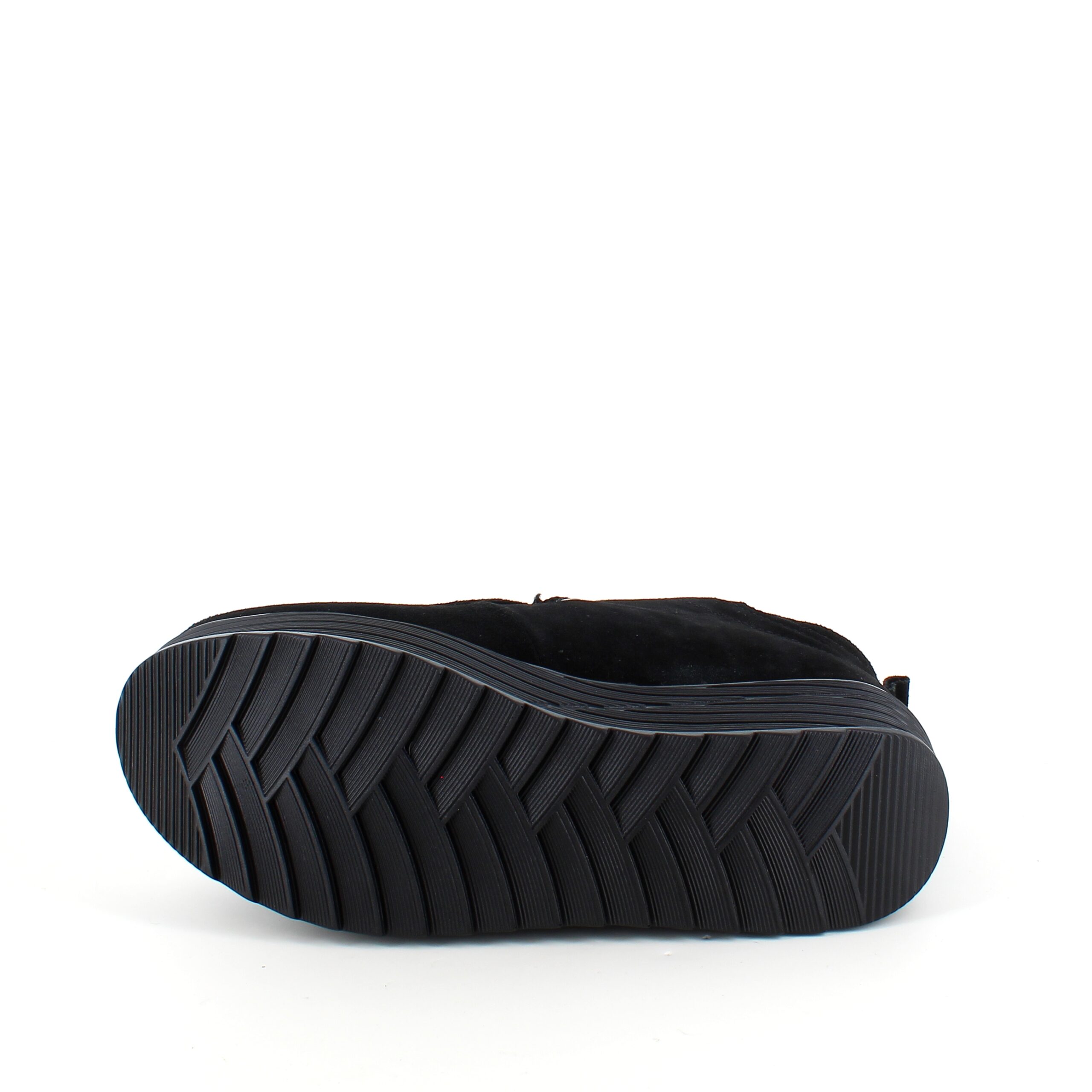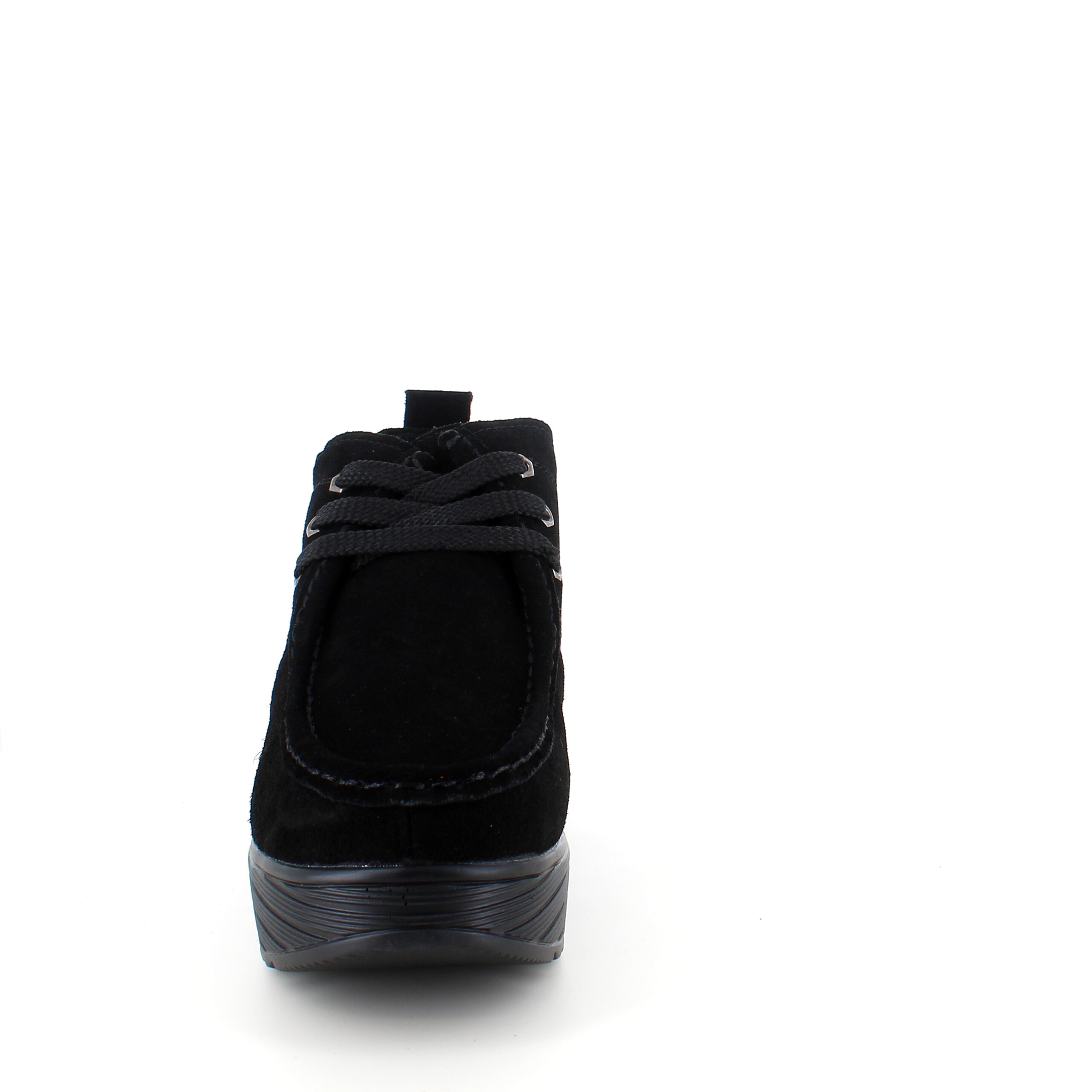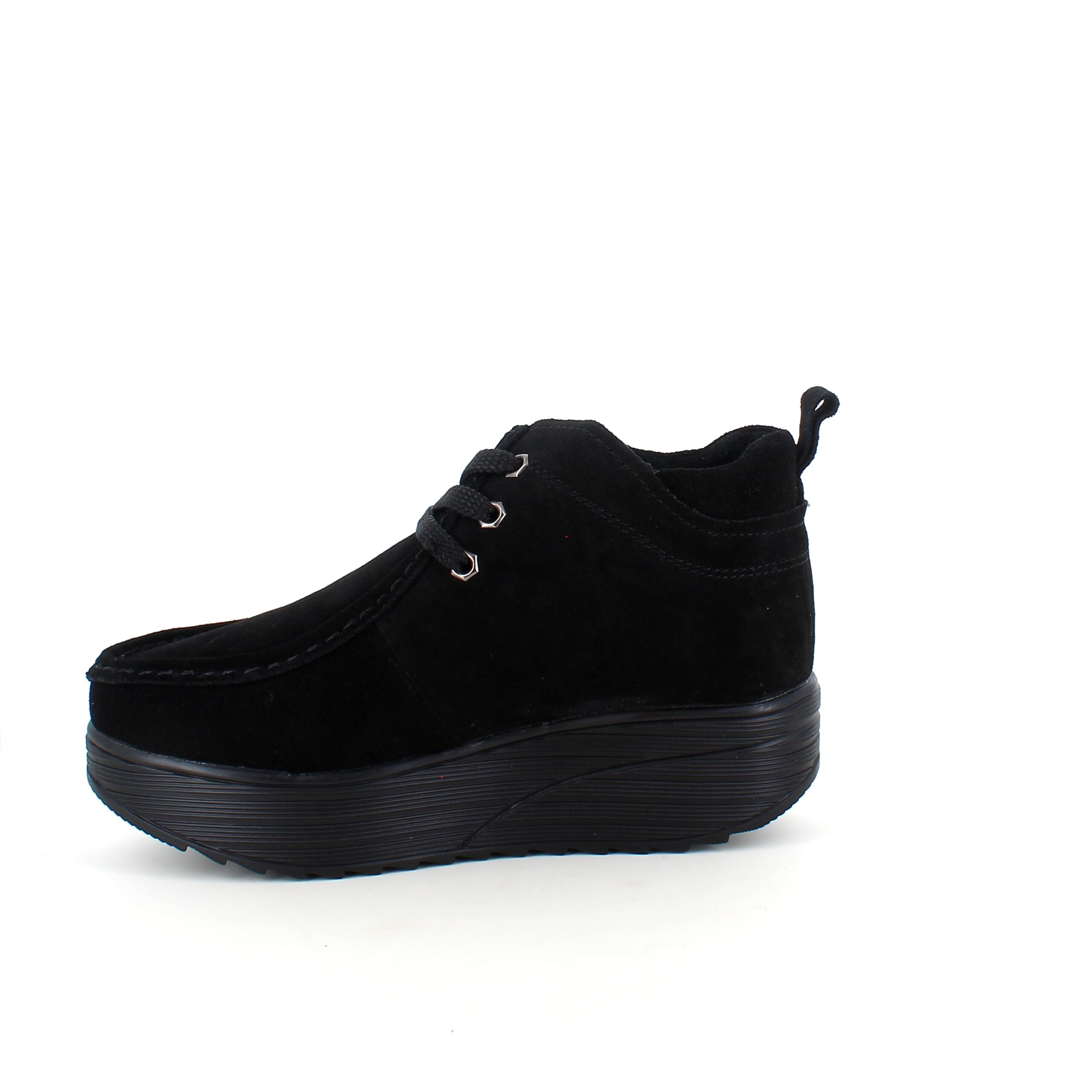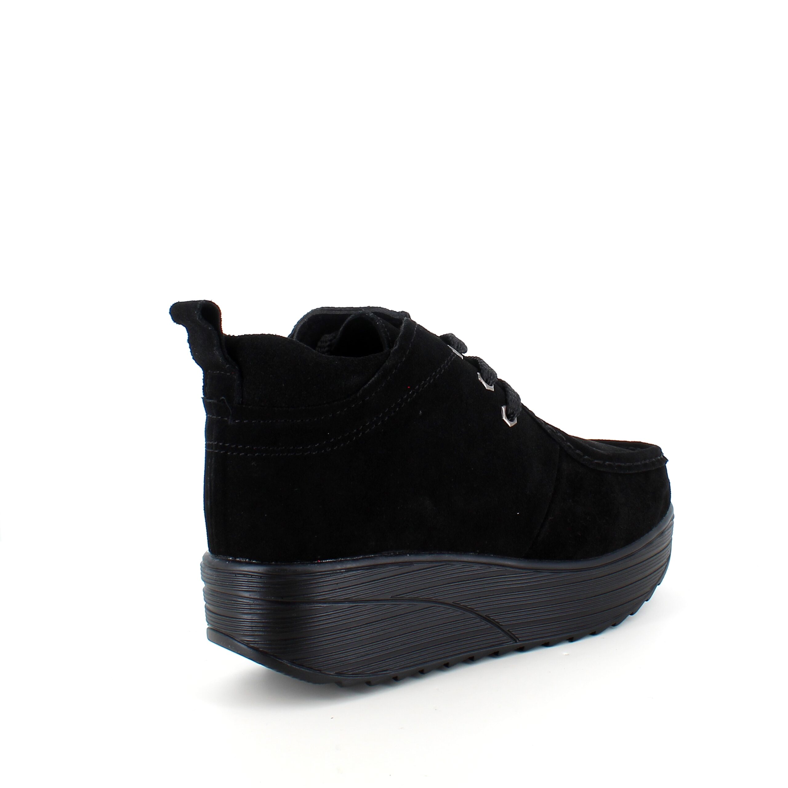 Skoene har snørelukking og en synlig søm på fronten, og de måler 7 cm fra sålen til åpningen ved hælen.