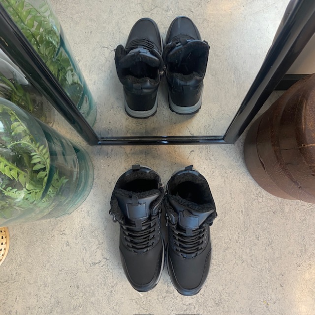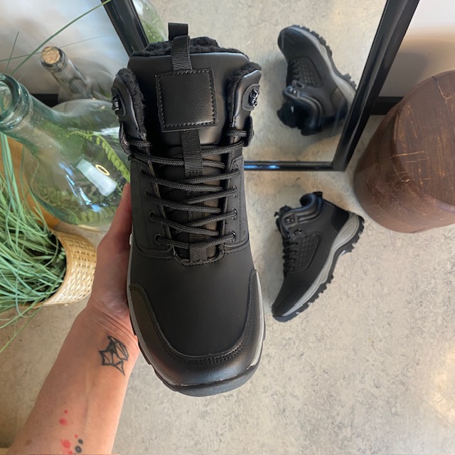Svart vannavstøtende herreankelstøvel med varmt fôr, robust TPR-såle og glidelås i siden