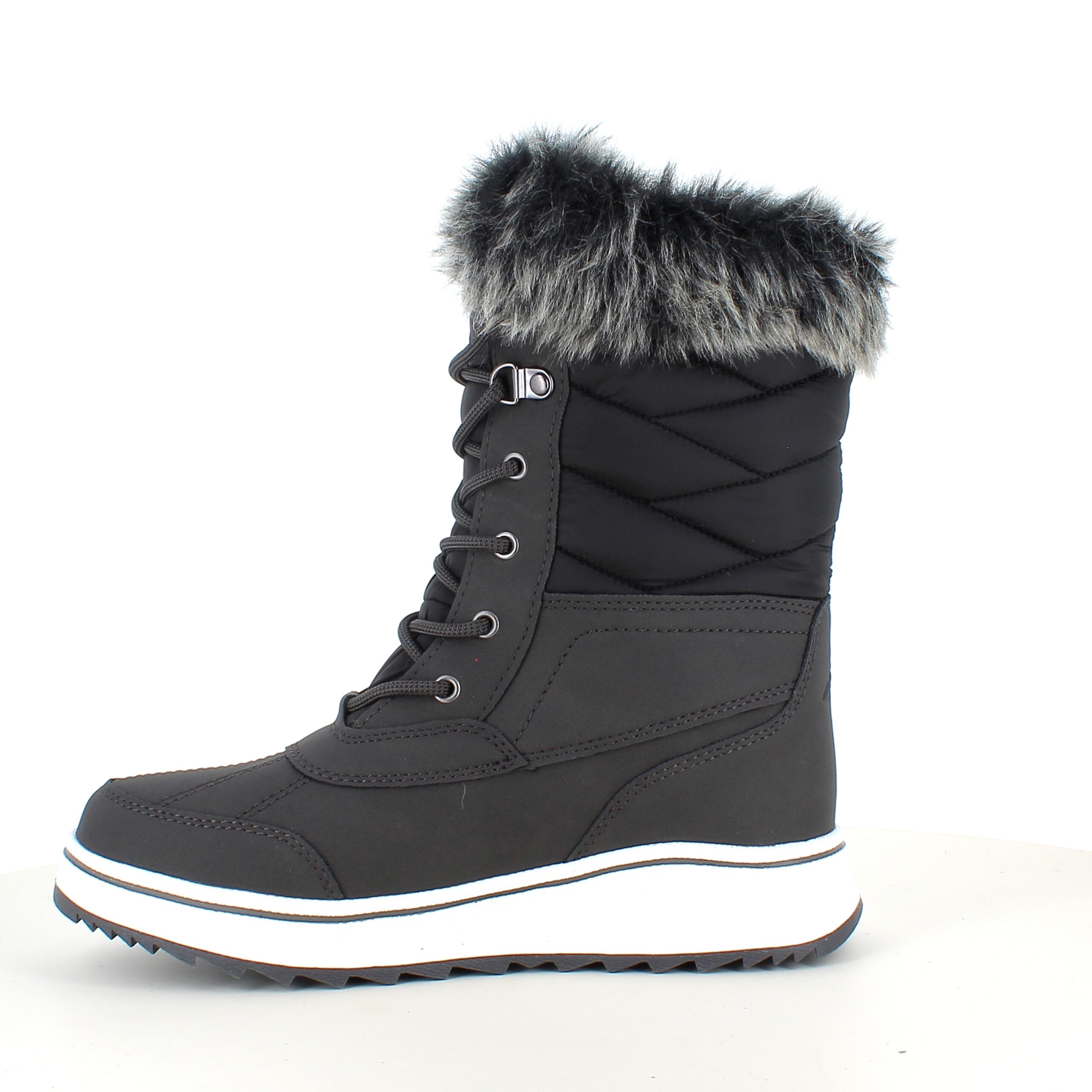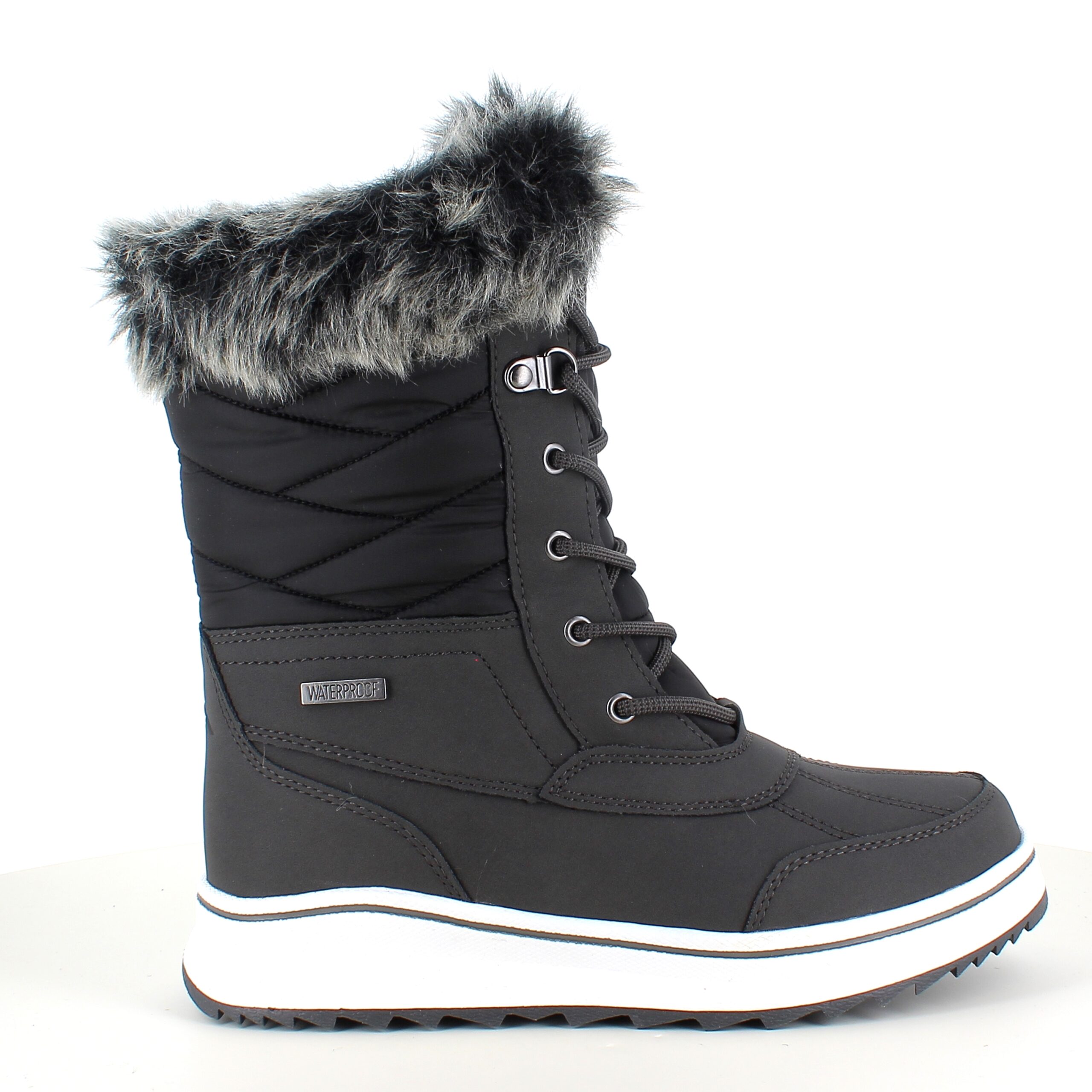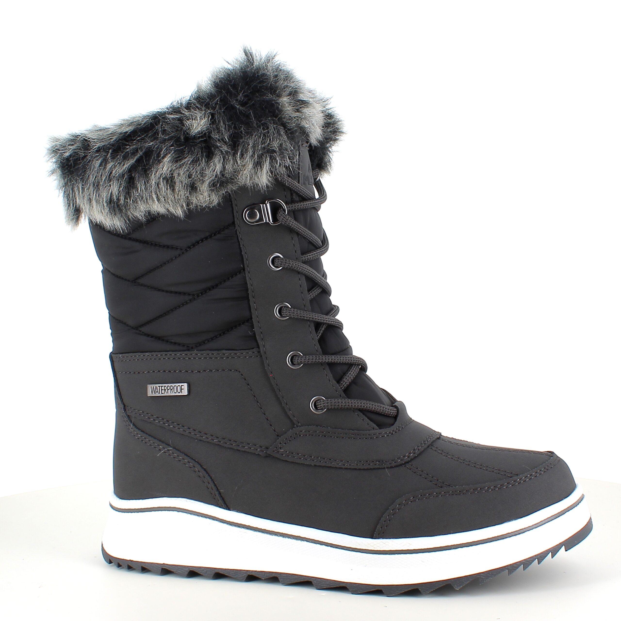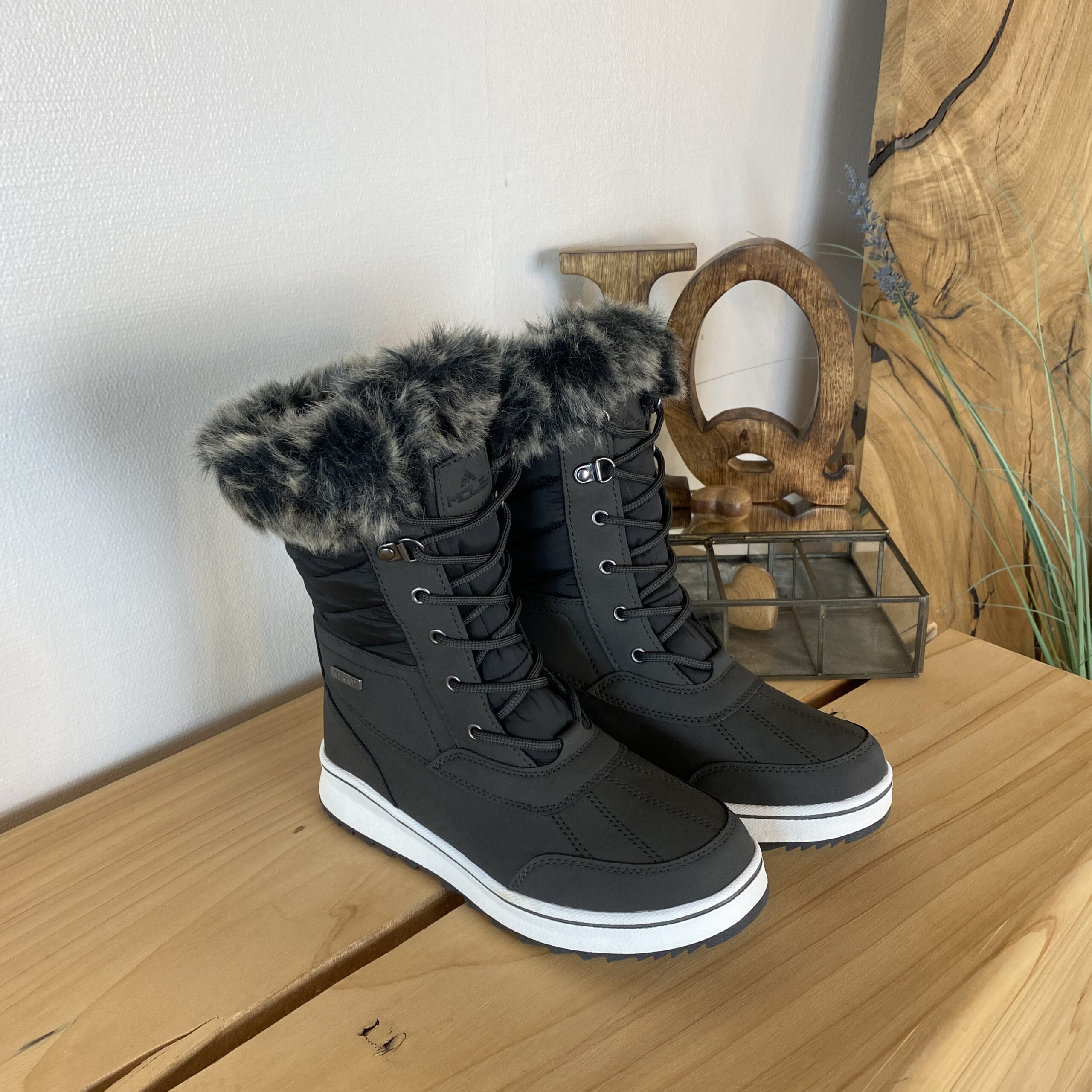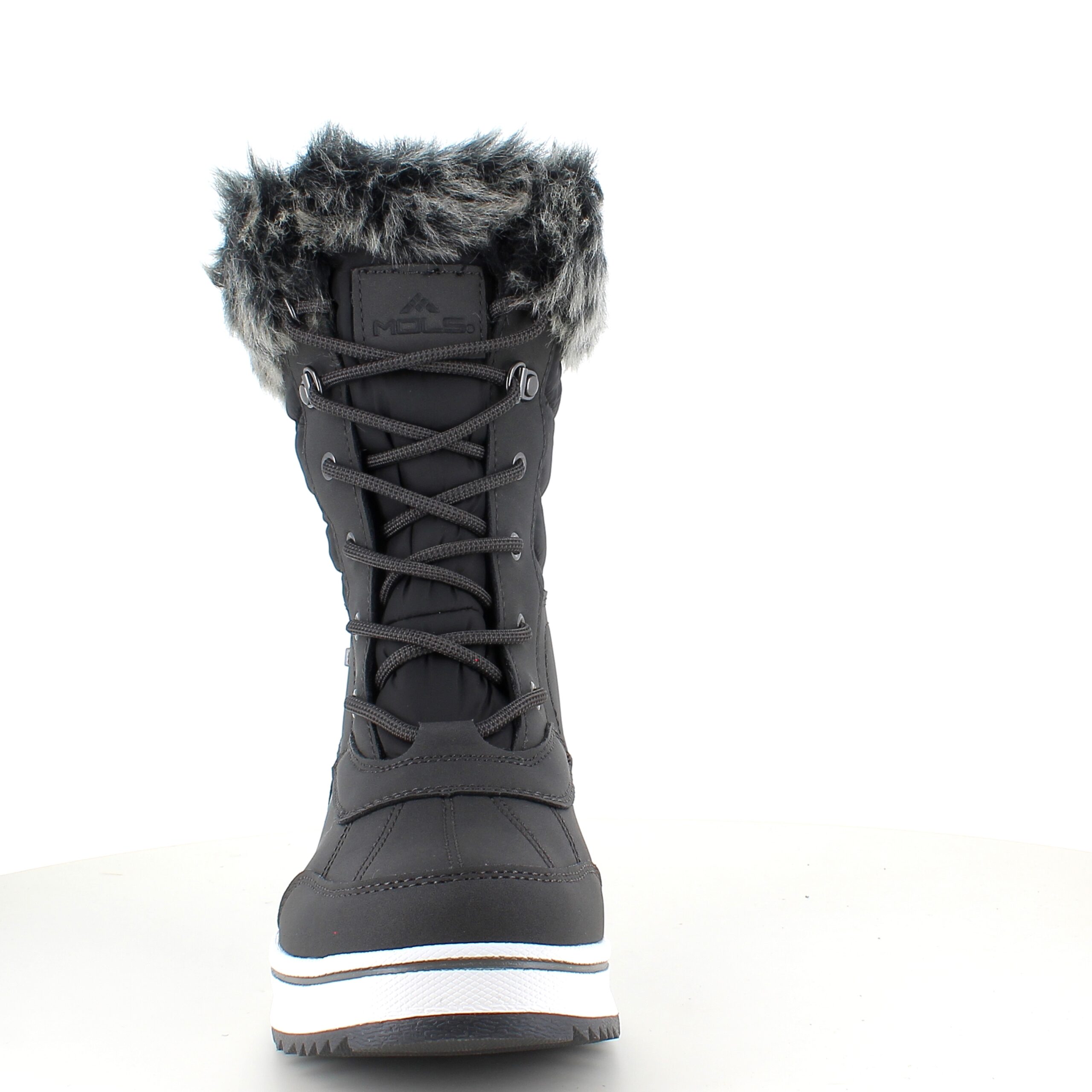Sort vinterstøvel fra Mols, designet med vanntetting og pelskant, tilbyr både stil og komfort.