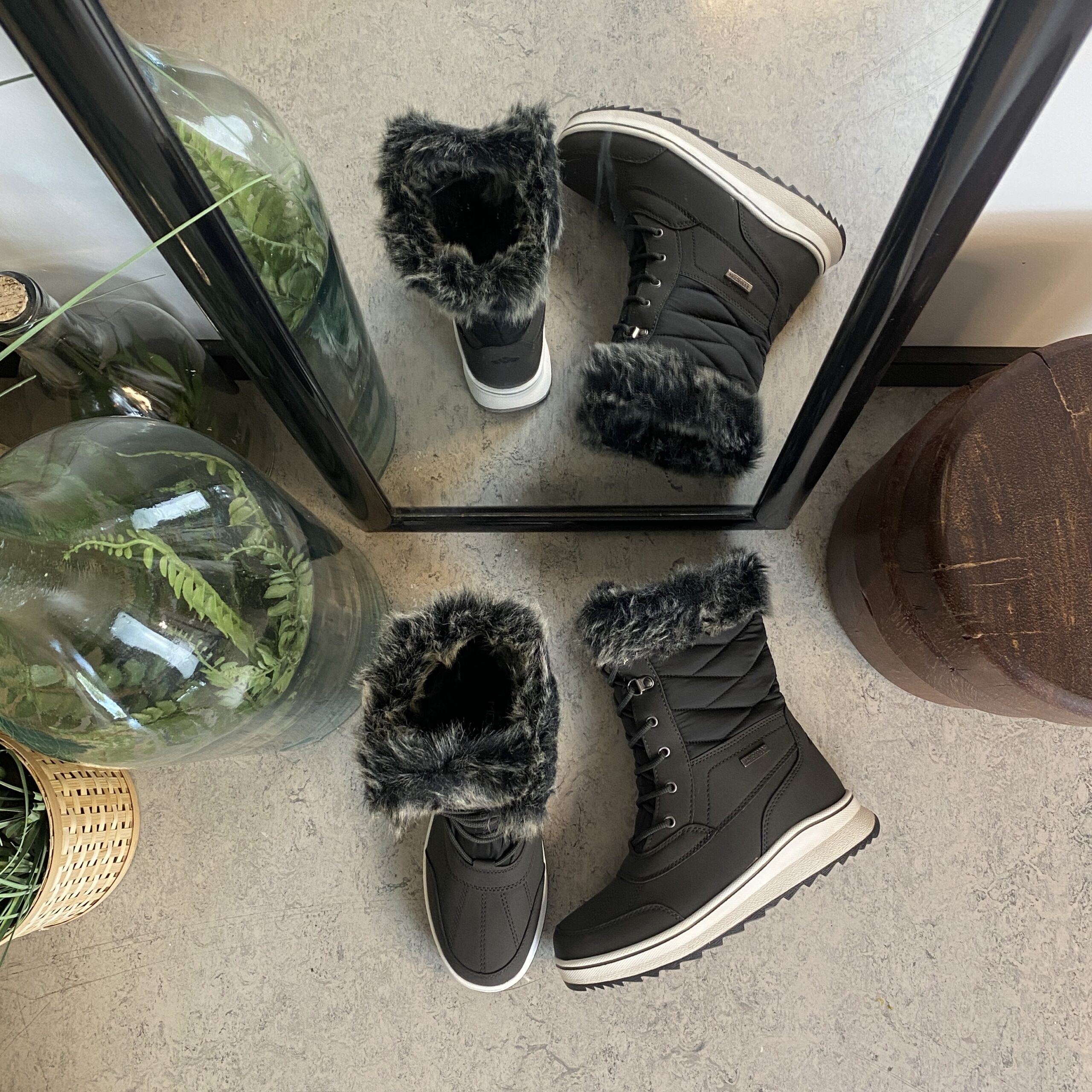 Svart vanntett vinterstøvel fra Mols med pelskant