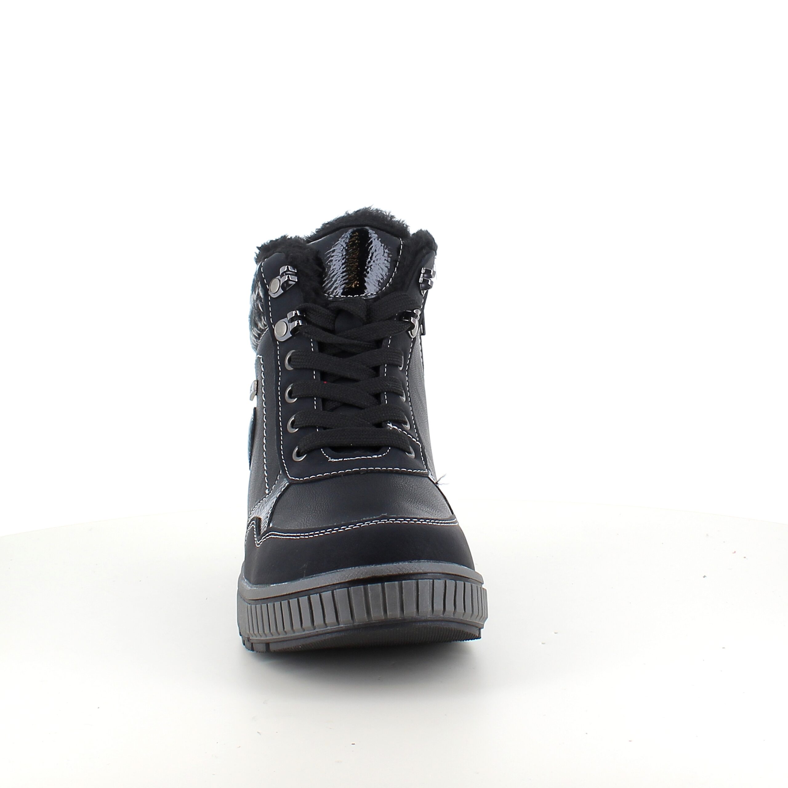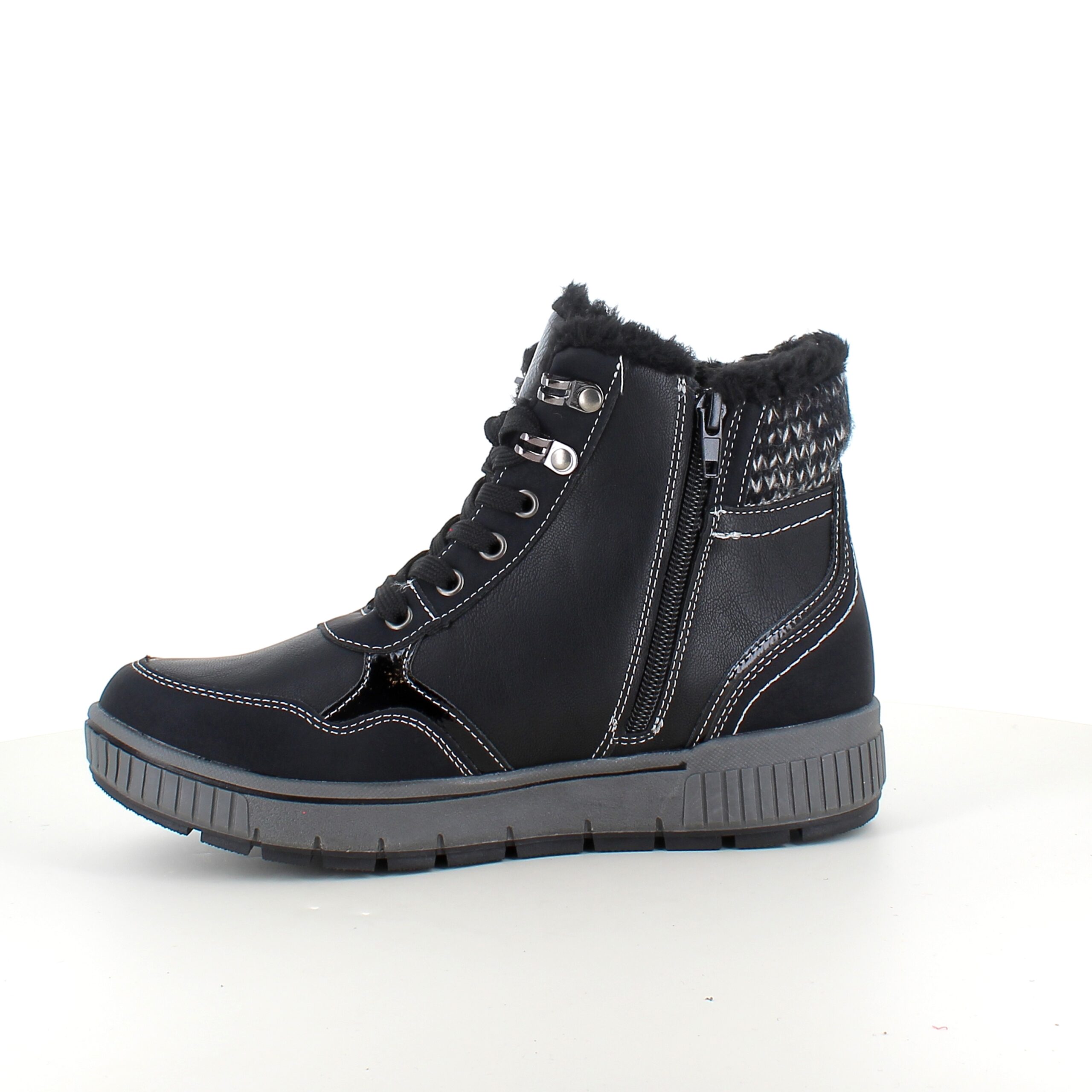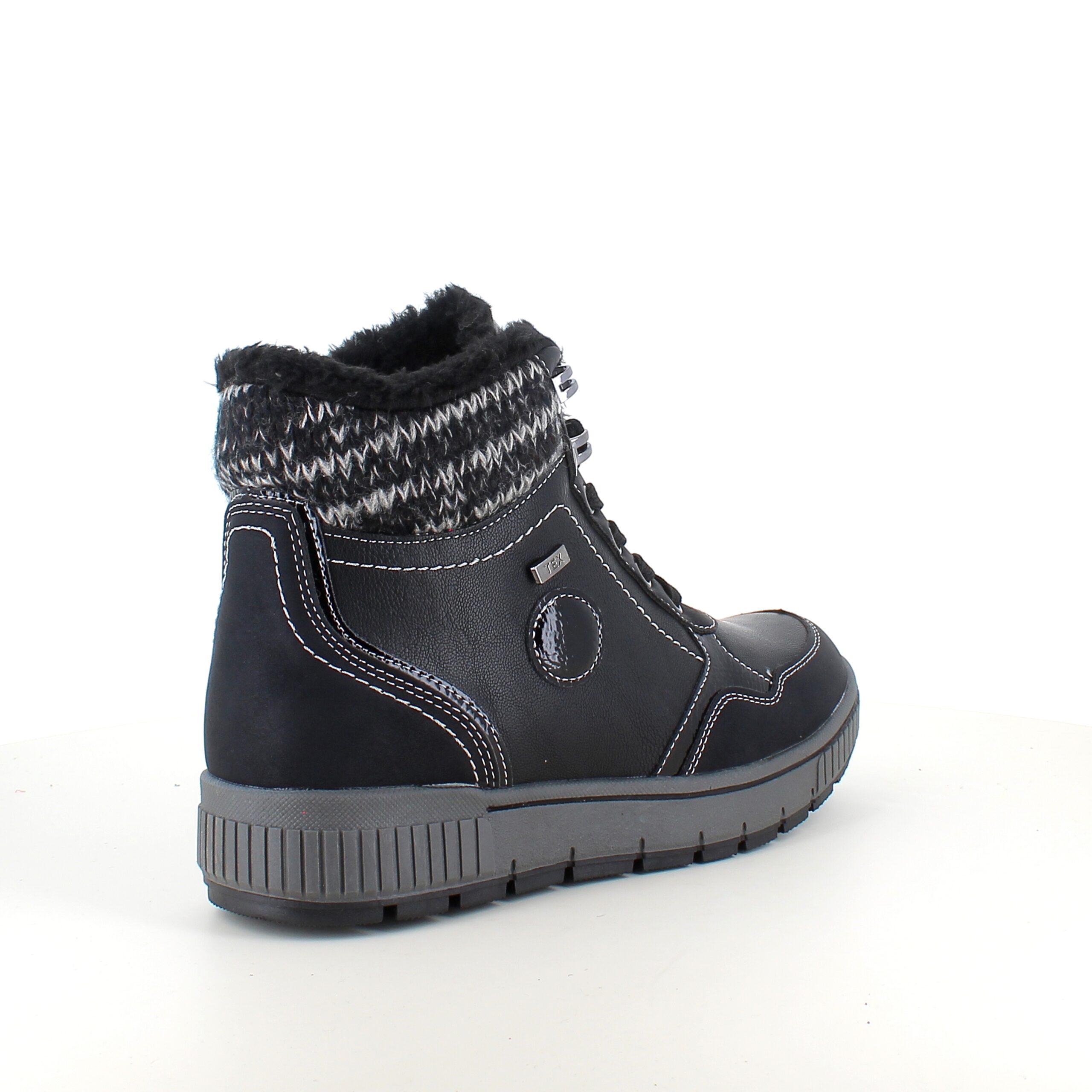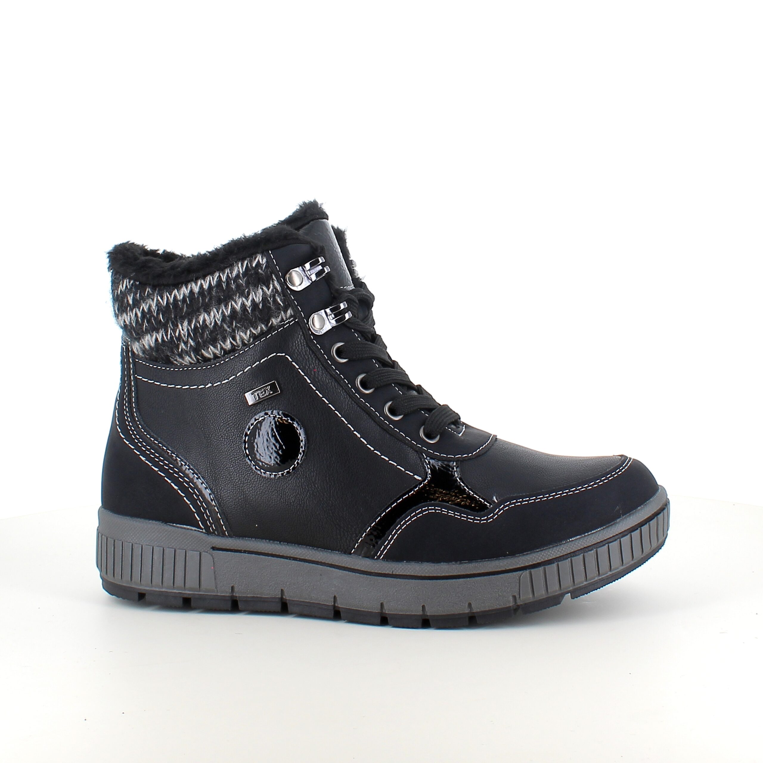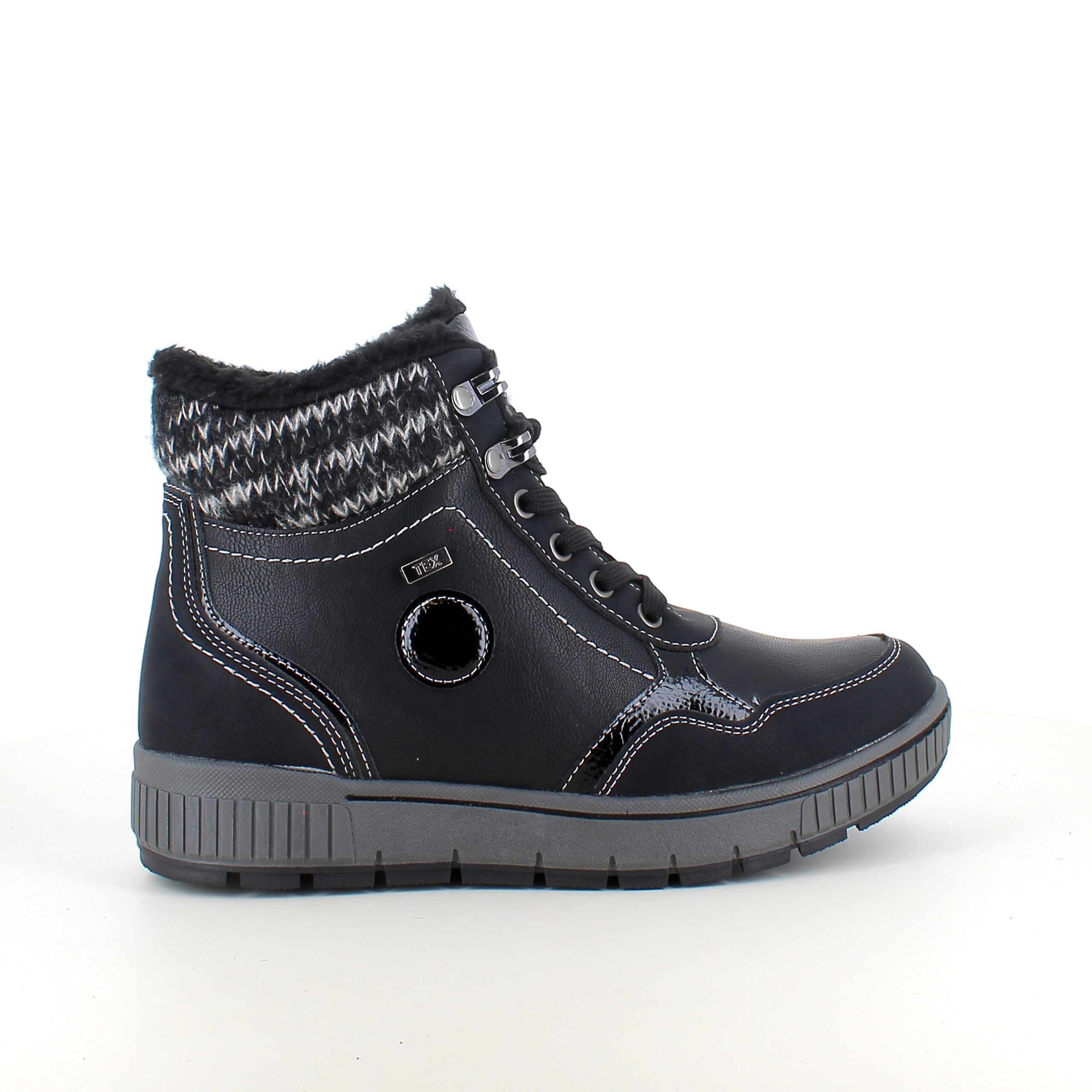 Vinterstøvel i svart, med strikket detalj på skaftet.