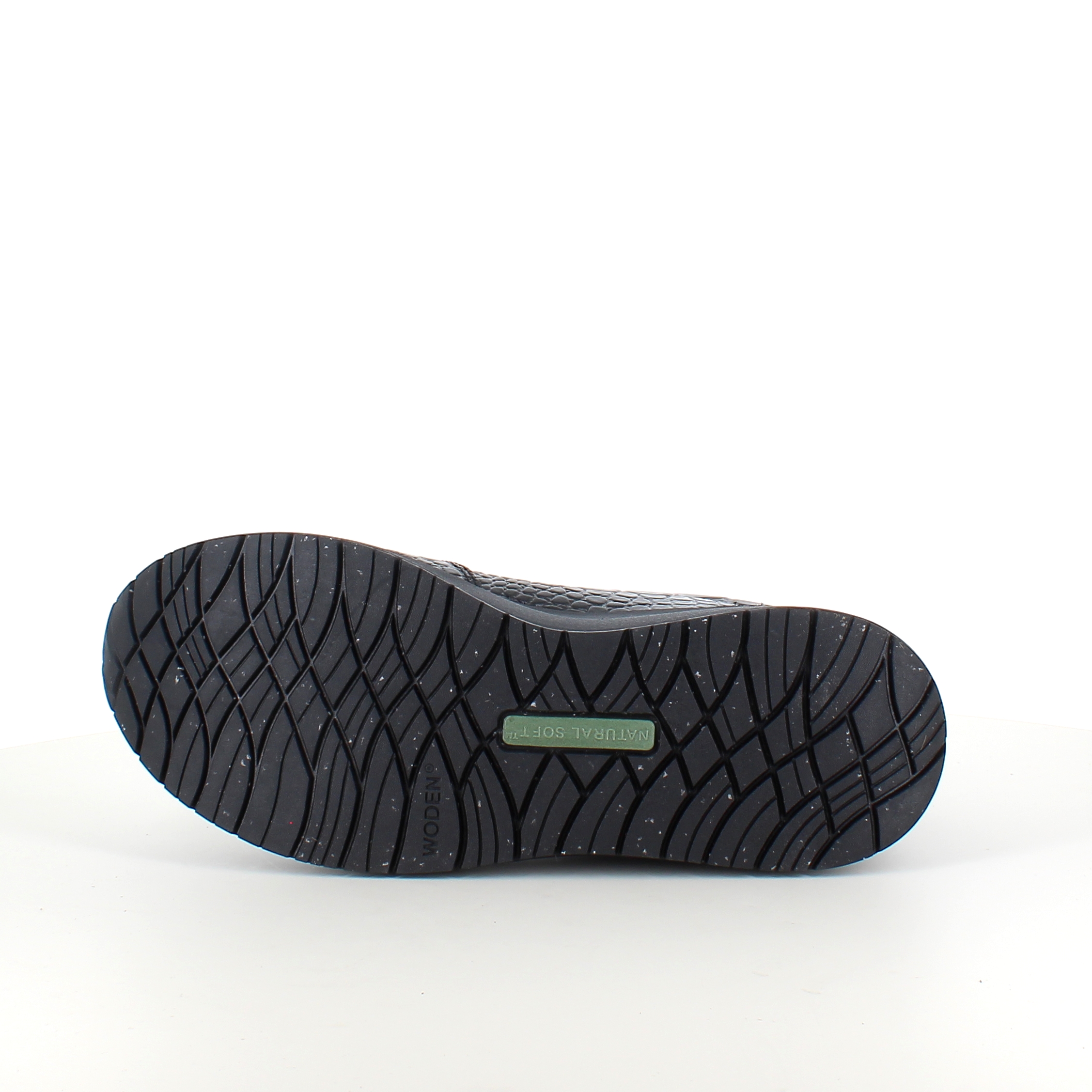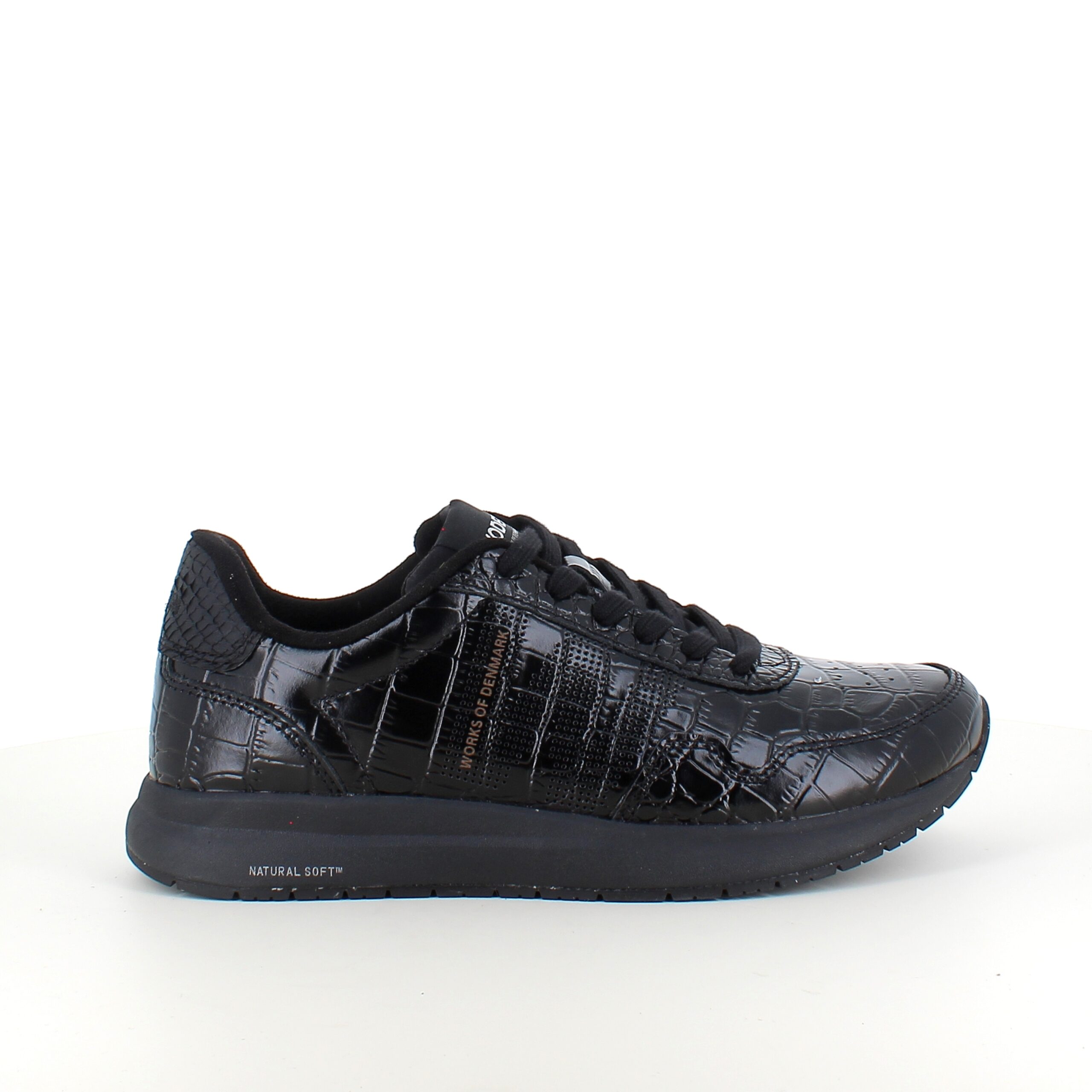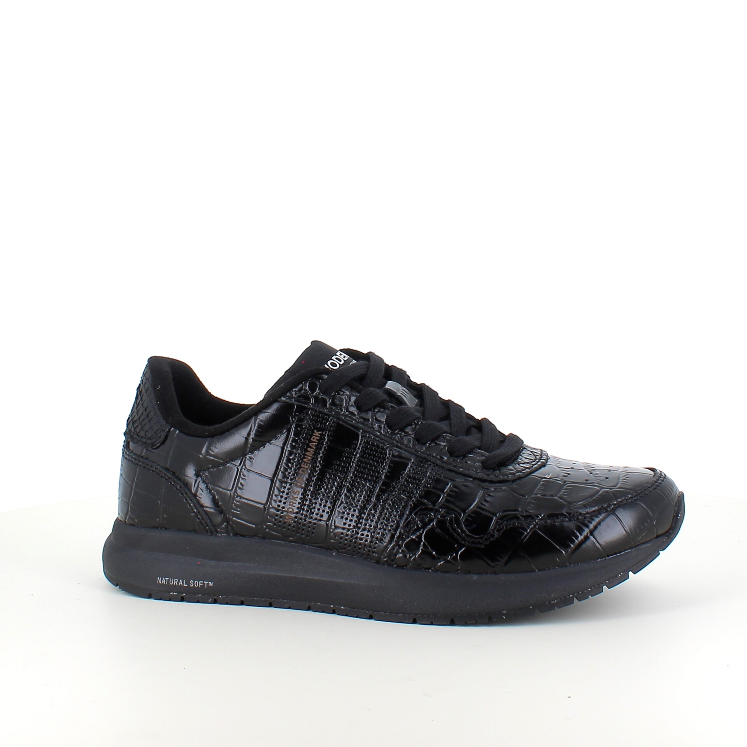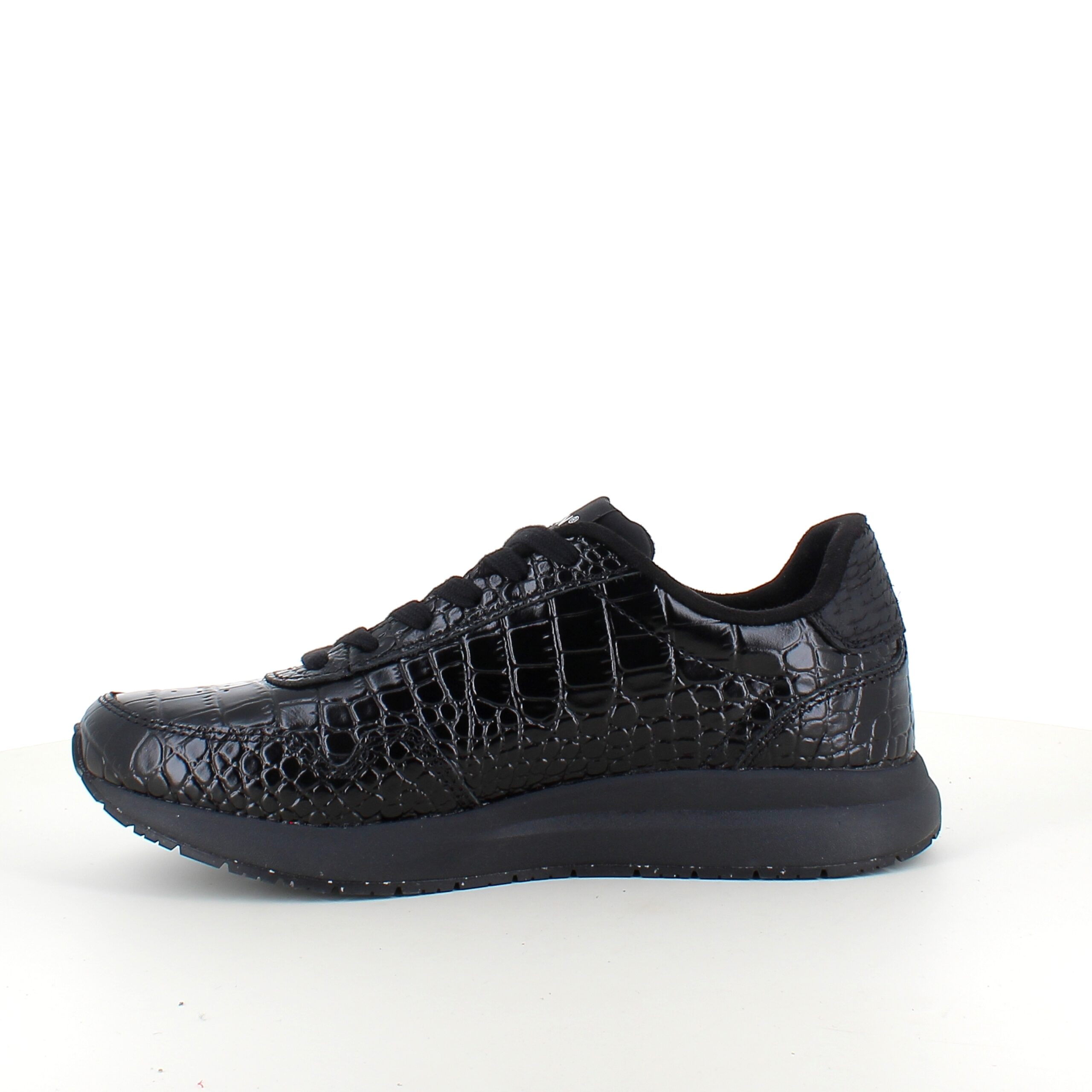 Nora Natural Soft Croco har en slank, sort silhuett med krokodillepreg i LWG-sertifisert lær, som gir skoen et subtilt spill i tekstur og dybde.