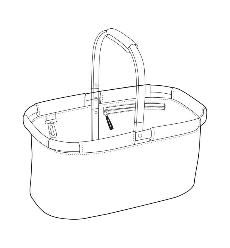 Veske som kan foldes sammen. Finnes i rød og sort.