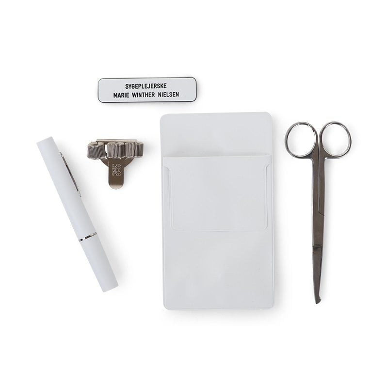 Pennholderen har plass til tre ting. Den holder på pennelykt, kulepenner og kan festes i lommebeskytteren. Du kan kjøpe pennholderen i andre farger hvis du ønsker litt mer farge på kittelen din.