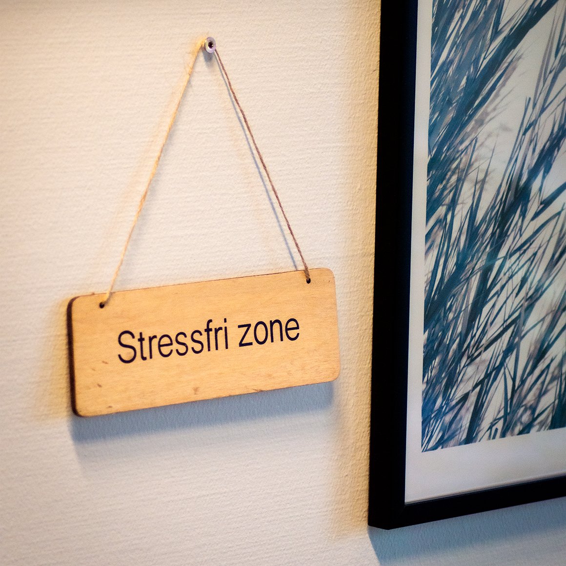 “Stressfri Sone” budskapet er en påminnelse om å la bekymringer og stress bli utenfor, og trå inn i et rom hvor du kan slappe av og lade opp. Enten du plasserer det hjemme, på kontoret eller et annet sted hvor du trenger litt ekstra ro, vil dette skiltet ha en positiv innvirkning på din daglige tilværelse.