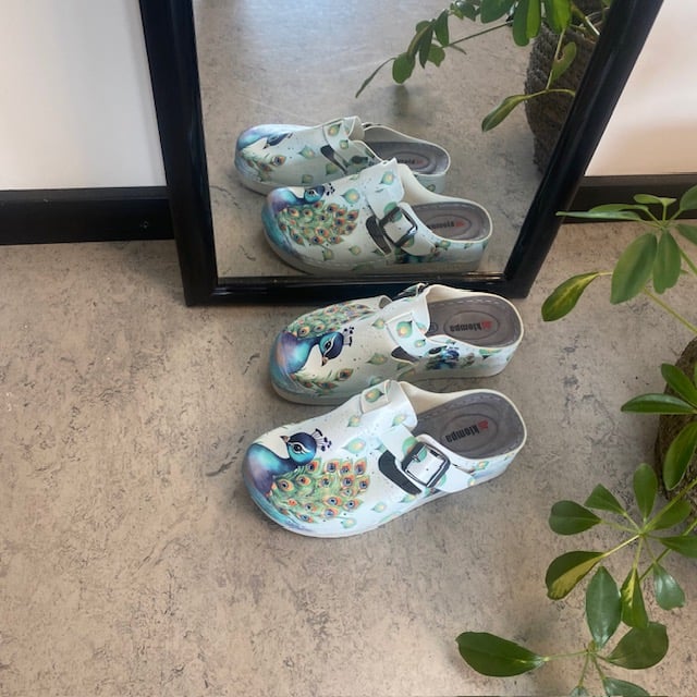 Treskoen kommer i størrelsene 36-41 og finnes i flere forskjellige prints.