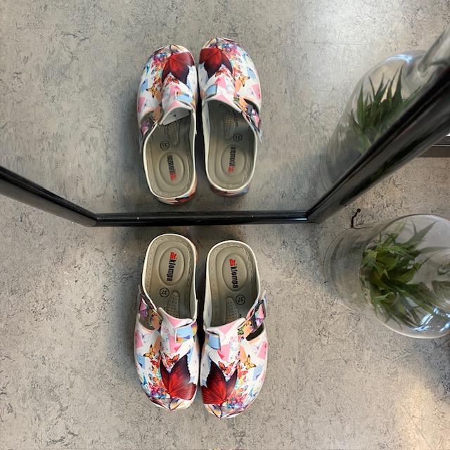 De er tilgjengelige i størrelsene 36-41 og i forskjellige print.