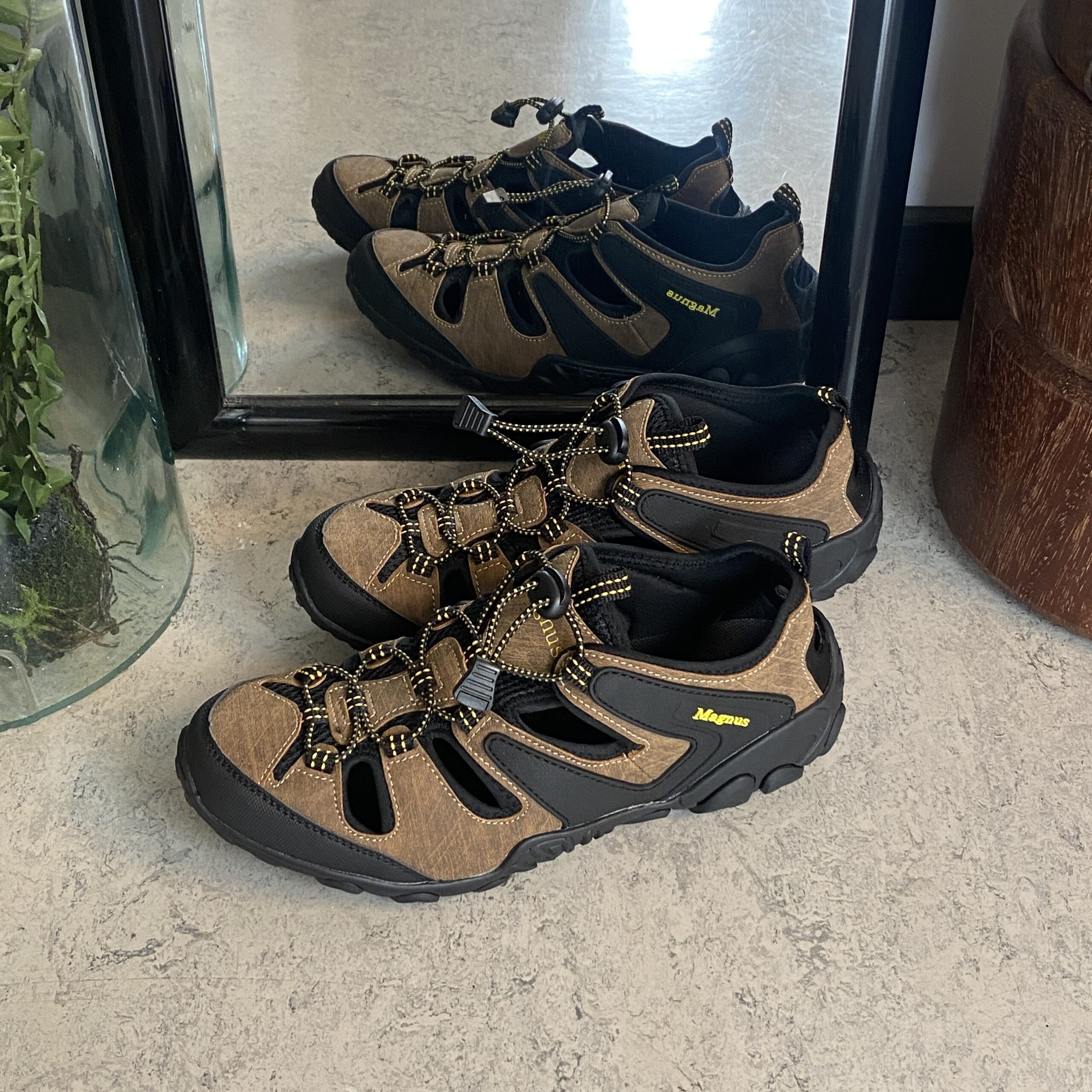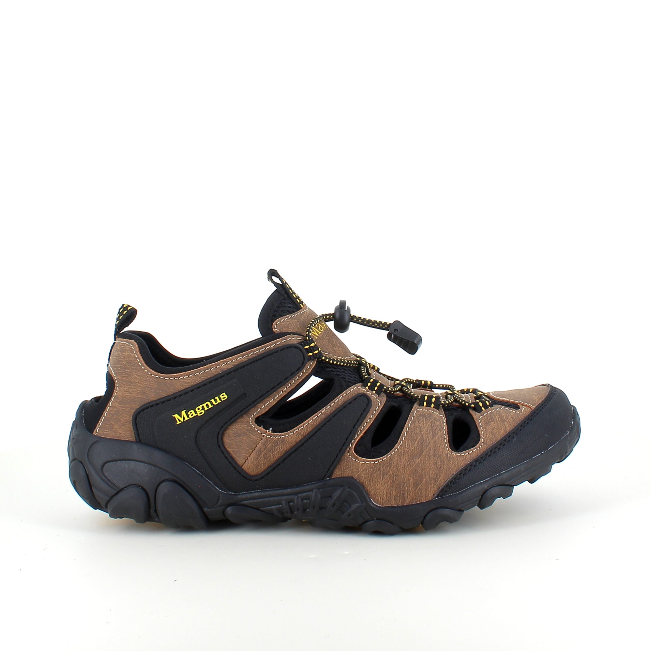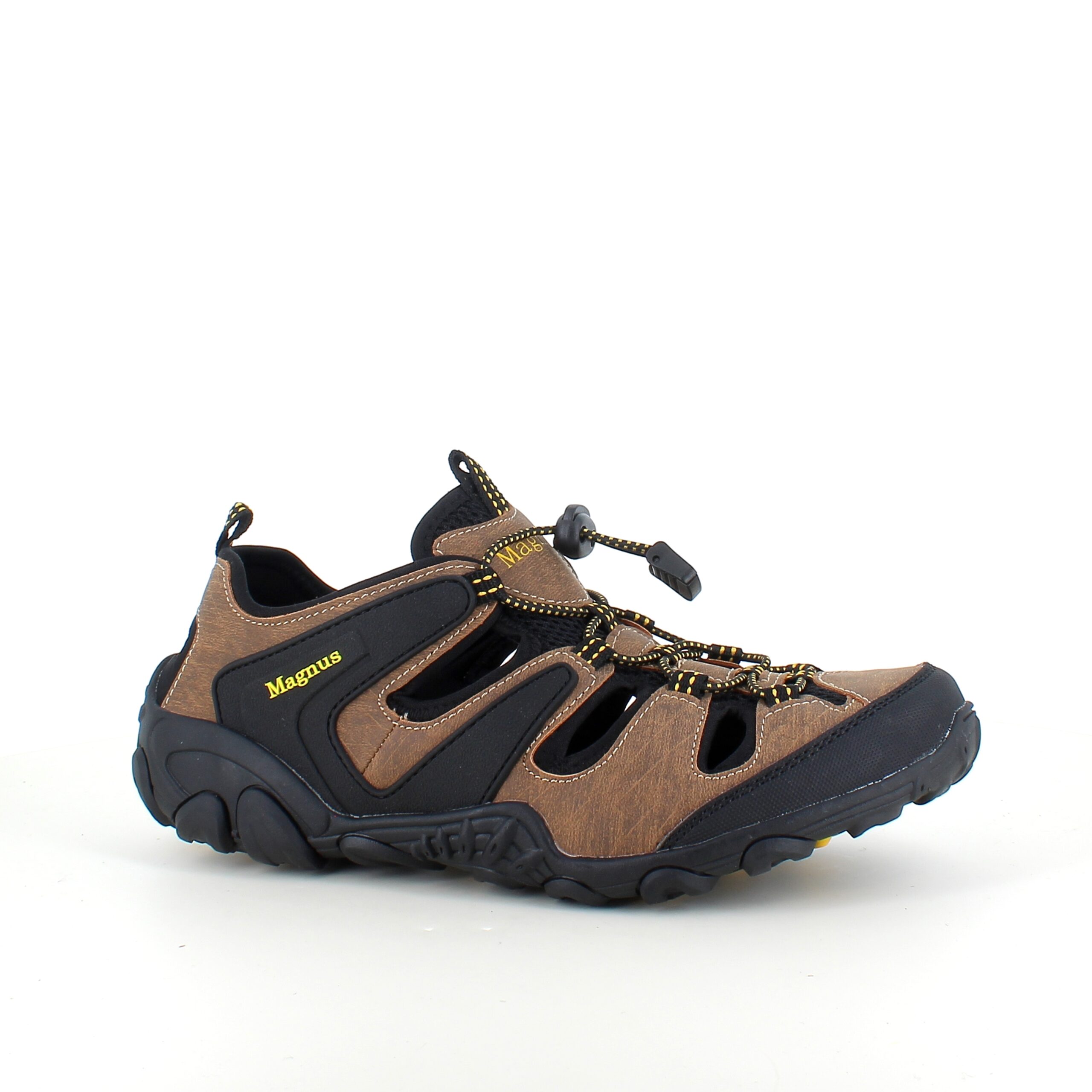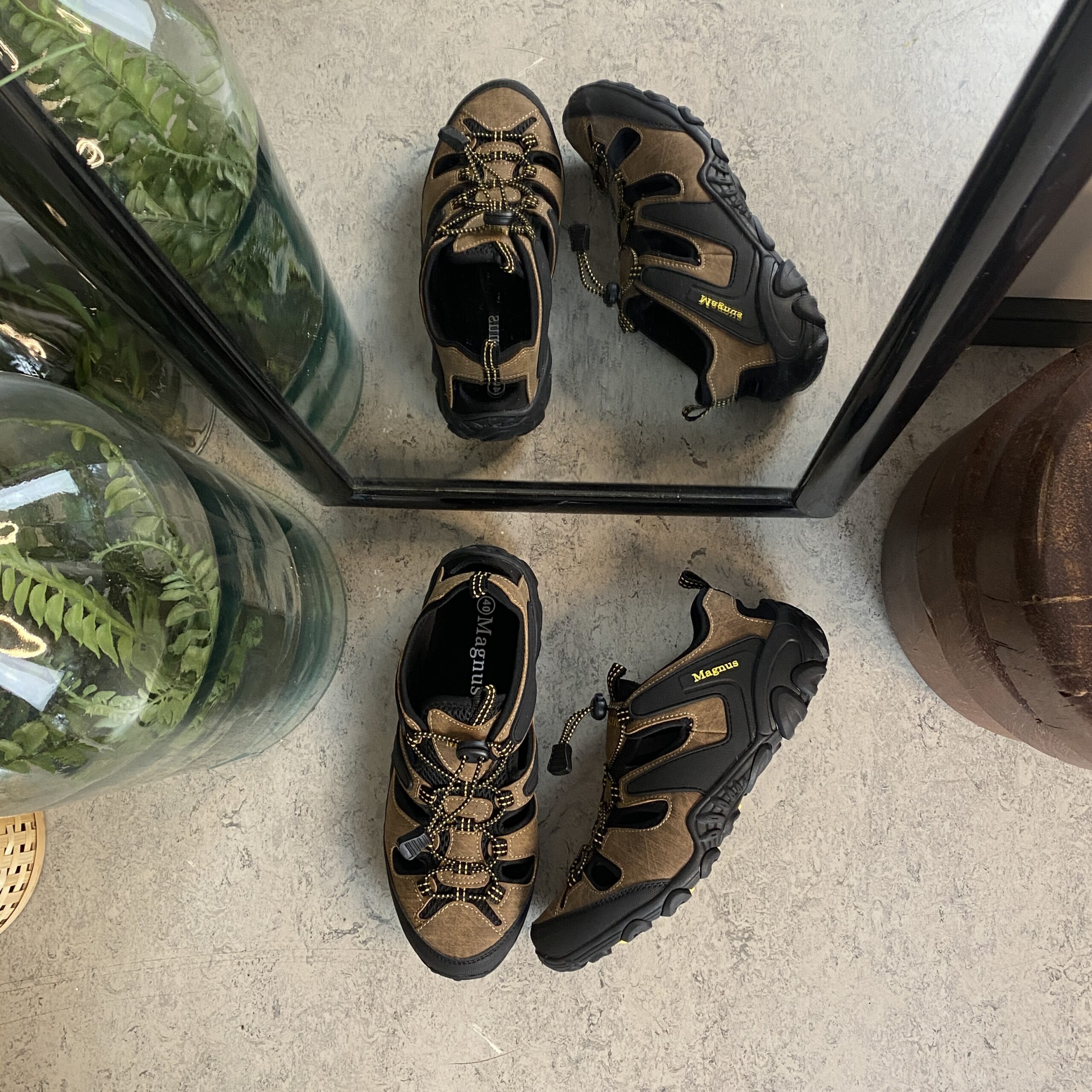 Gjør deg klar for eventyr med denne robuste og komfortable utendørssandalen fra Magnus – designet for menn som verdsetter funksjon og holdbarhet. Skoens solide konstruksjon kombinerer pustende mesh og slitesterkt syntetisk lær, noe som gjør den ideell for både fotturer, reiser og fritidsbruk.