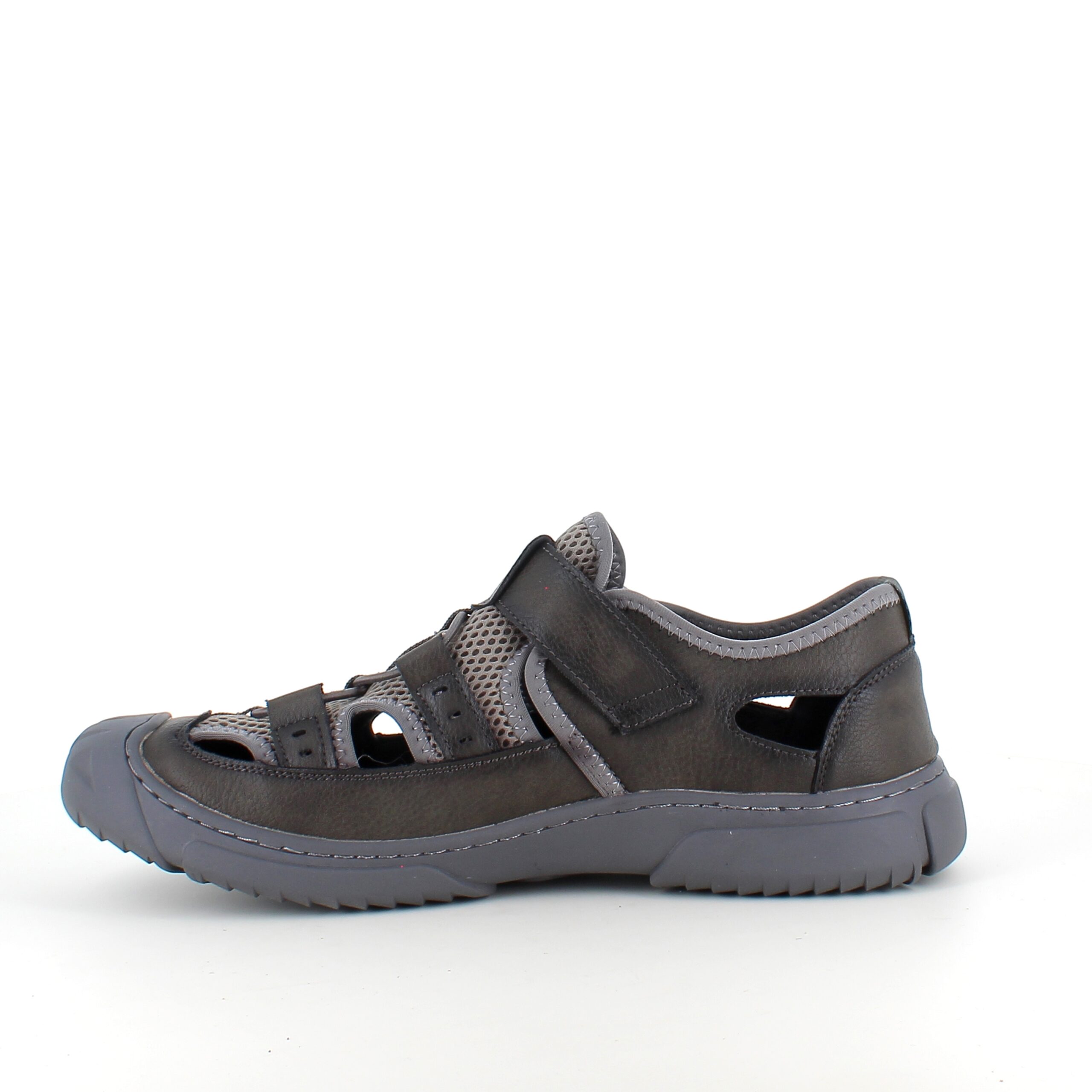 Denne funksjonelle og komfortable herresandalen fra Magnus er det ideelle valget for den aktive mannen som verdsetter holdbarhet og enkel betjening. Det lukkede designet med solide beskyttelsesdetaljer rundt tærne gir ekstra sikkerhet både ved hverdagsbruk og utendørsaktiviteter.
