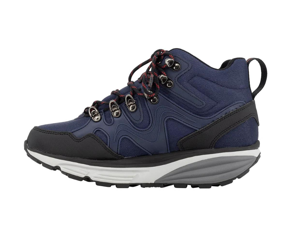 - Stilfull og funksjonell: MBT Navada kombinerer stil og funksjonalitet med sitt sporty design i en flott mørkeblå farge med røde detaljer. Den er utstyrt med snørebånd og en Tex-membran som gjør den vind- og vanntett, noe som gjør den ideell for utendørsaktiviteter under alle værforhold.