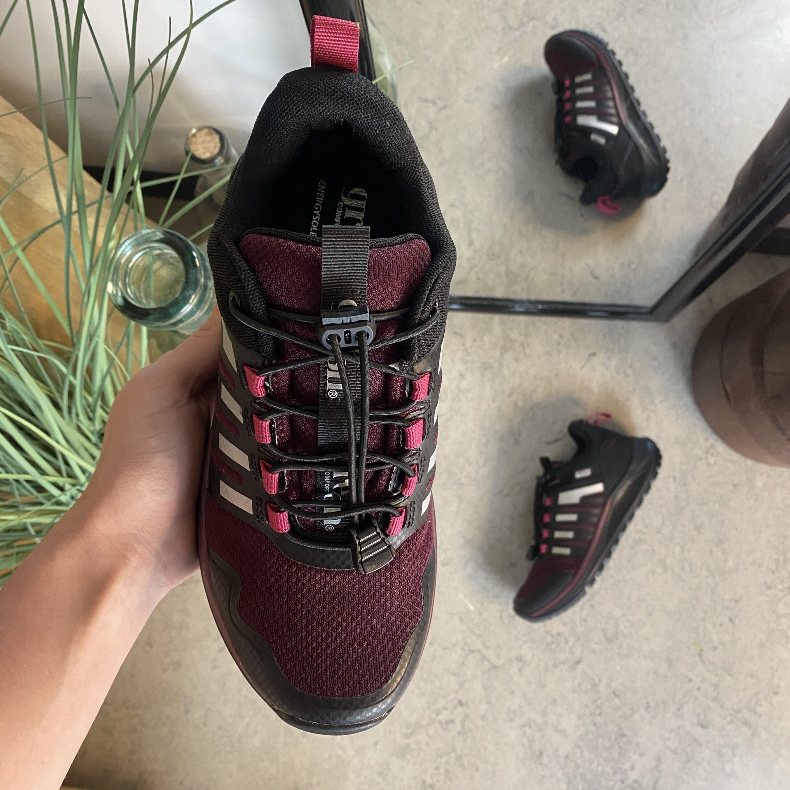 Skoen har elastisk snøring og en klemmlås som enkelt kan justeres.