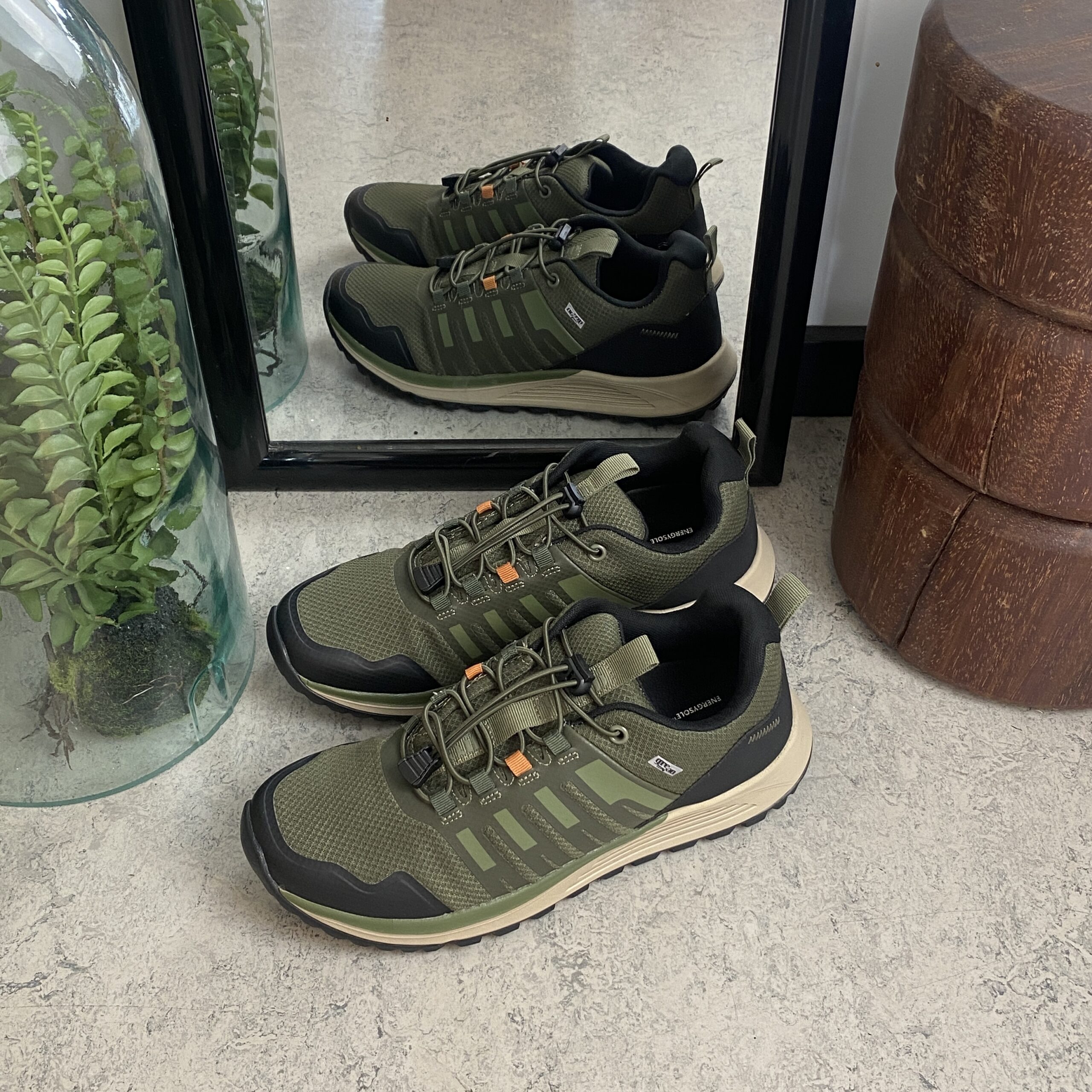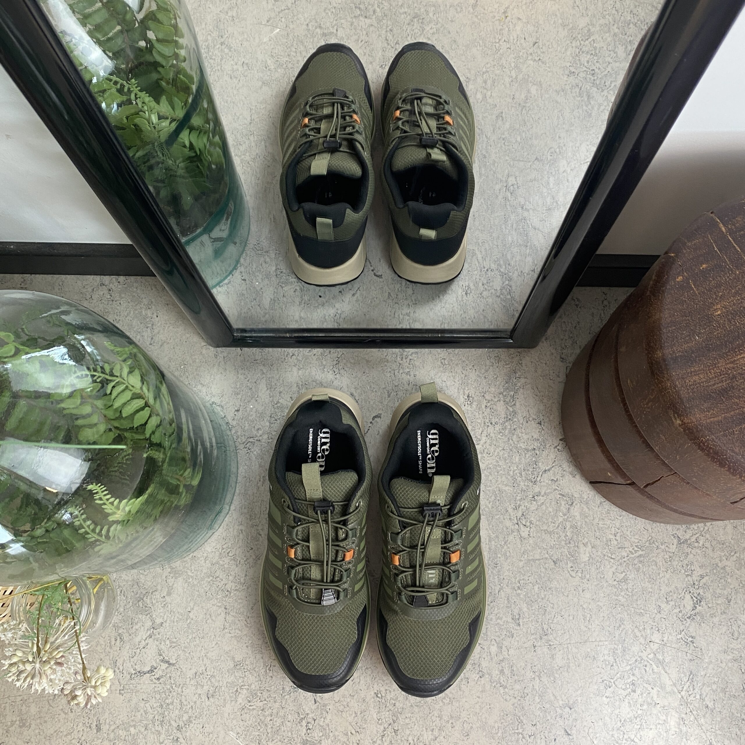 På utsiden har skoen en GreenTex-membran, som gjør skoen vanntett og pustende. Vær oppmerksom på at GreenTex-membranen beskytter effektivt mot vann og gir pusteevne, men skoene er ikke helt vanntette som gummistøvler.