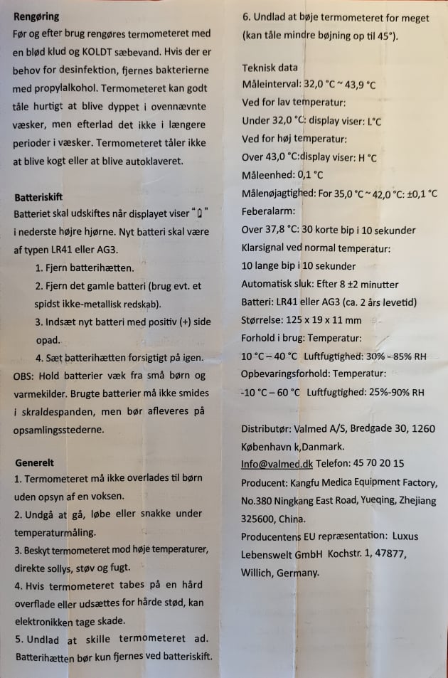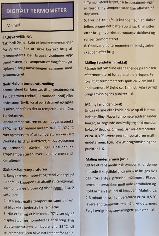 Takk for at du har valgt et kvalitetstermometer fra ValMed. For å sikre korrekt bruk av termometeret, bør denne bruksanvisningen leses nøye før temperaturmåling utføres. Oppbevar alltid bruksanvisningen sammen med termometeret.